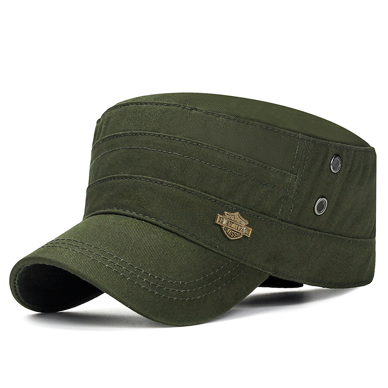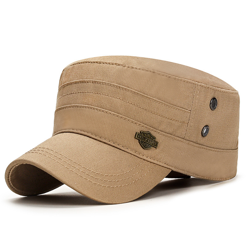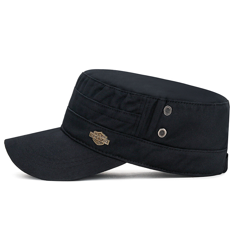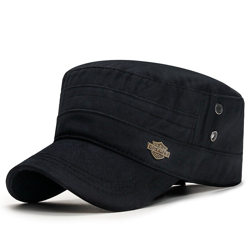 男士平顶帽春秋四季新款棉质铁标户外休闲遮阳鸭舌帽跨境外贸帽子