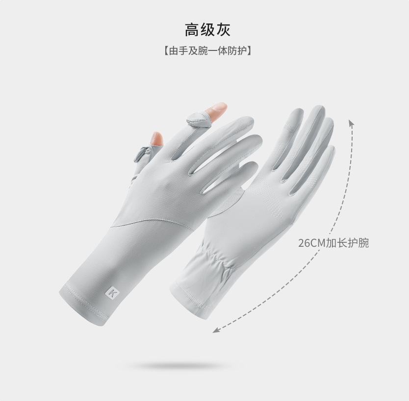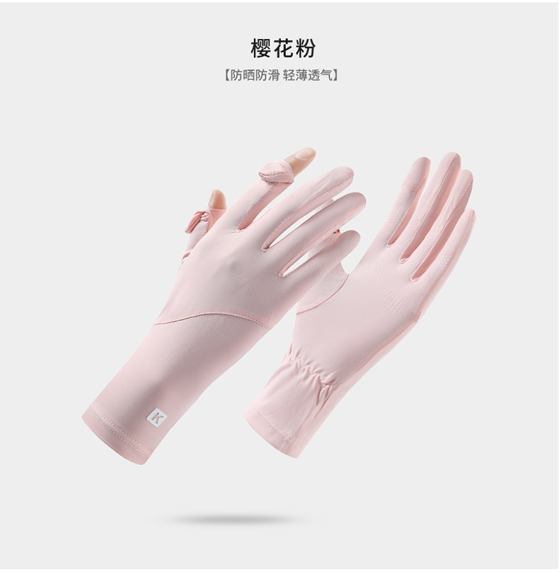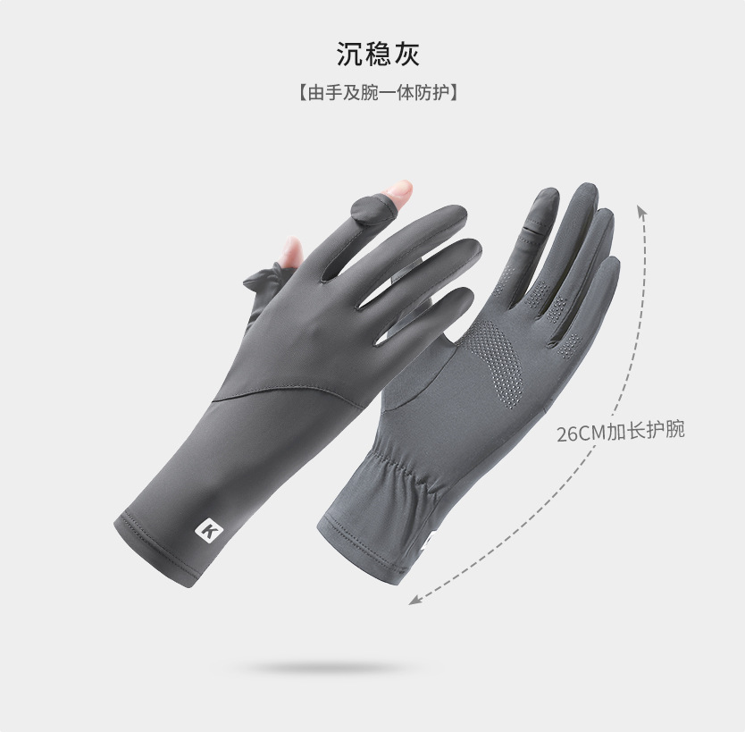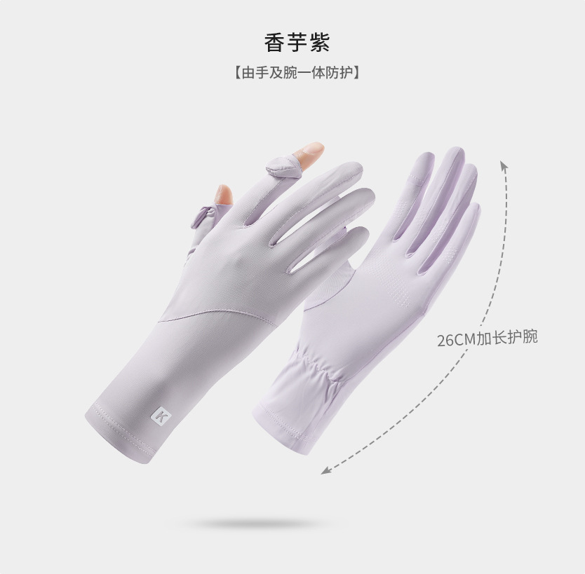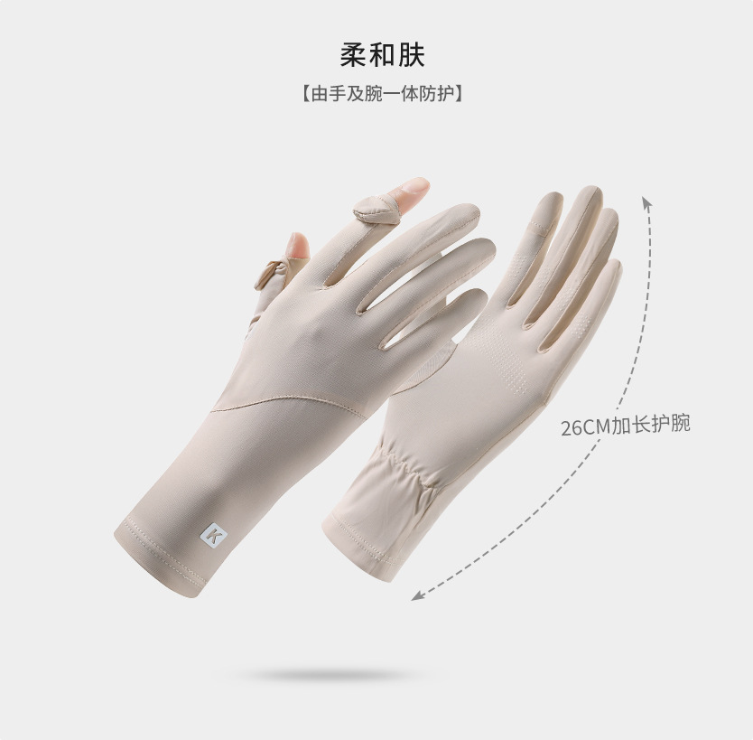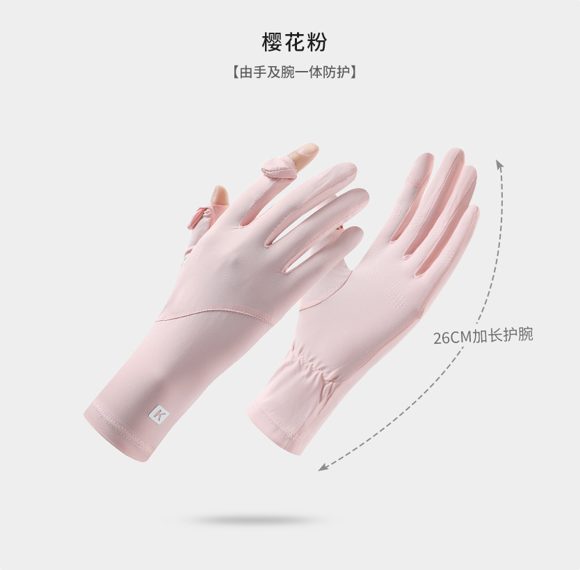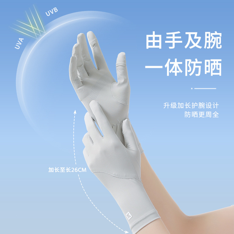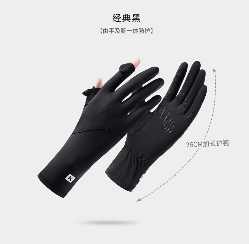 防晒手套女K标夏季防滑防紫外线加长护腕触屏冰丝中长款骑行手套