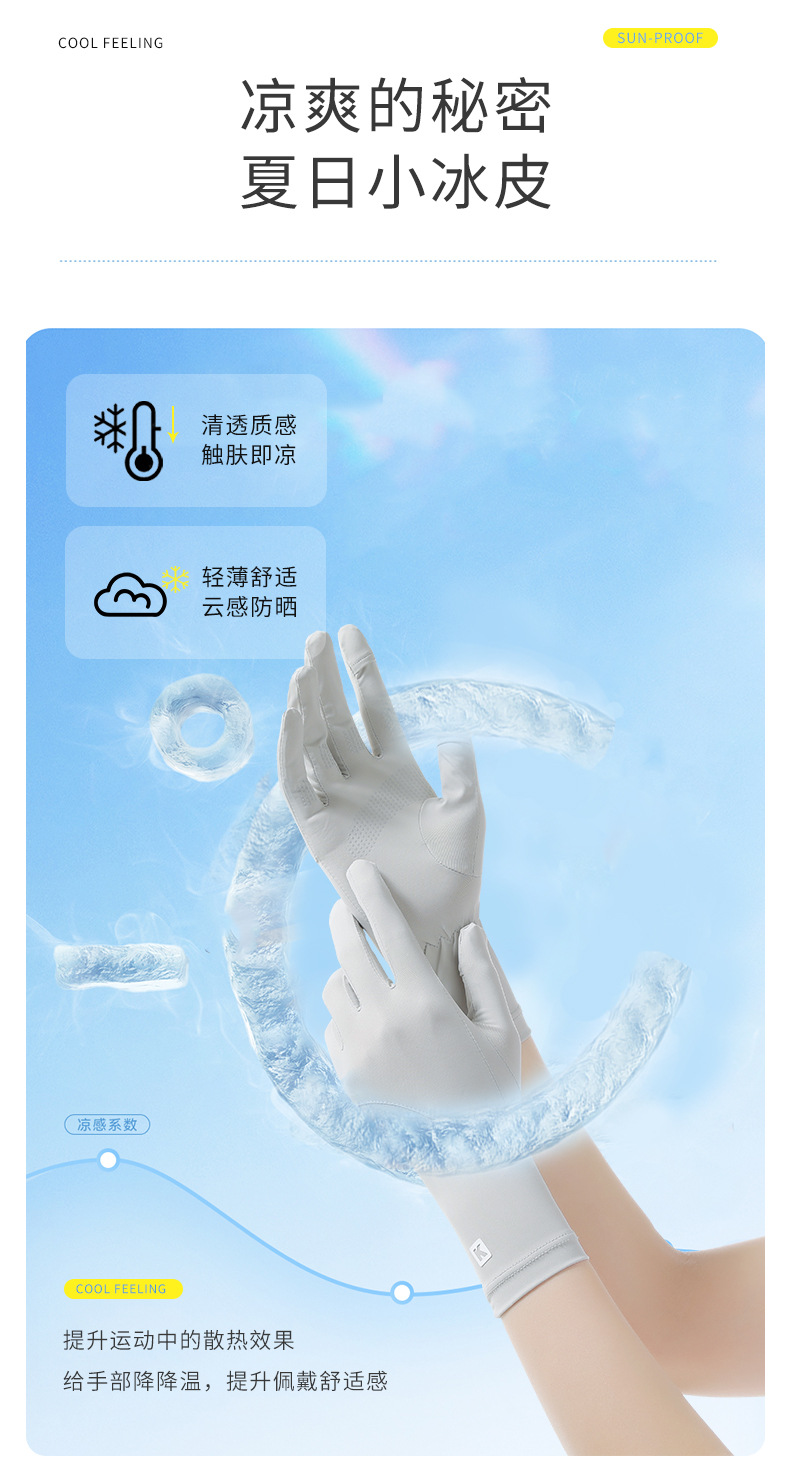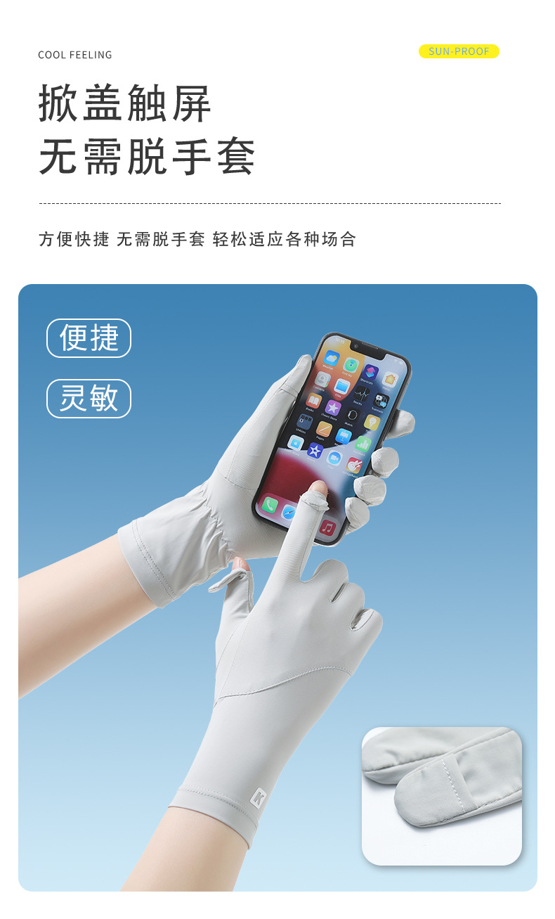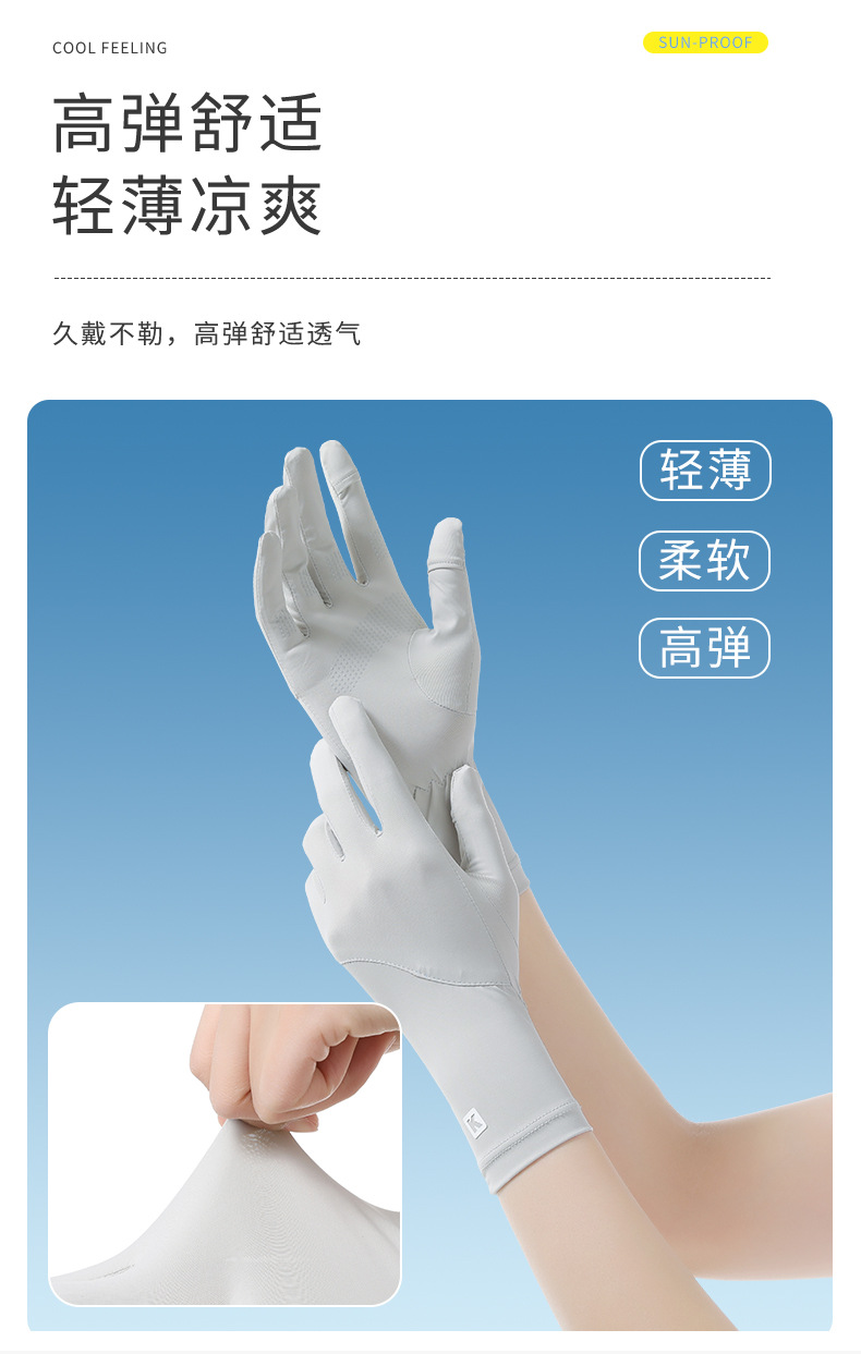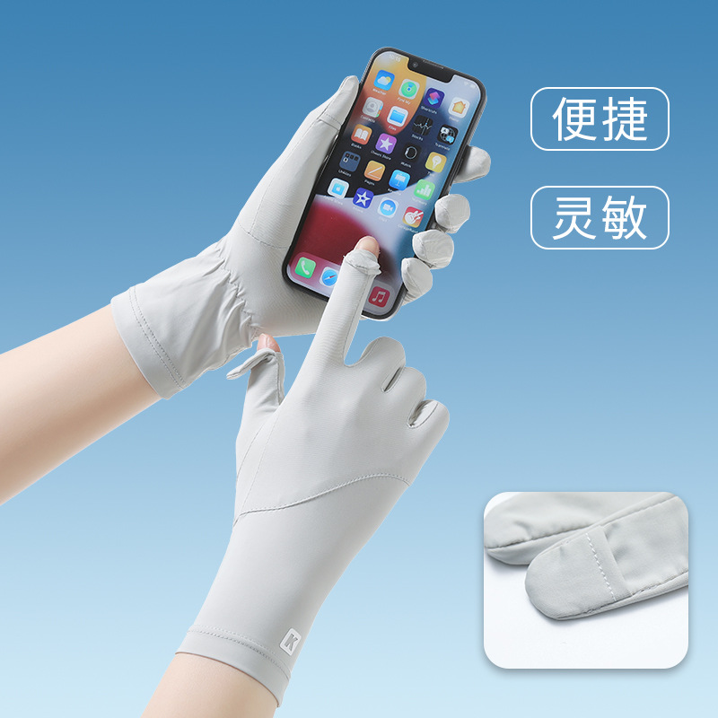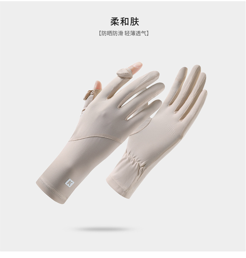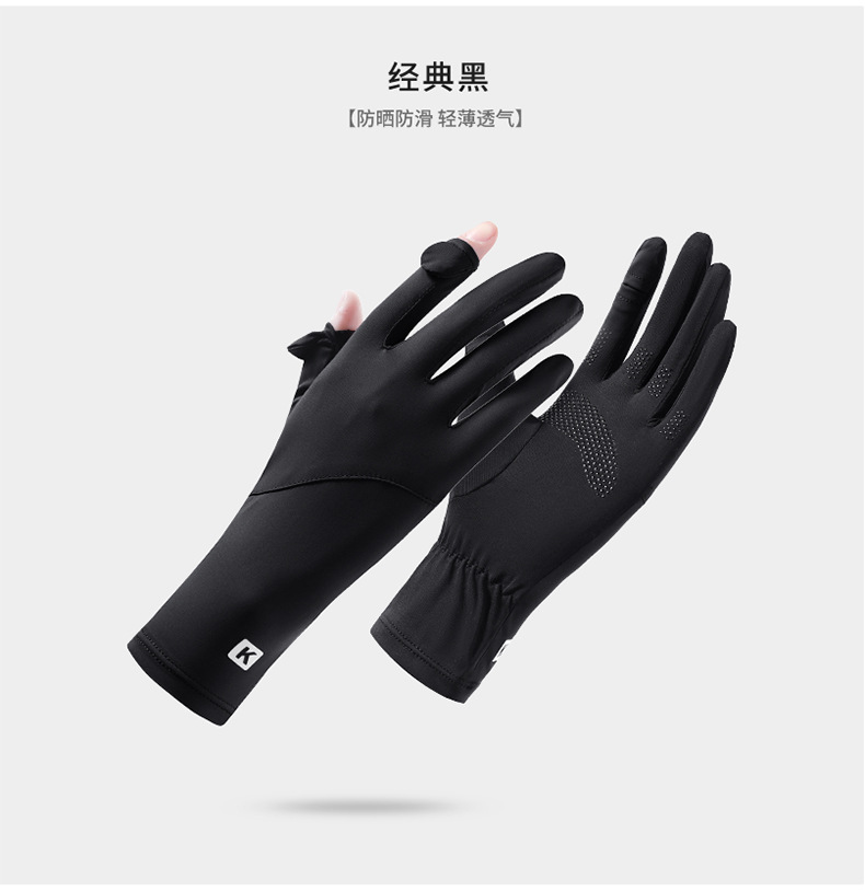 防晒手套女K标夏季防滑防紫外线加长护腕触屏冰丝中长款骑行手套