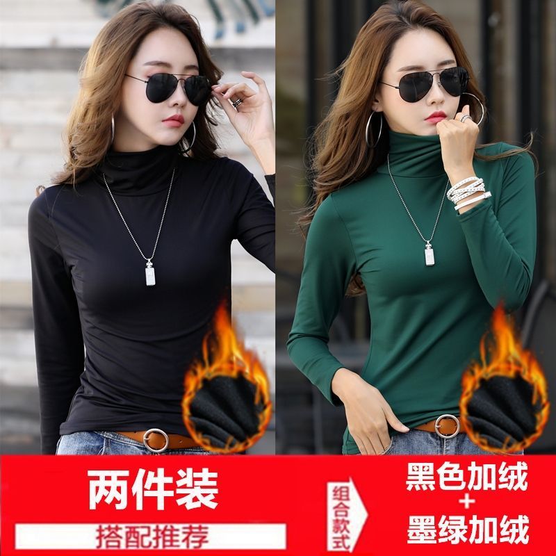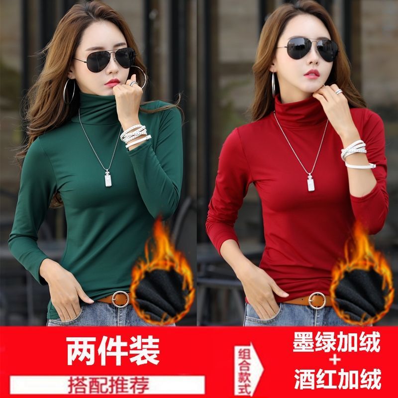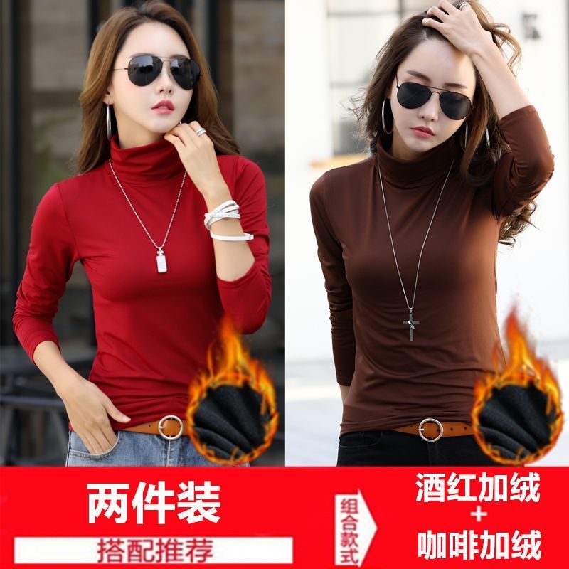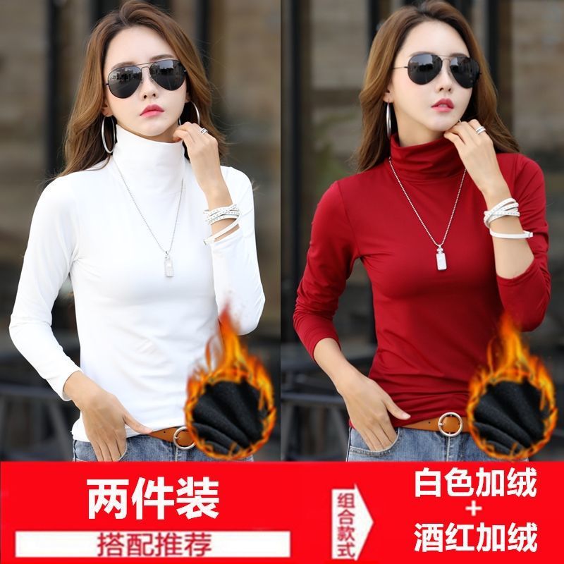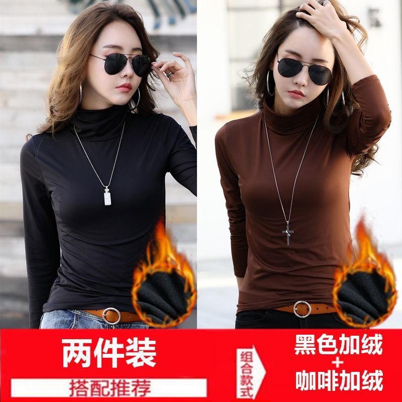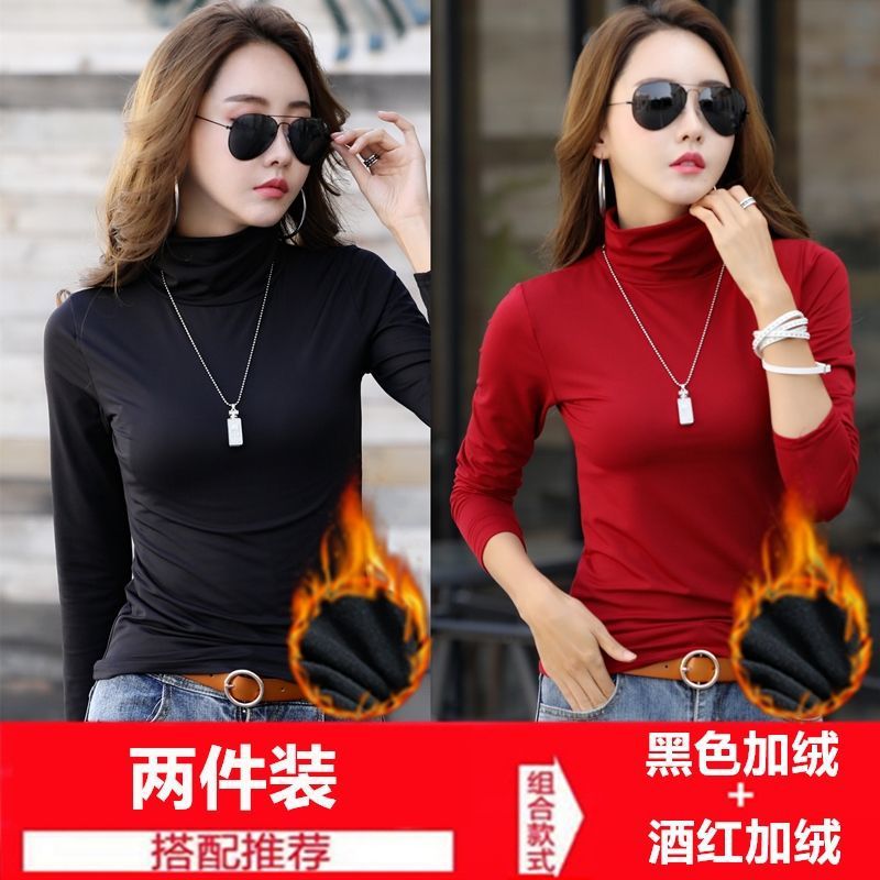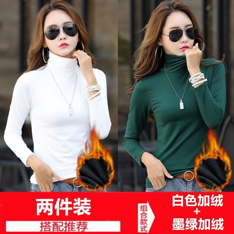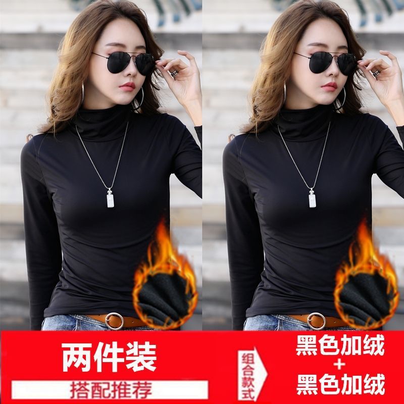 冬季纯色高领长袖t恤女内搭加绒打底衫跨境女装衣服上衣批发秋季