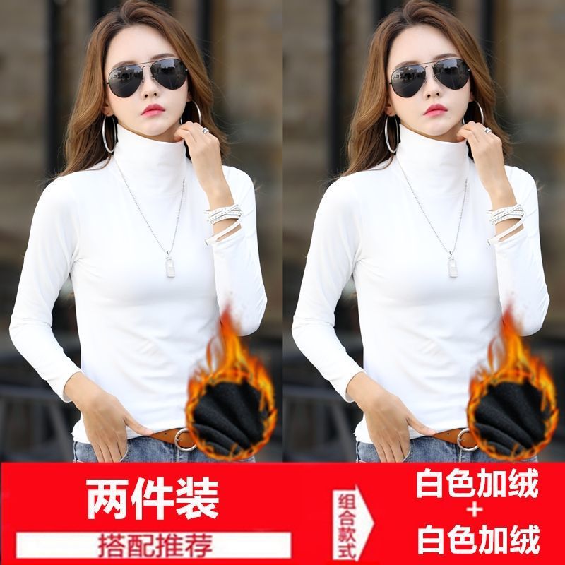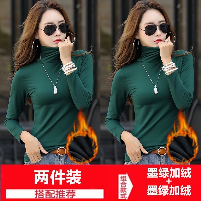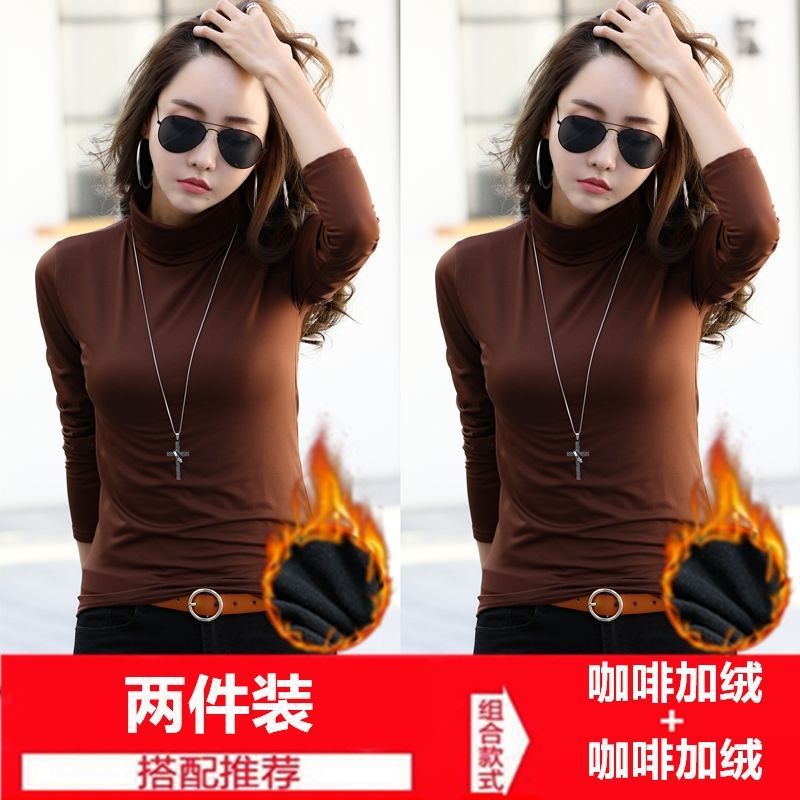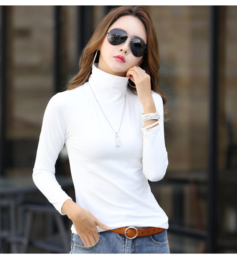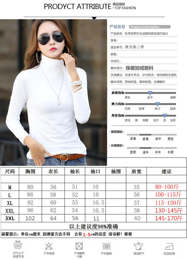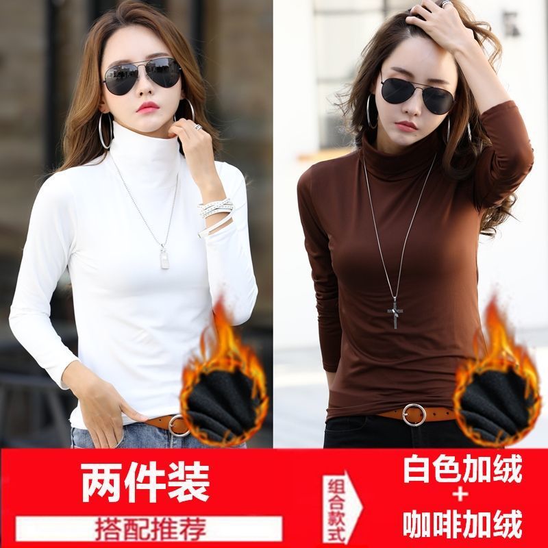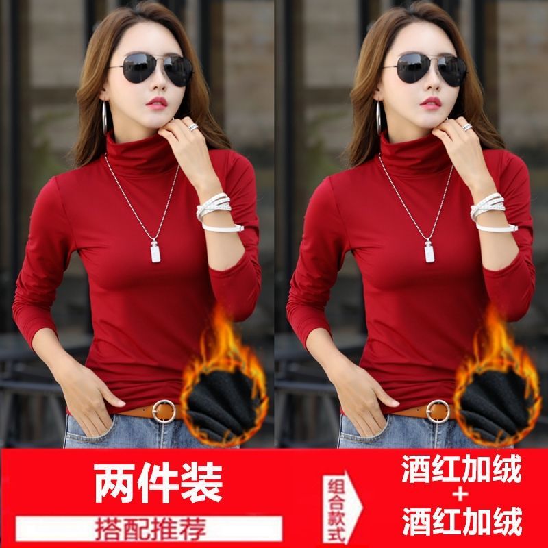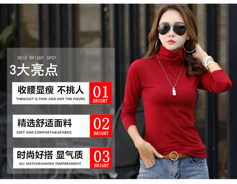 冬季纯色高领长袖t恤女内搭加绒打底衫跨境女装衣服上衣批发秋季