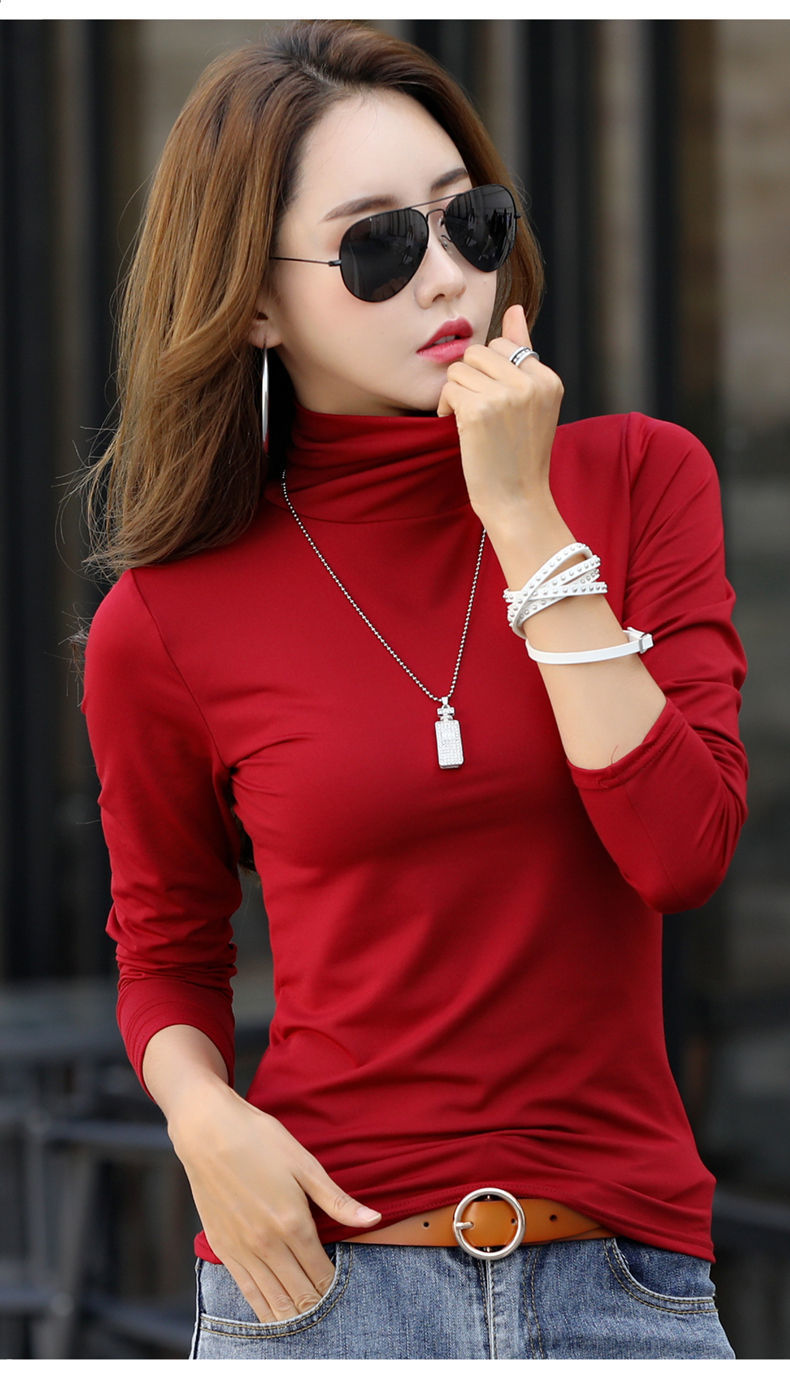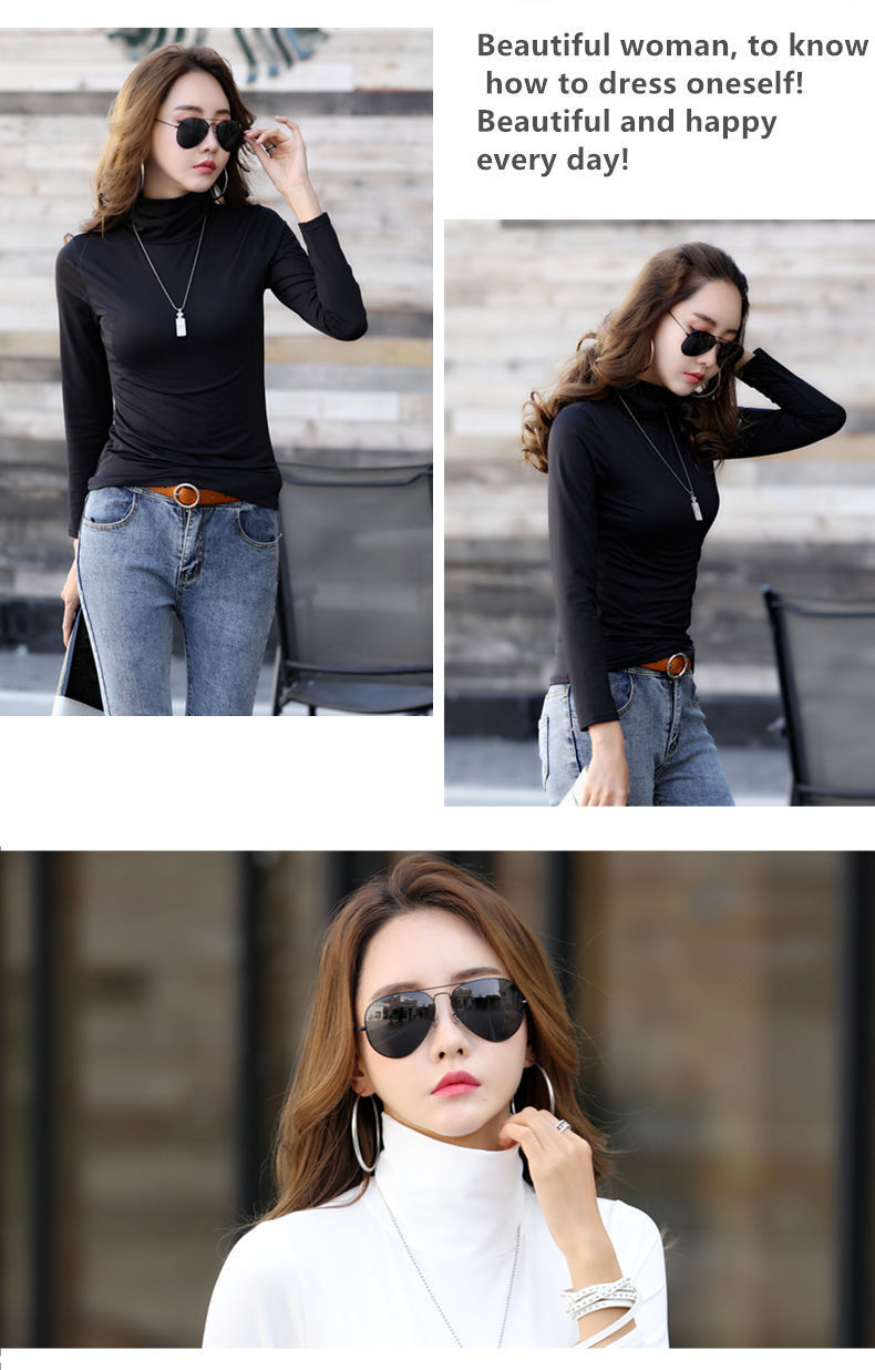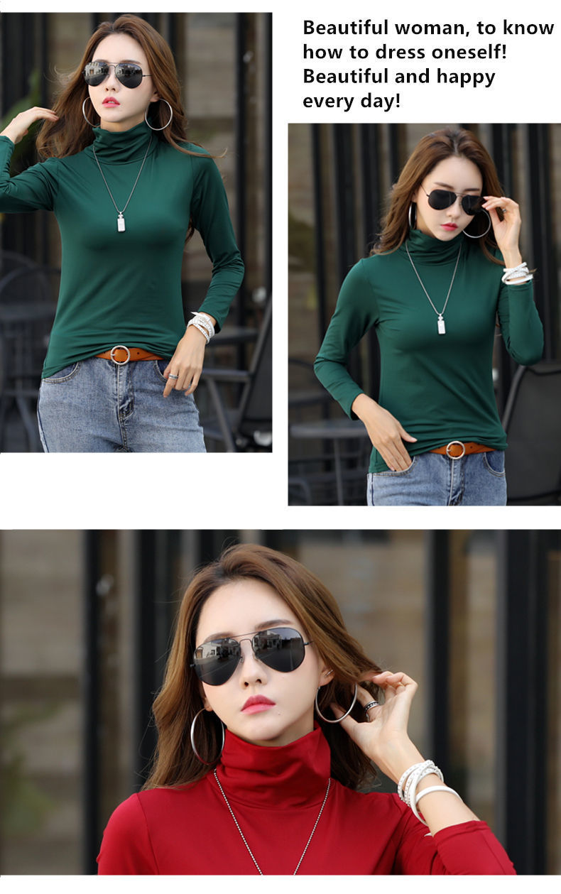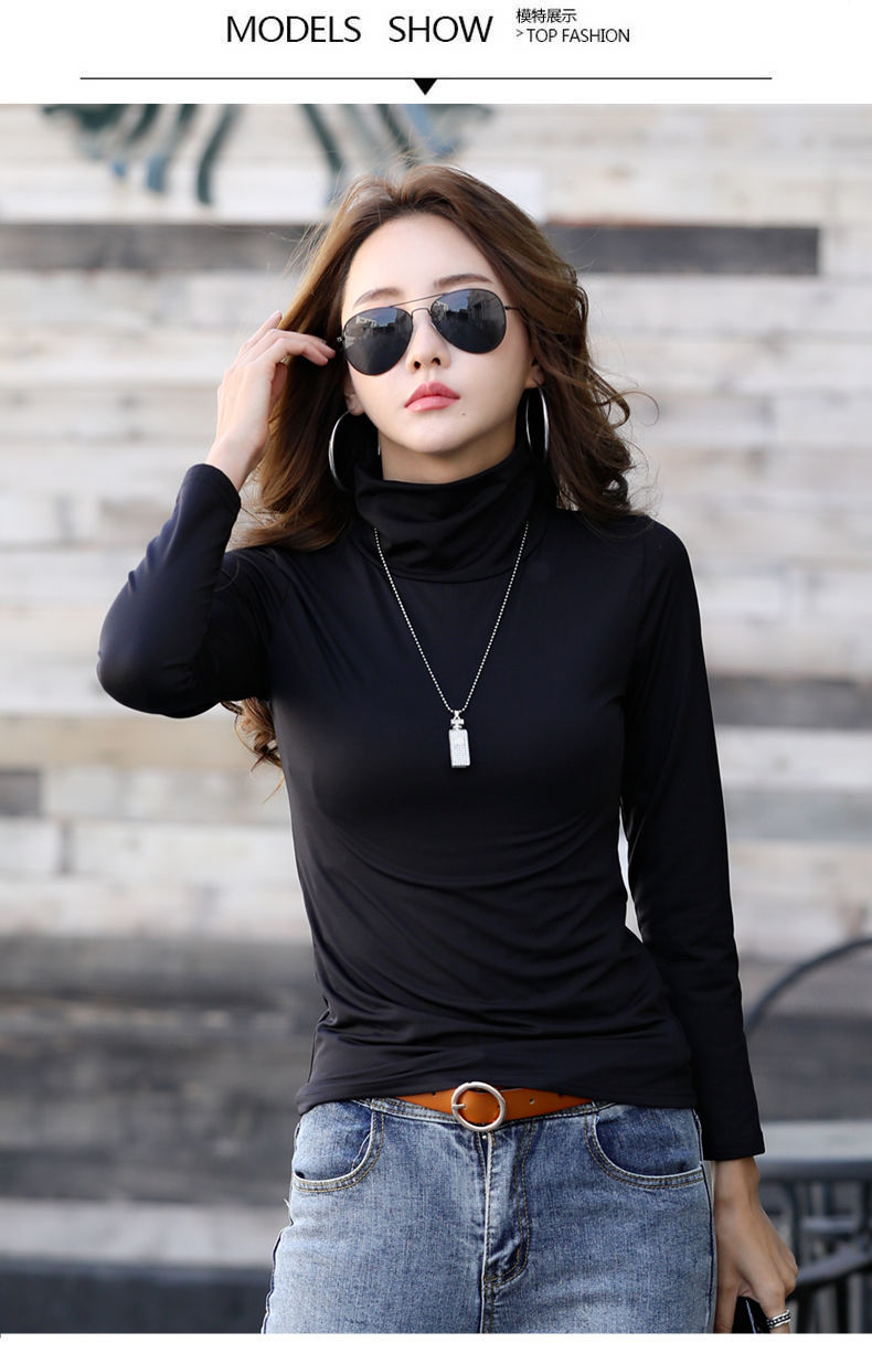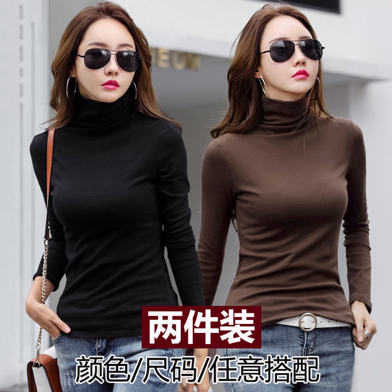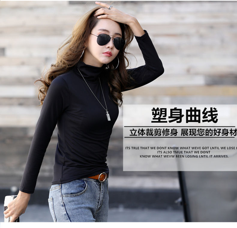 冬季纯色高领长袖t恤女内搭加绒打底衫跨境女装衣服上衣批发秋季