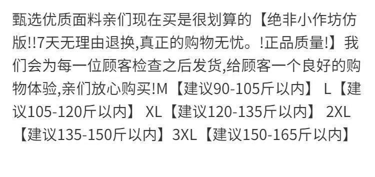 | 3XL 建议150-165斤 | USD $0.0 | 1079 piece available |