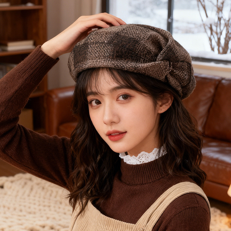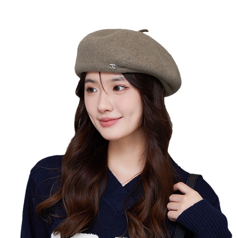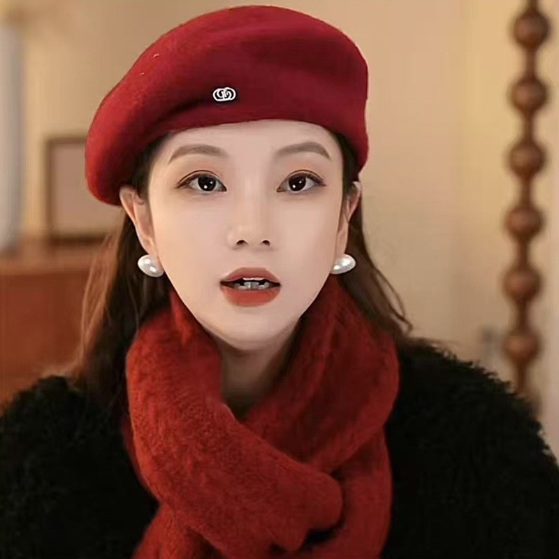羊毛呢贝雷帽女秋冬季日系气质百搭大头围显脸小保暖画家报童帽