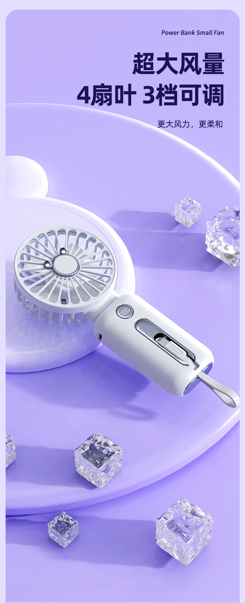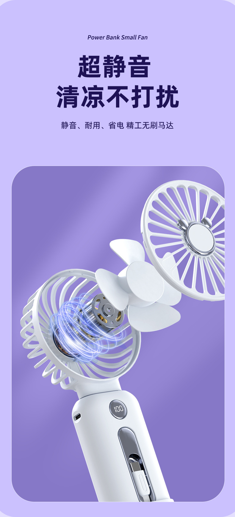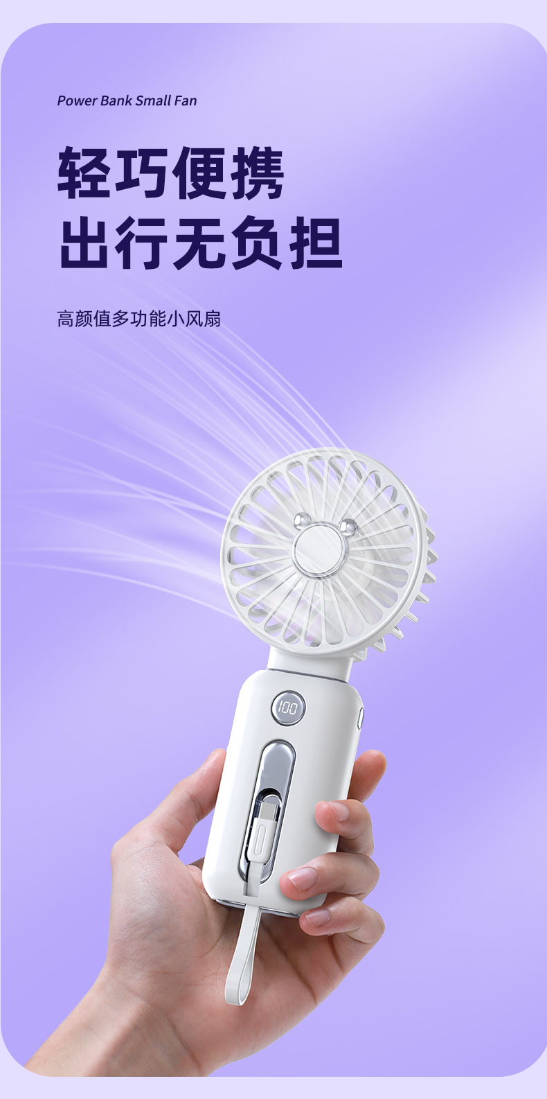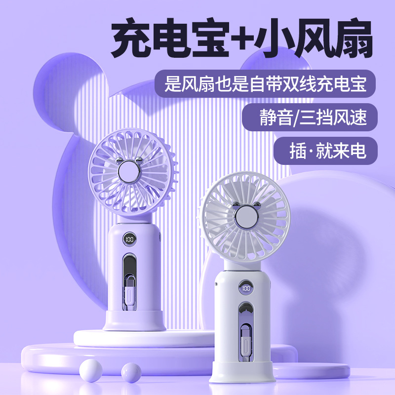 充电宝手持小风扇三合一桌面型超长续航便携kc认证pse礼品