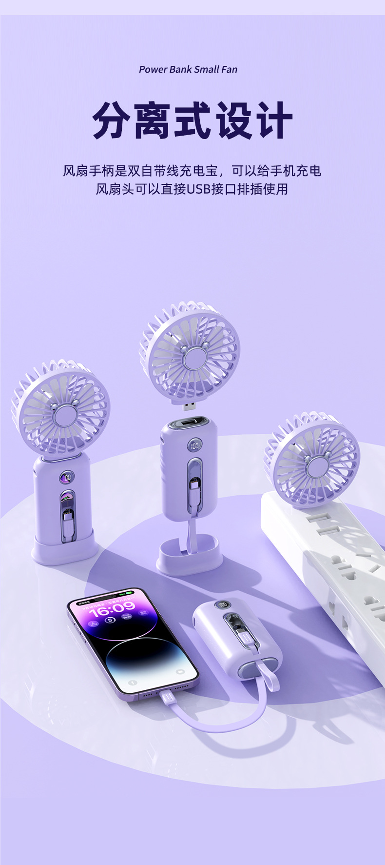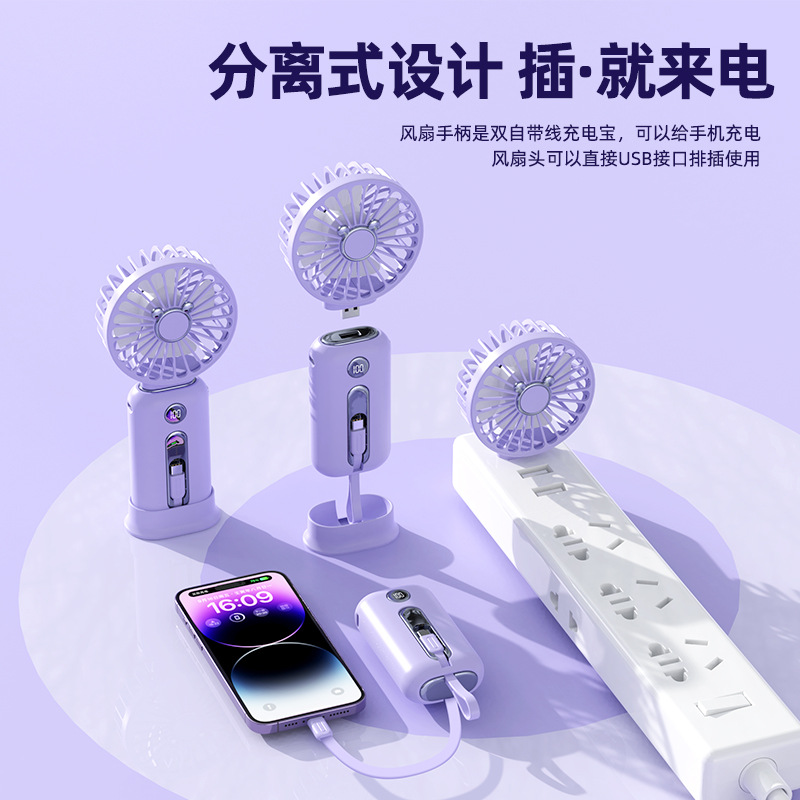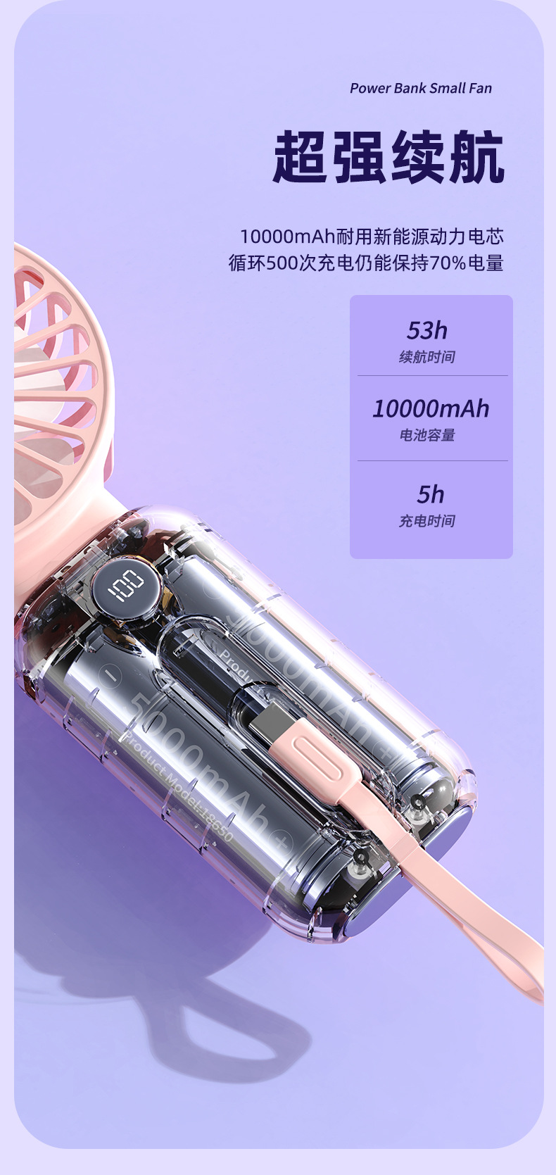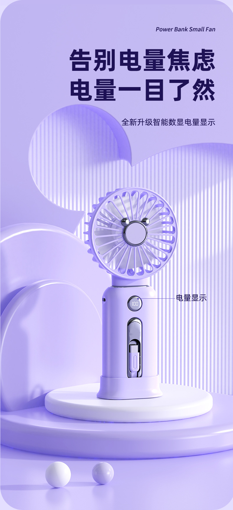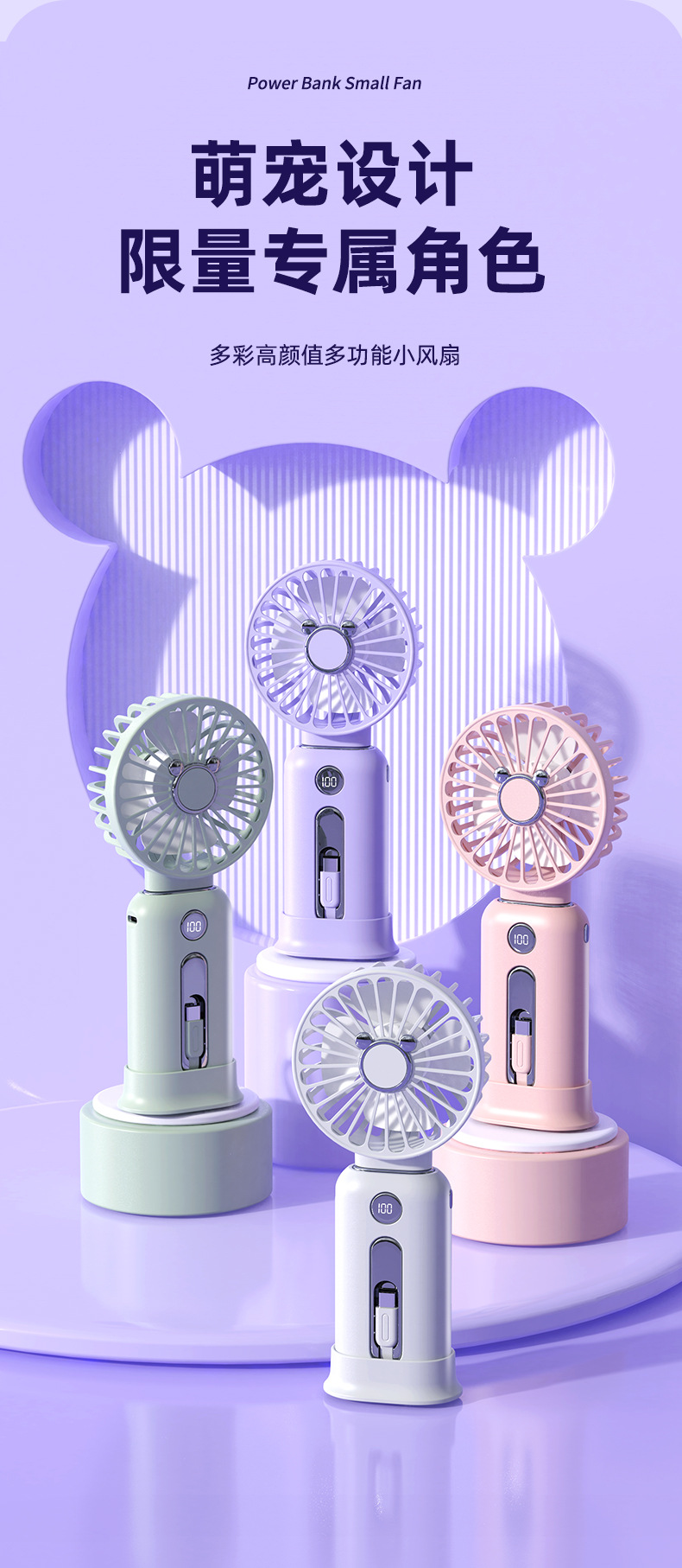 充电宝手持小风扇三合一桌面型超长续航便携kc认证pse礼品