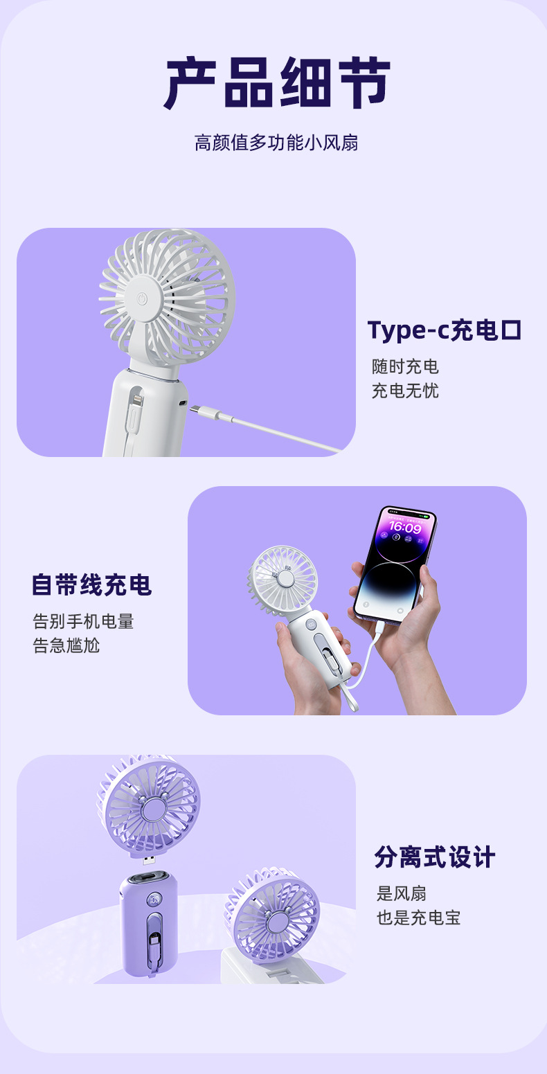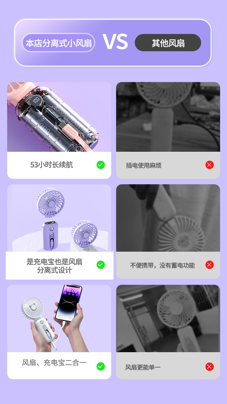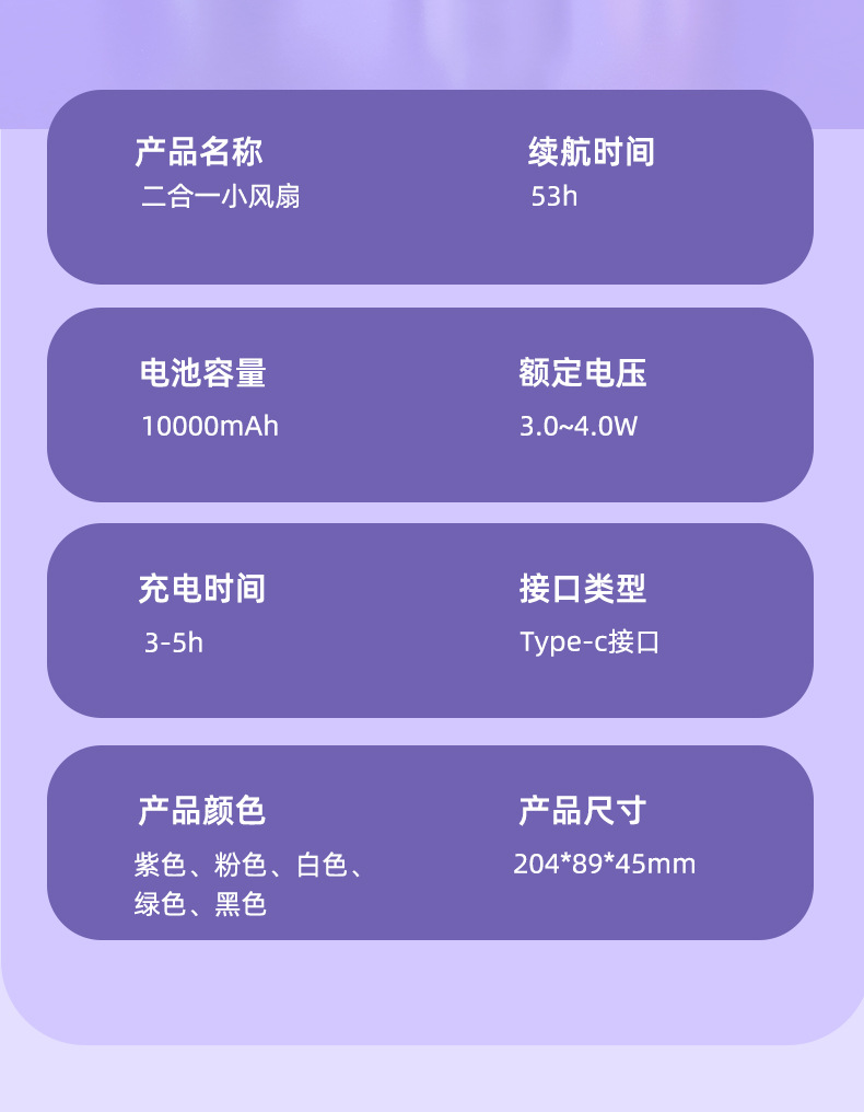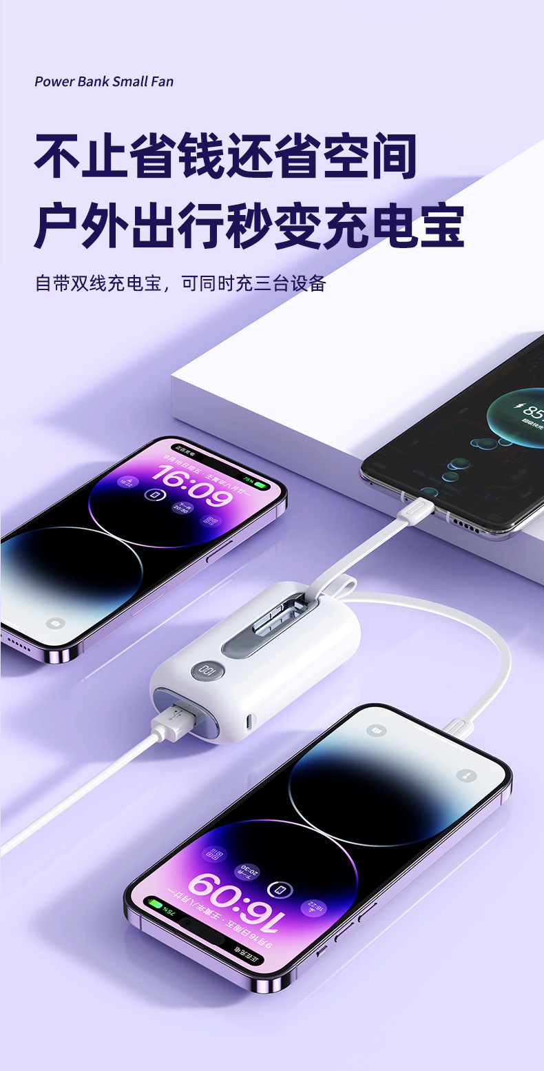 充电宝手持小风扇三合一桌面型超长续航便携kc认证pse礼品
