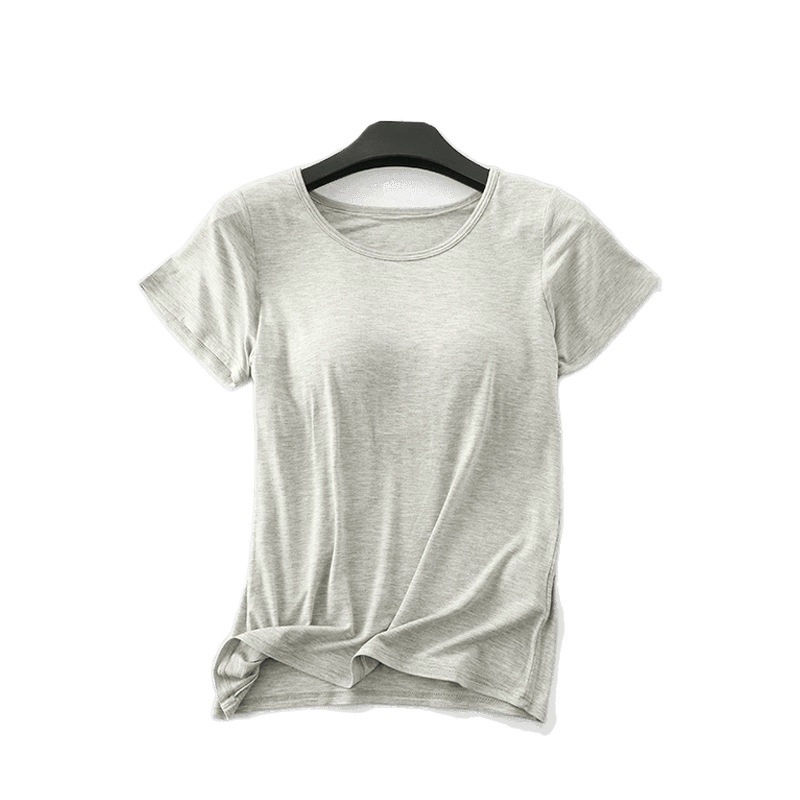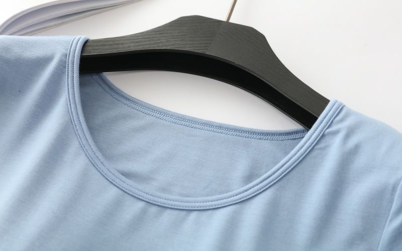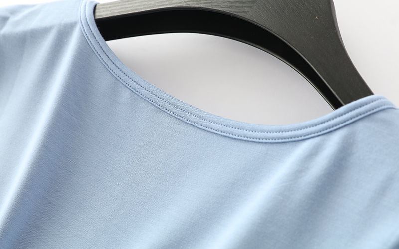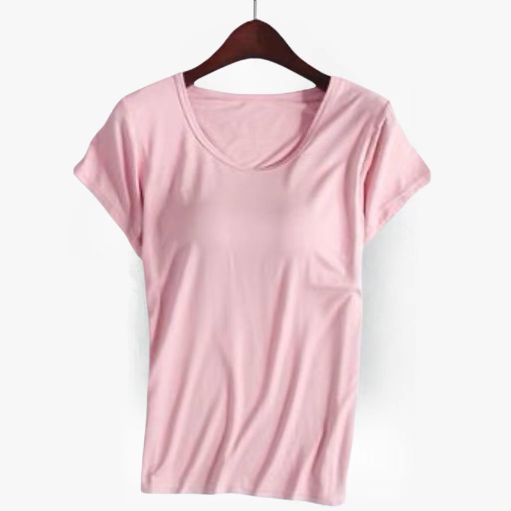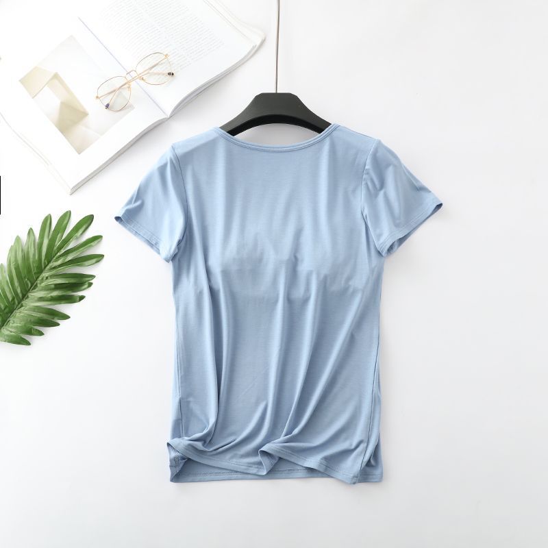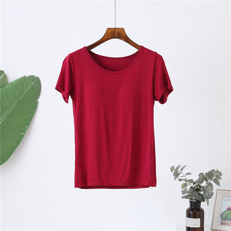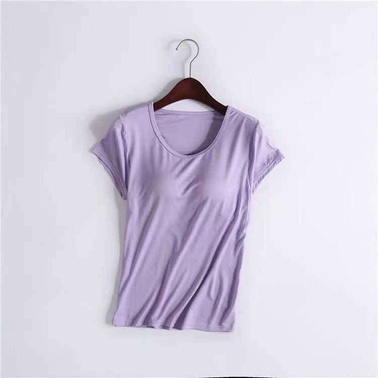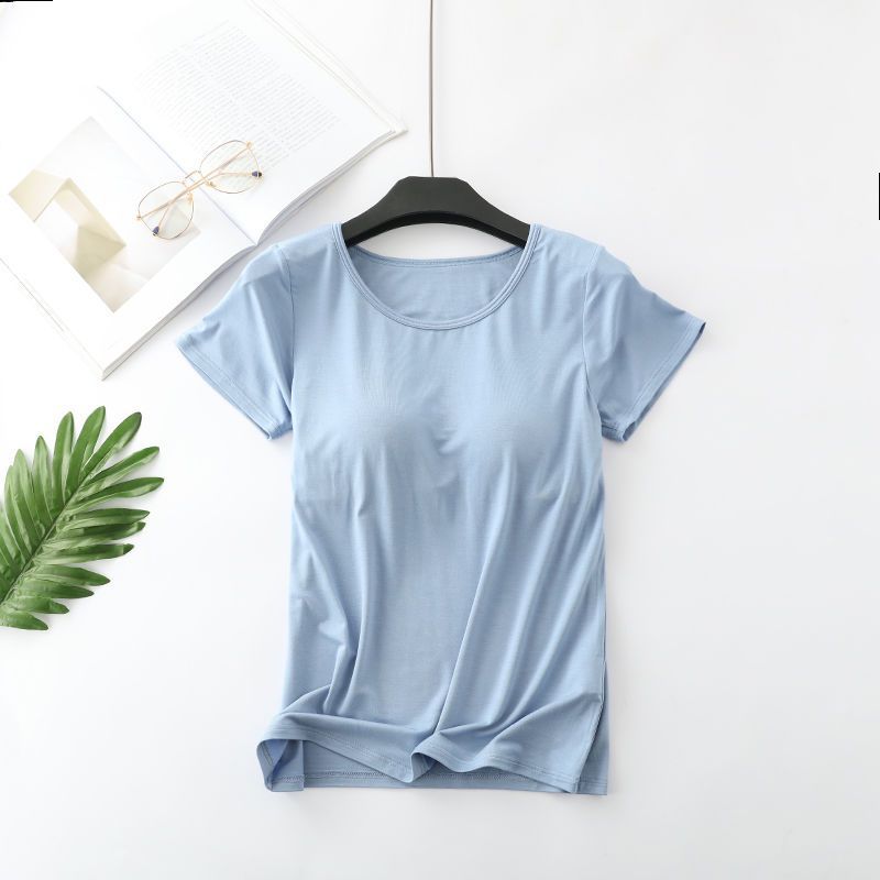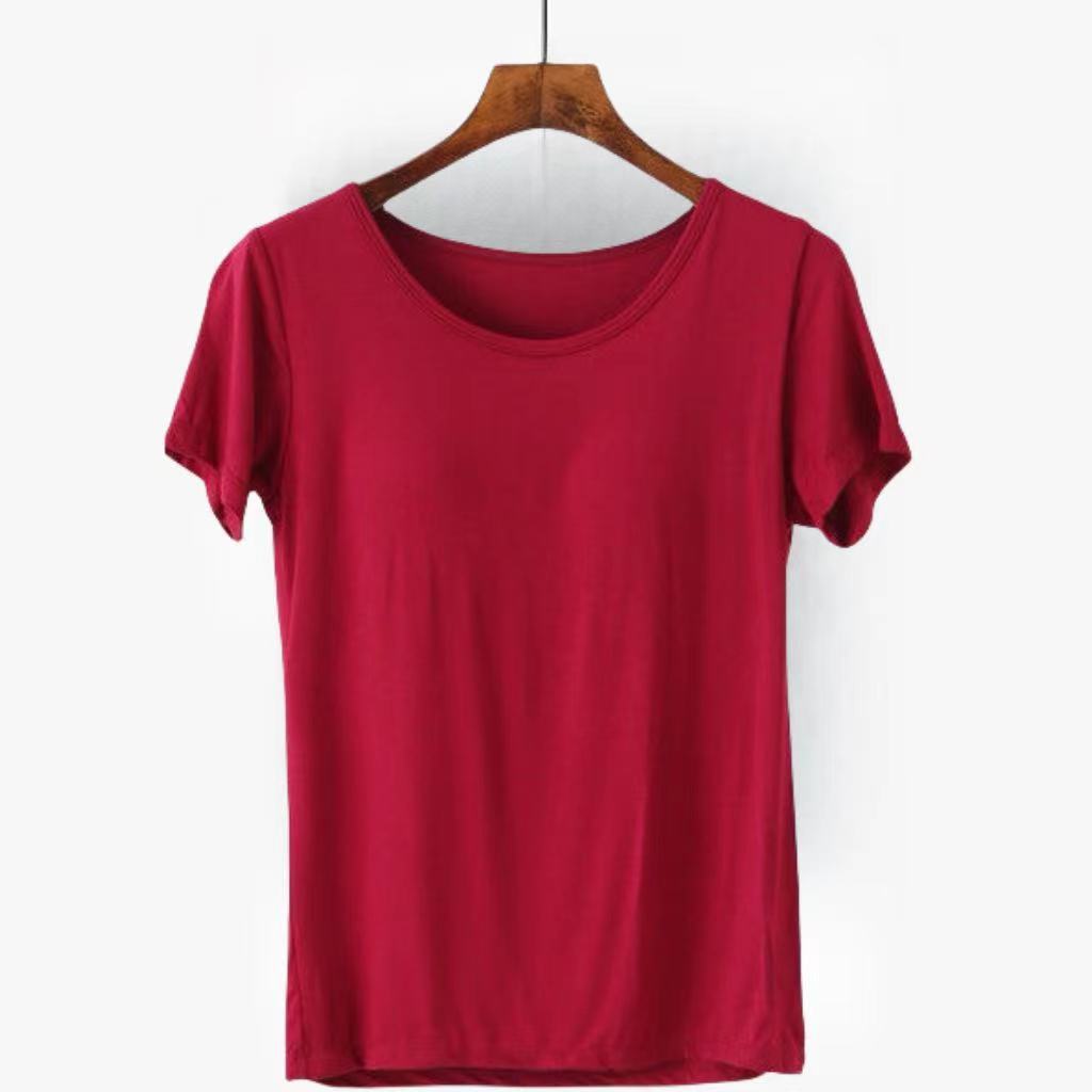 带胸垫莫代尔短袖t恤女夏外穿居家薄上衣大码宽松百搭圆领打底衫