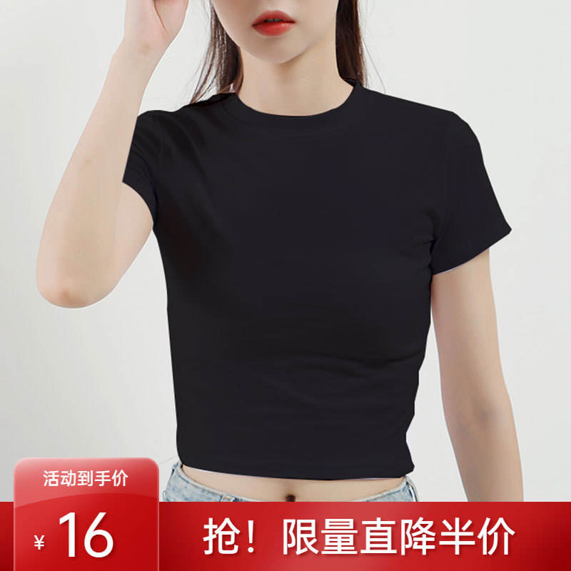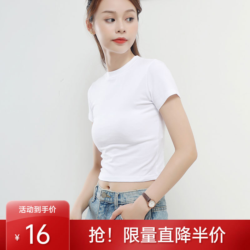 夏装短款纯白色t恤女短袖修身半袖2025年新款露脐上衣t桖打底衫潮