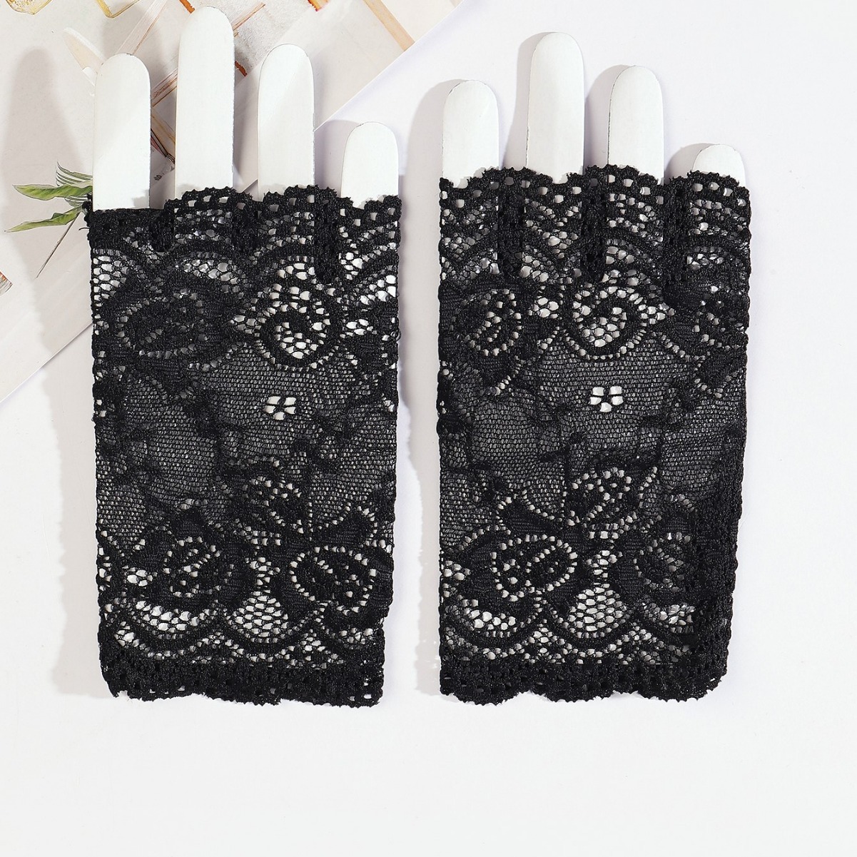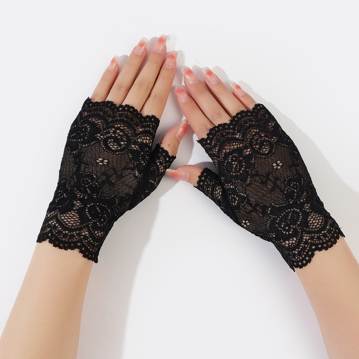 夏季新款女士黑色开车骑行骑车短款透气性感蕾丝防晒手套厂家批发