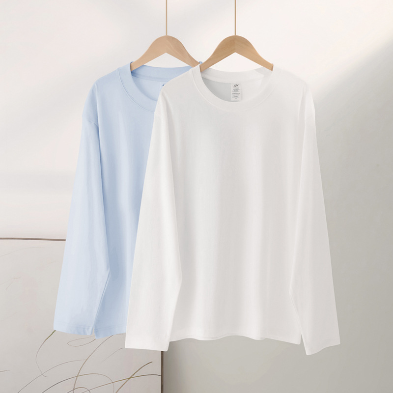 2024新款秋冬女装纯棉230g长袖t恤纯色显瘦内搭宽松上衣打底衫女