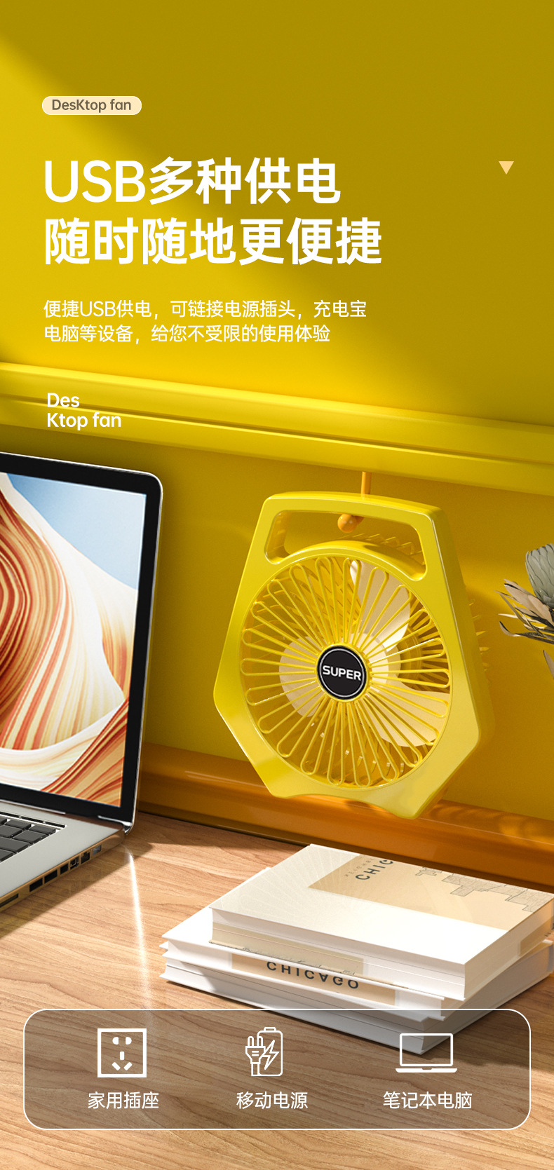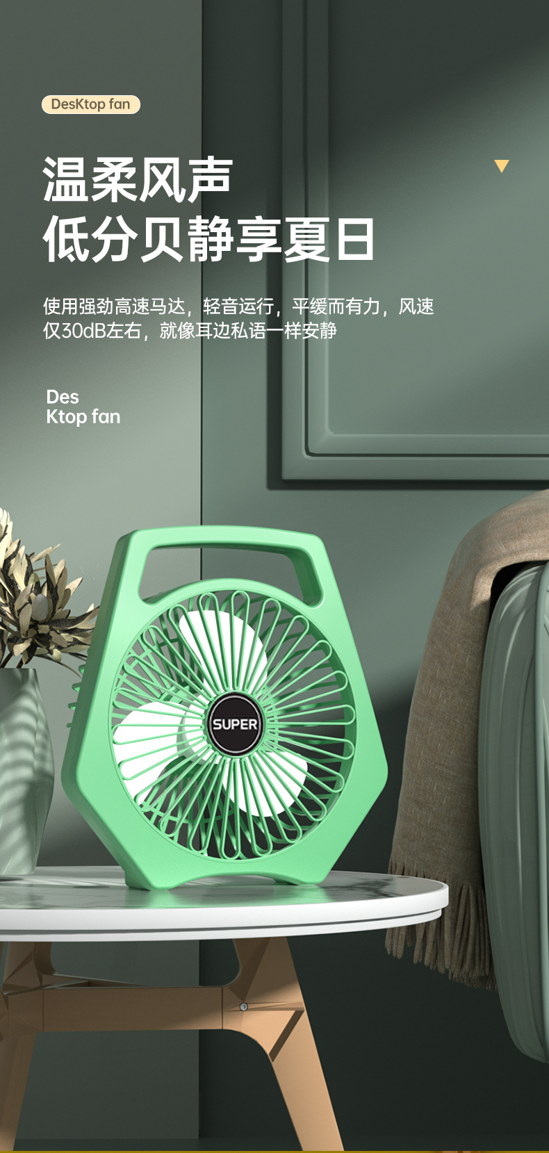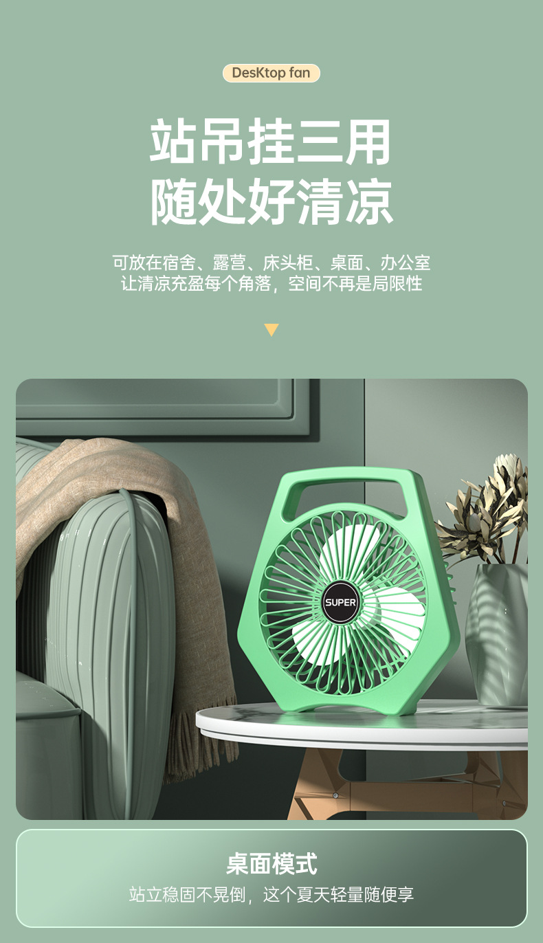 办公室桌面小风扇低噪音续航台式小型学生宿舍床上大风量插电风扇