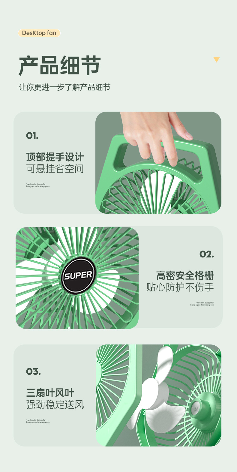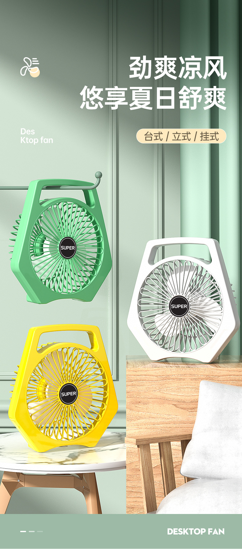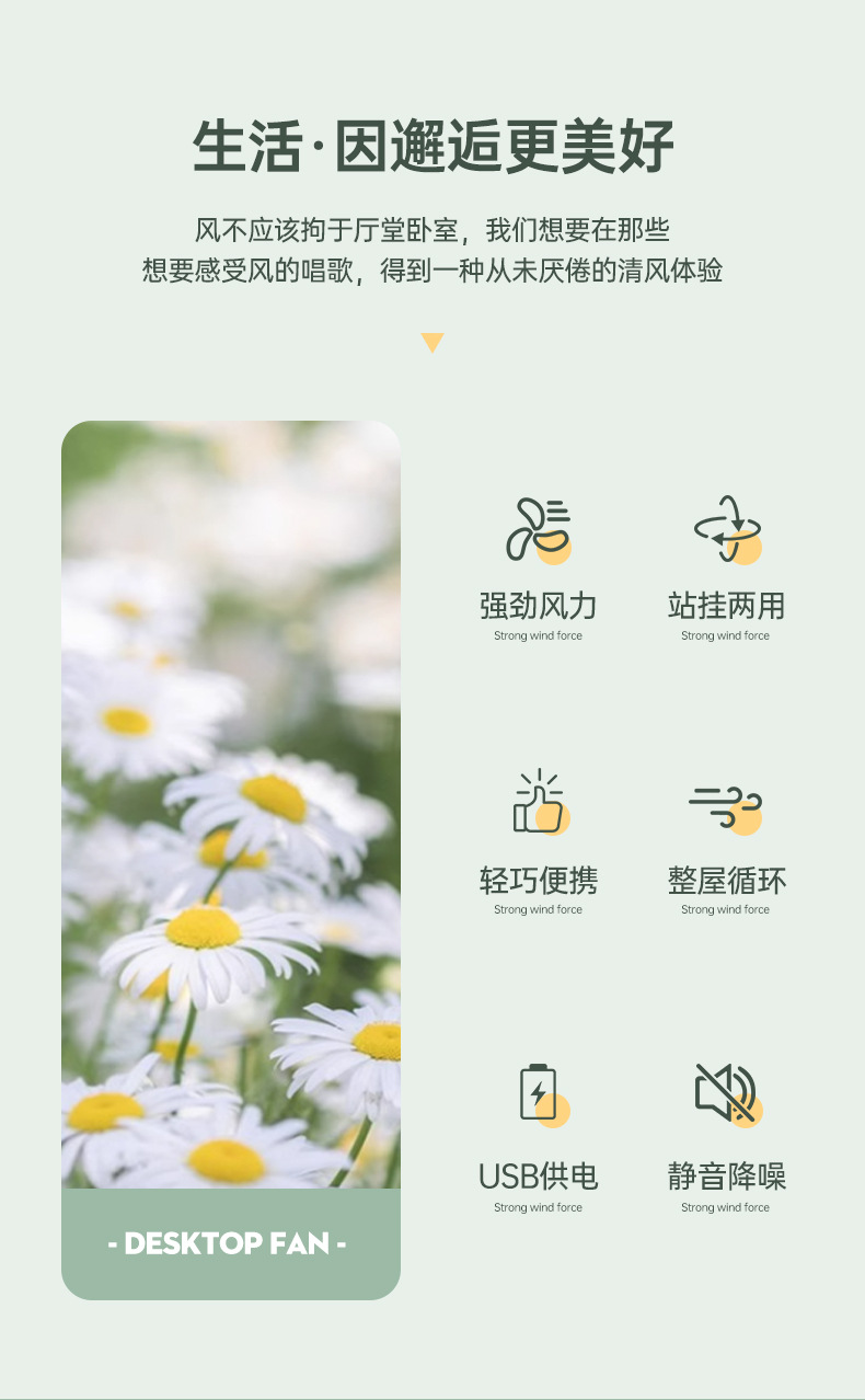 办公室桌面小风扇低噪音续航台式小型学生宿舍床上大风量插电风扇