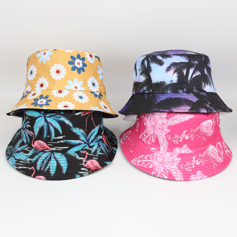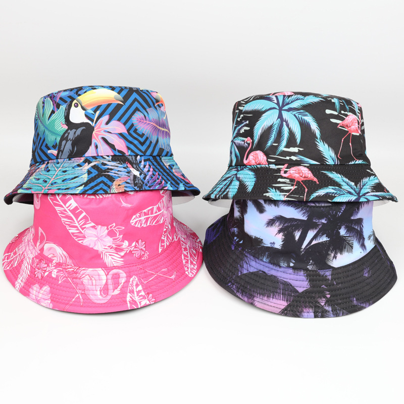 跨境款数码印花渔夫帽户外遮阳防晒盆帽韩版四季款太阳帽亚马逊帽