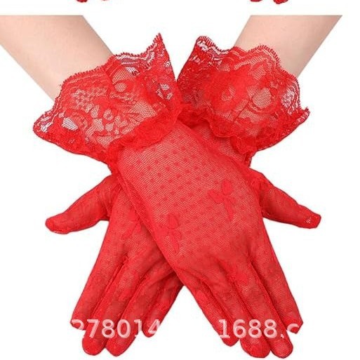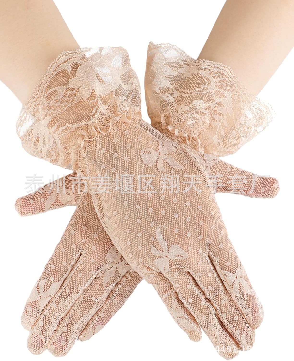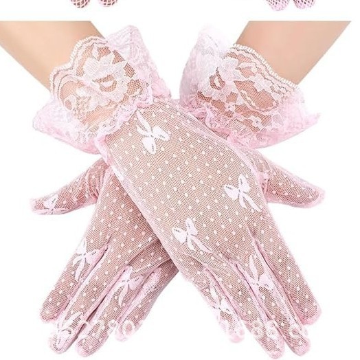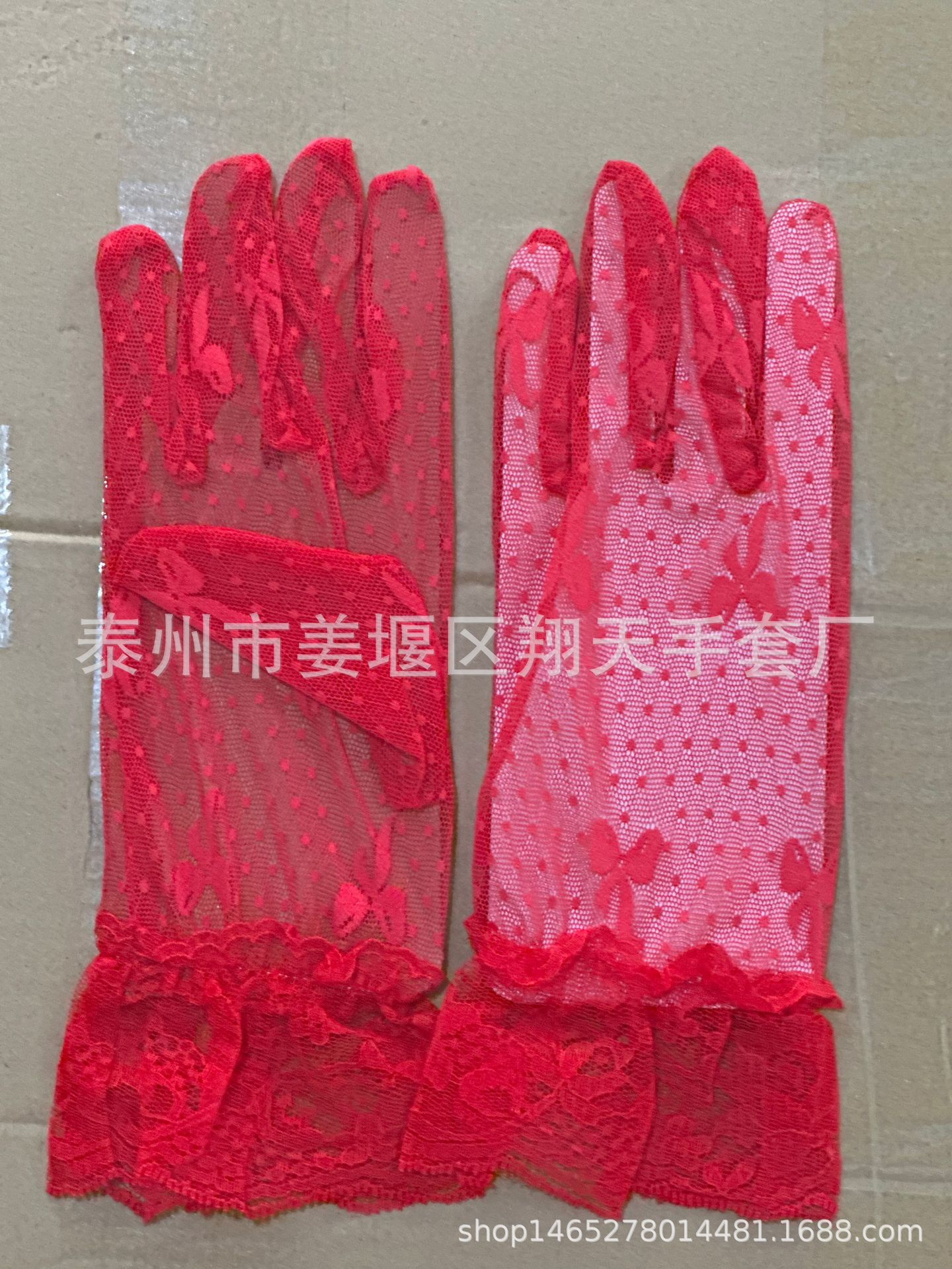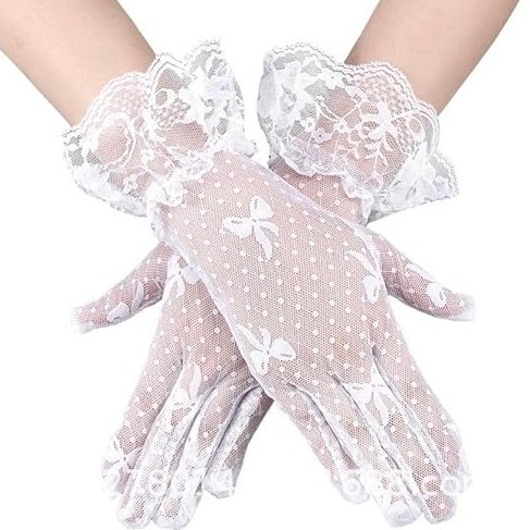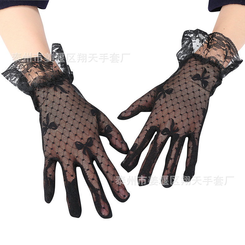 批发夏季婚纱礼服手套短款防晒黑色儿童蕾丝花边蝴蝶结手套 跨境