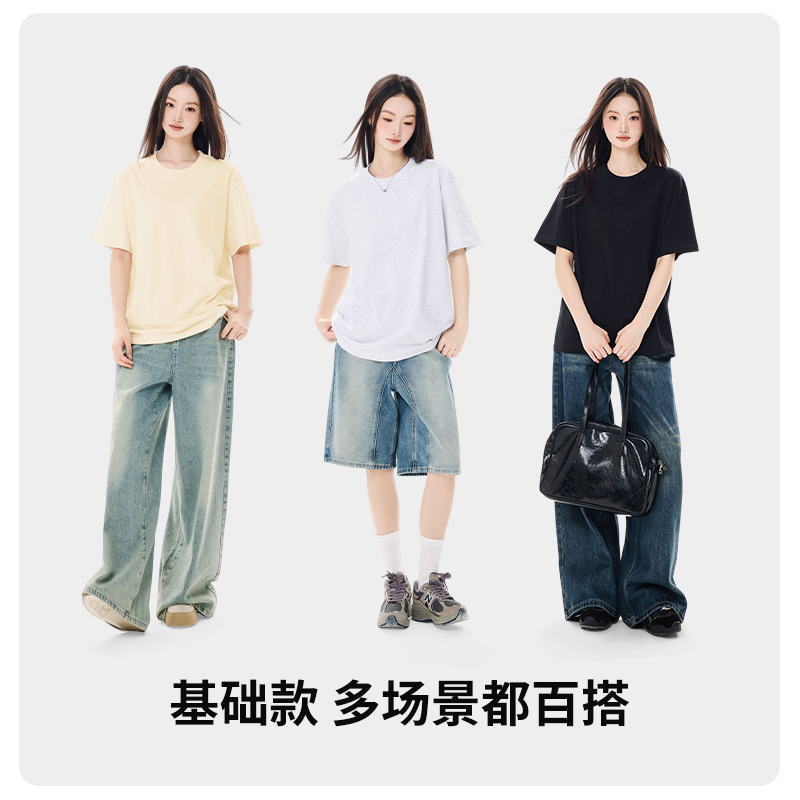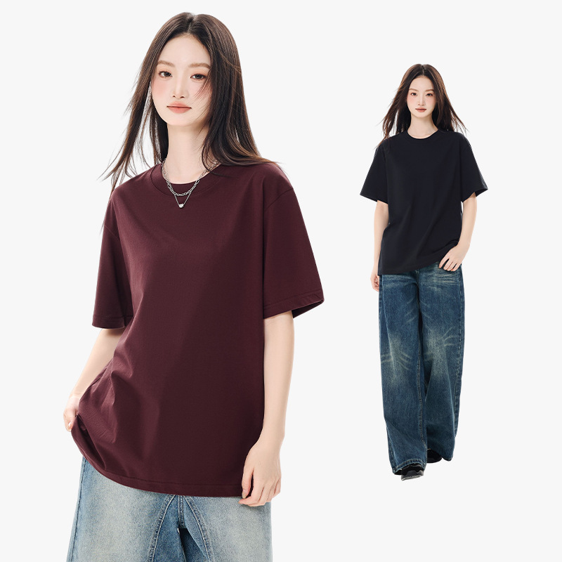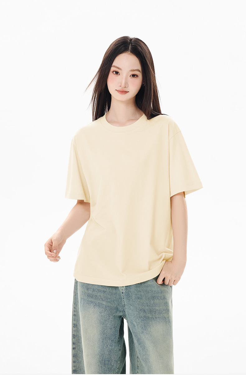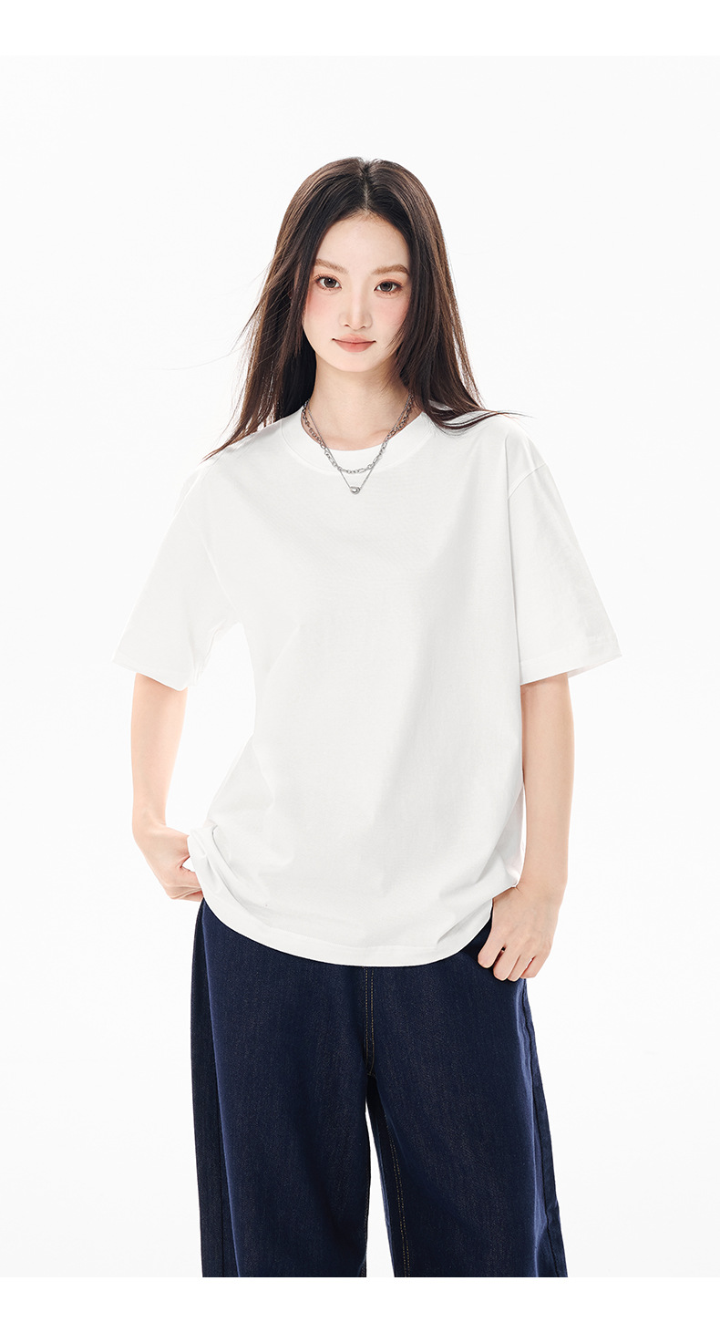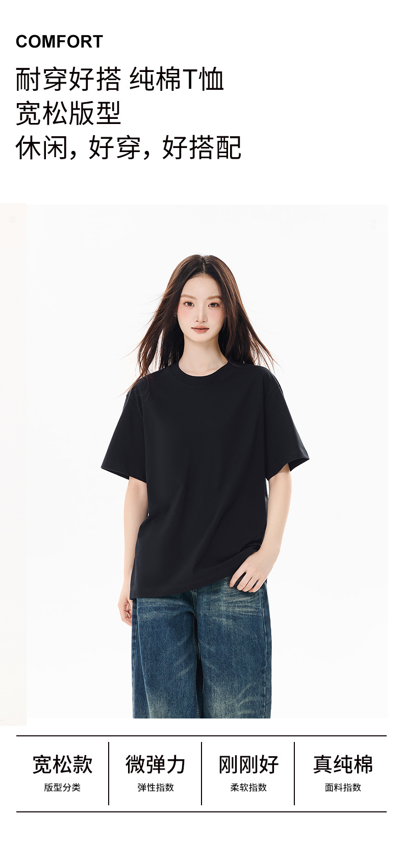 日韩230g纯棉短袖T恤女宽松显瘦上衣男纯色圆领休闲打底衫春夏款