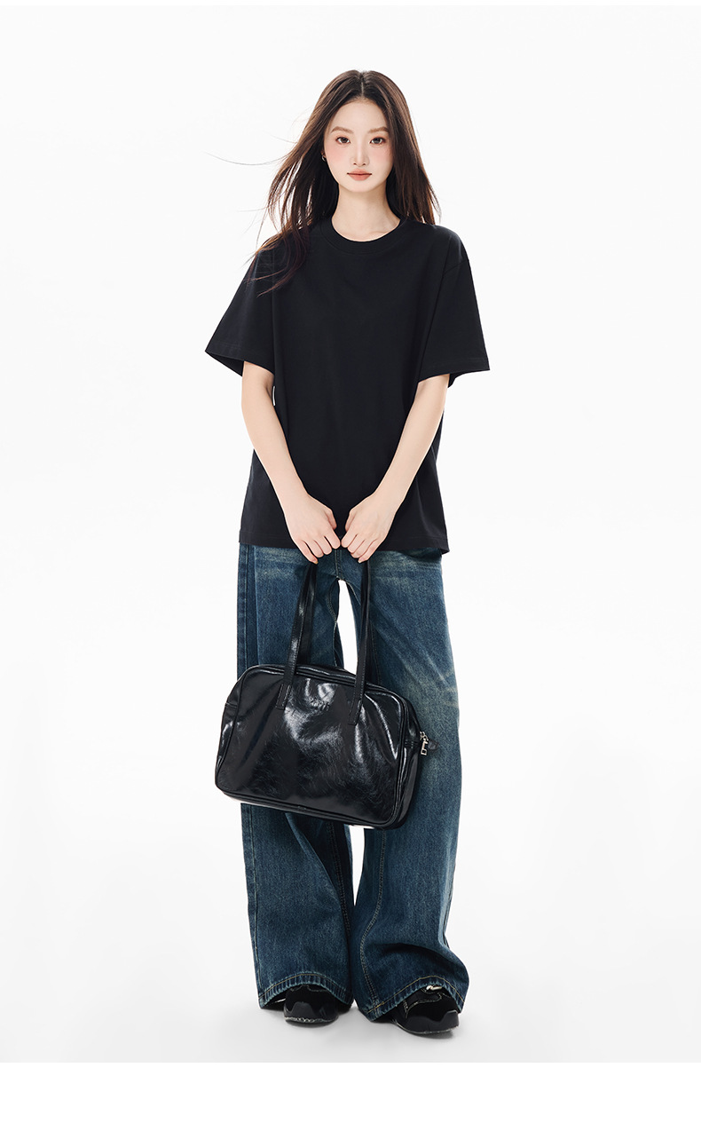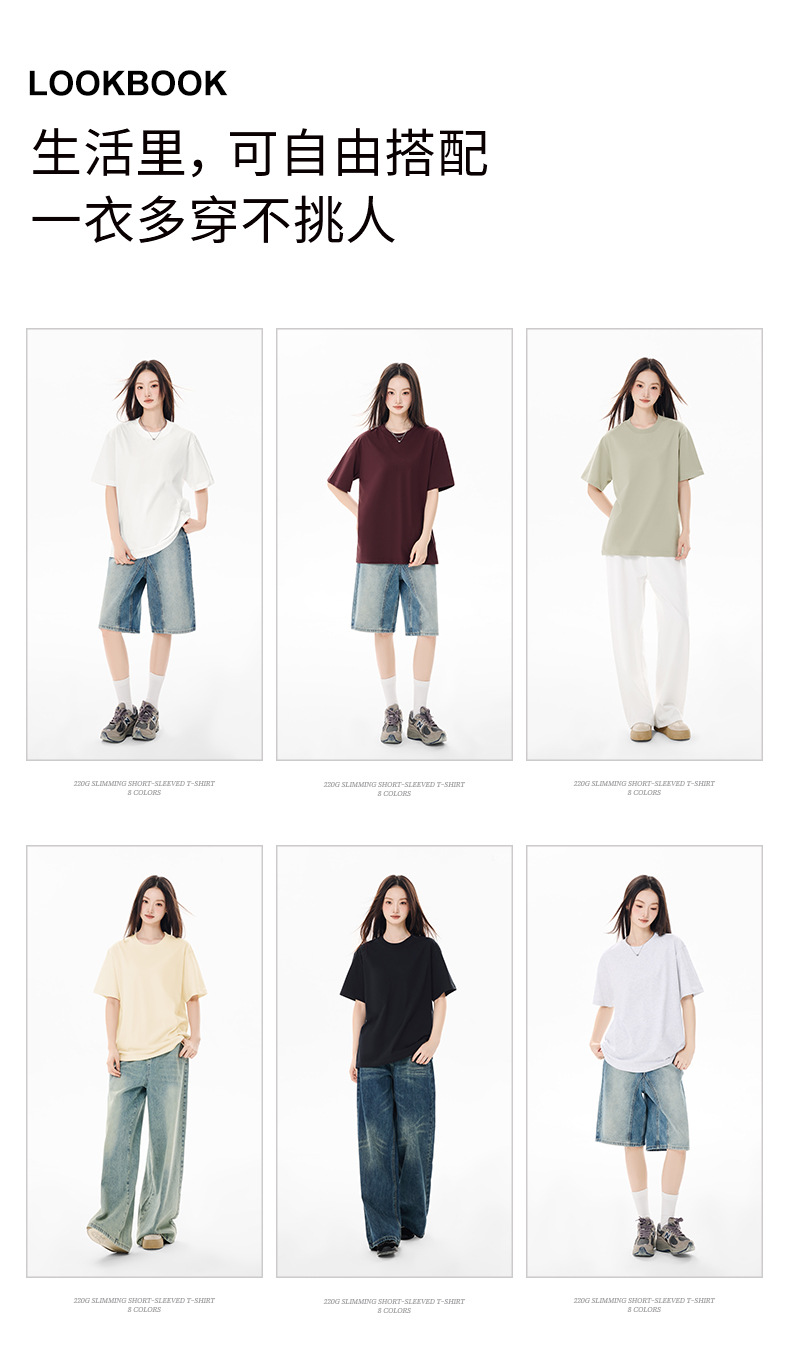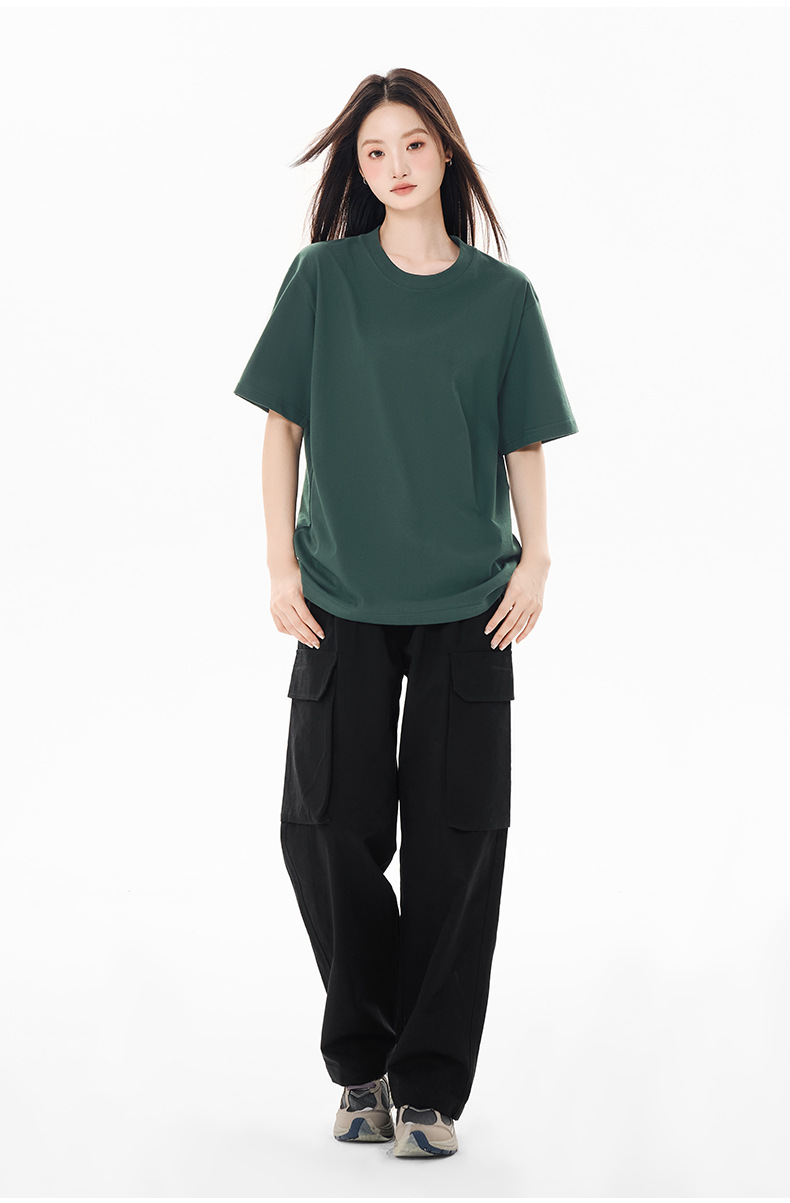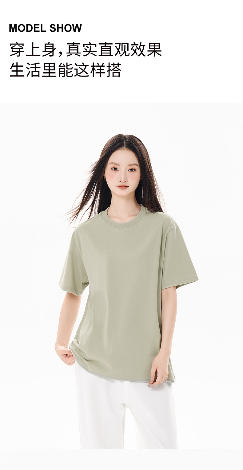 日韩230g纯棉短袖T恤女宽松显瘦上衣男纯色圆领休闲打底衫春夏款