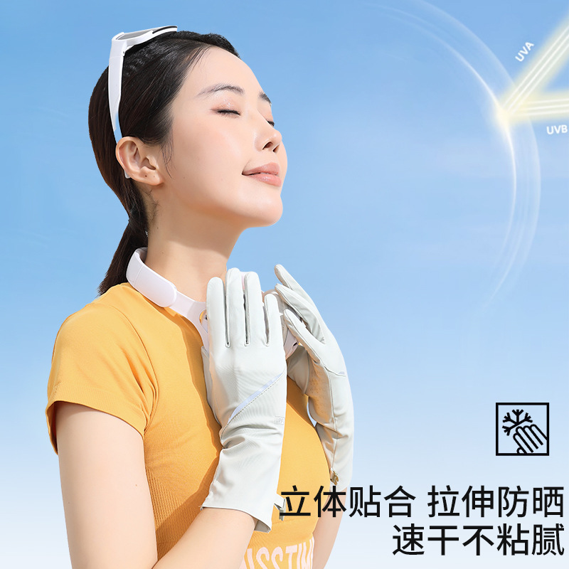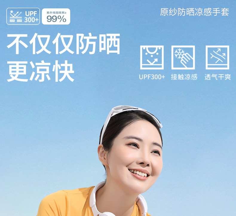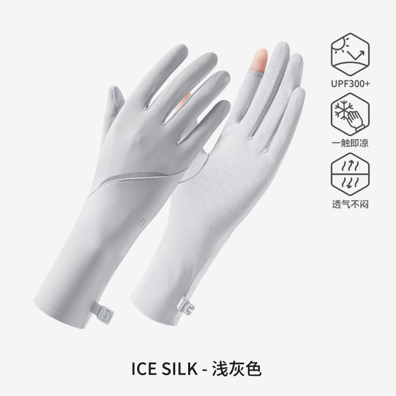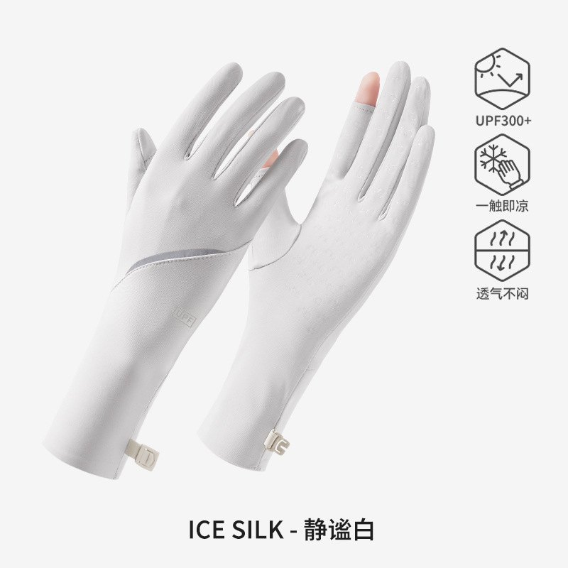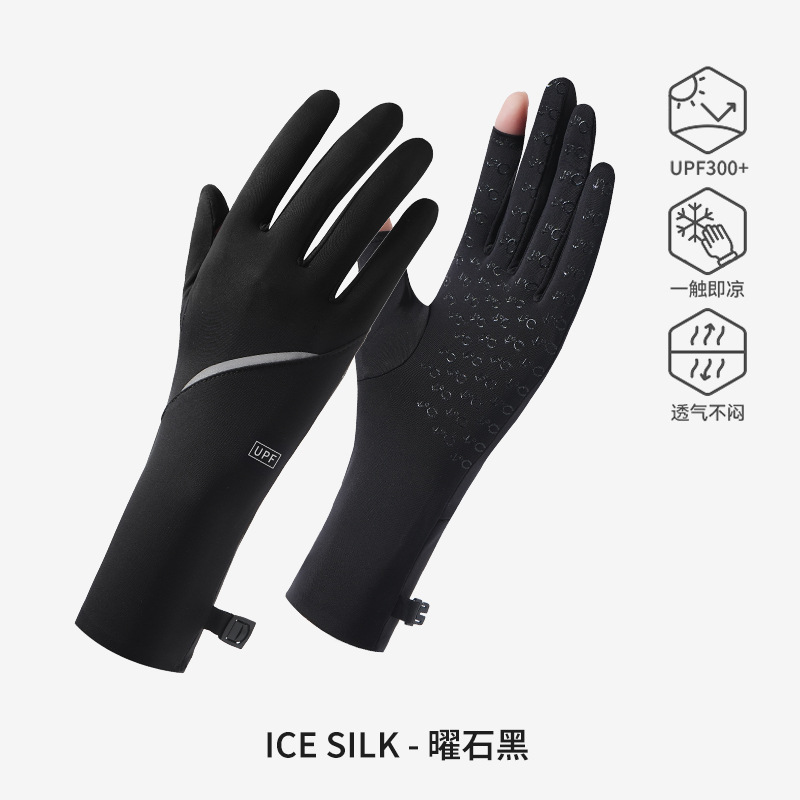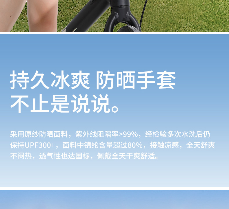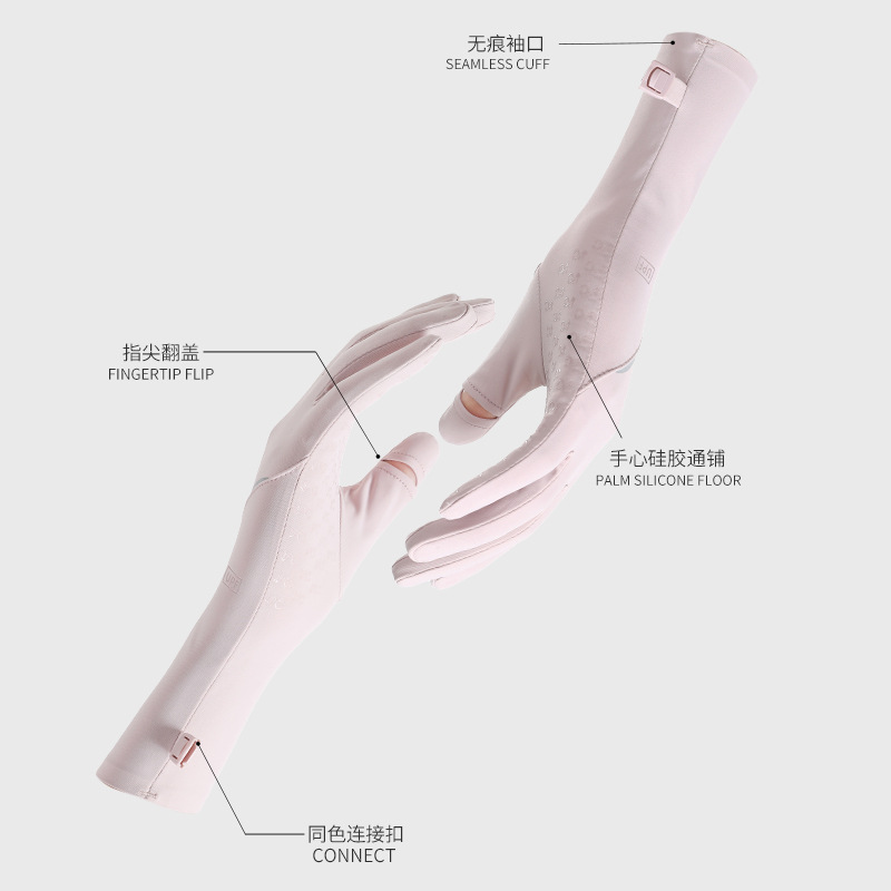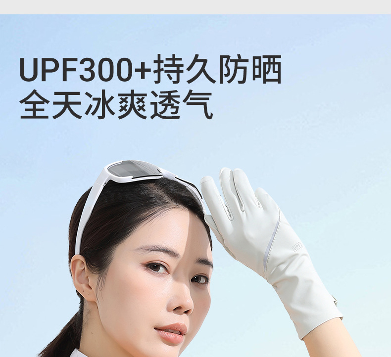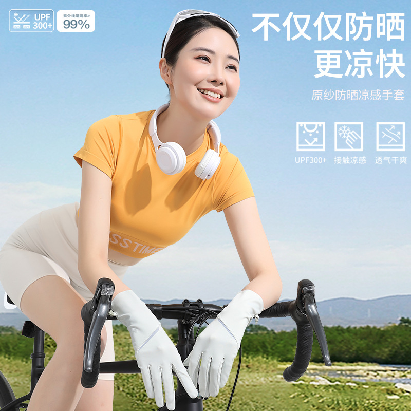 夏季加长防晒手套女士户外中长凉感露指UPF300+防紫外线骑行手套