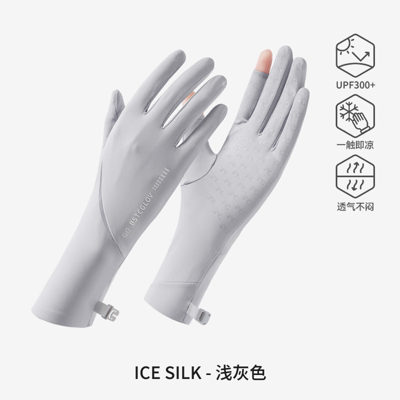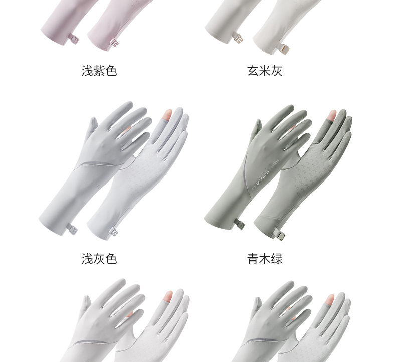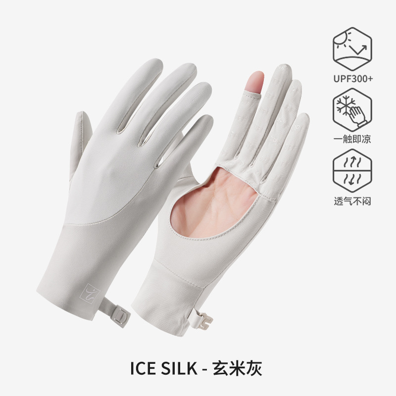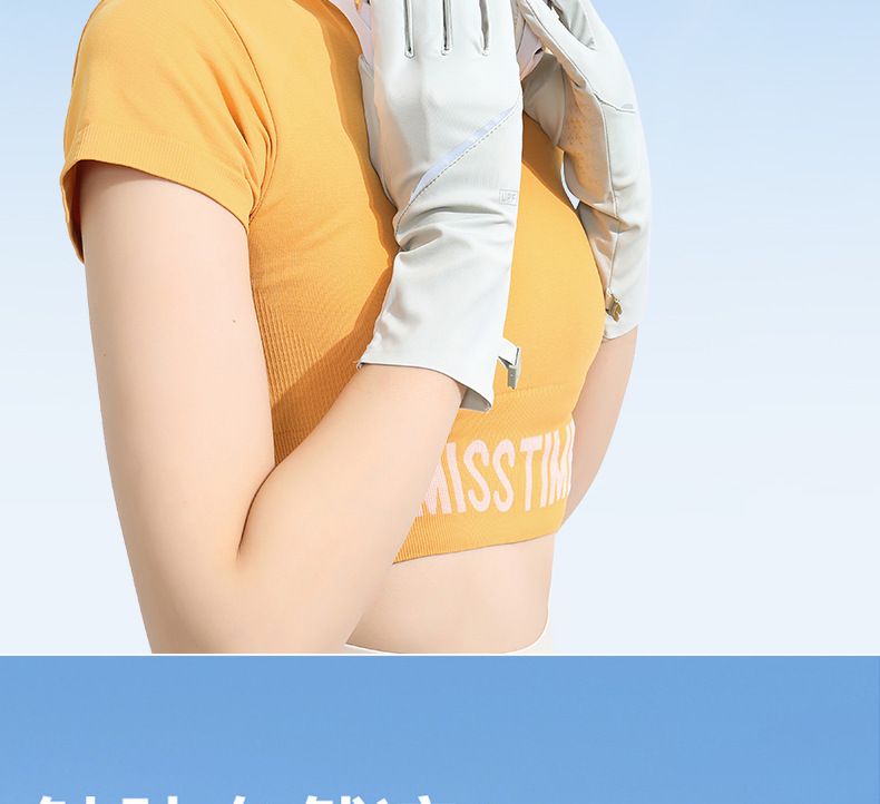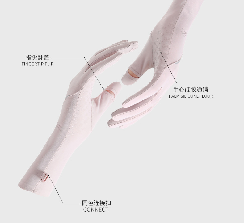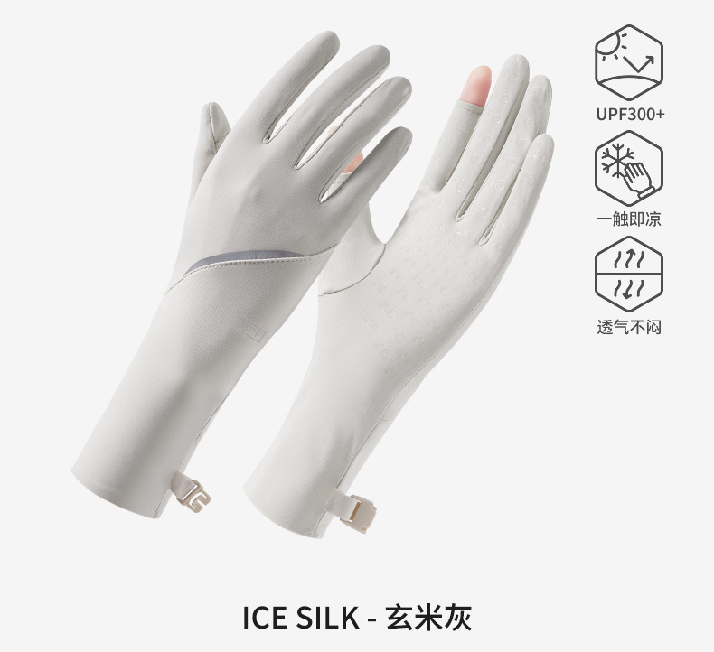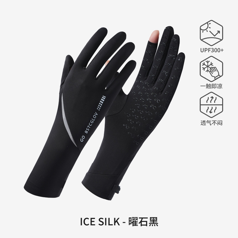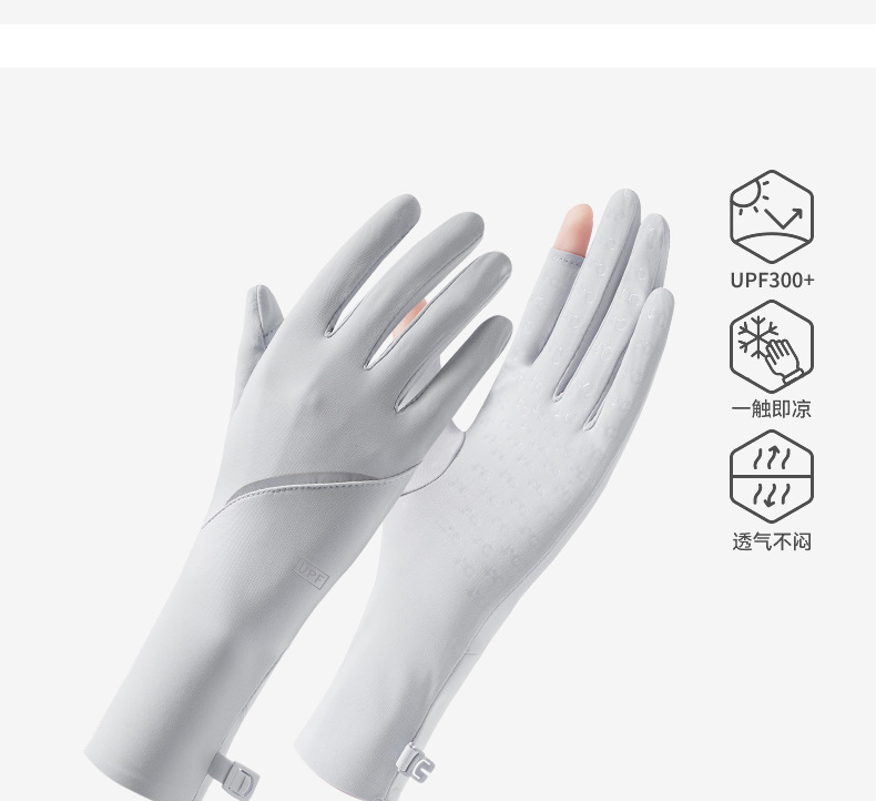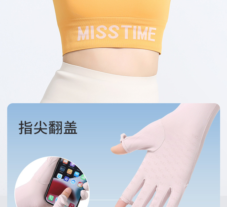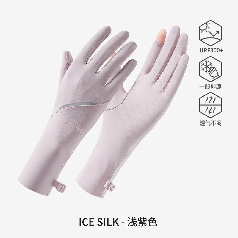 夏季加长防晒手套女士户外中长凉感露指UPF300+防紫外线骑行手套
