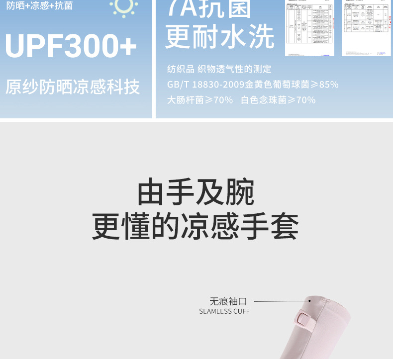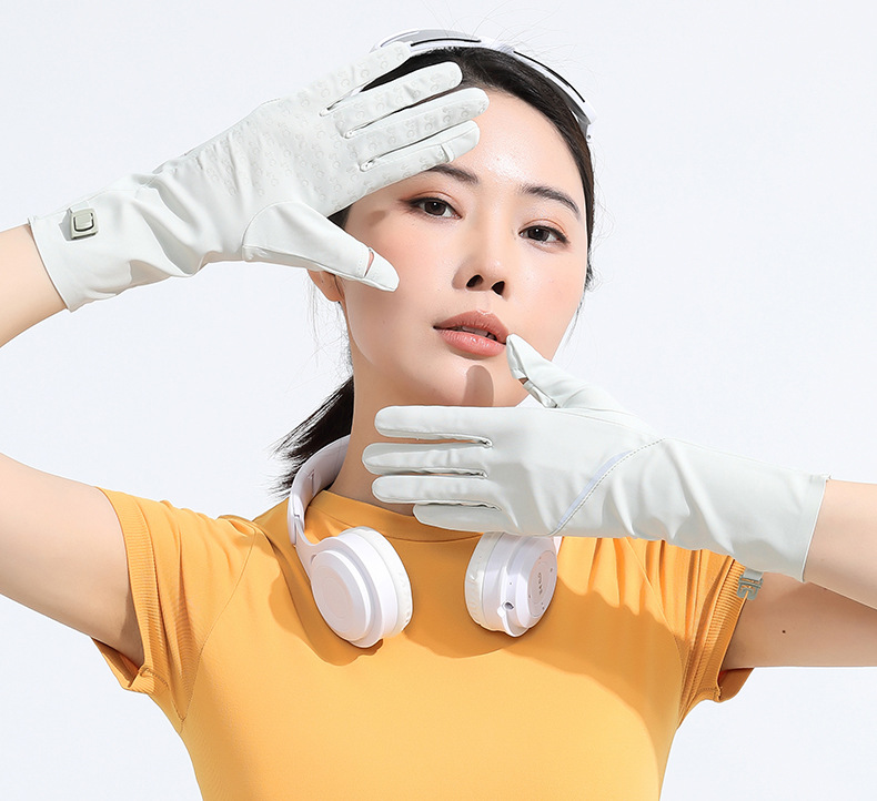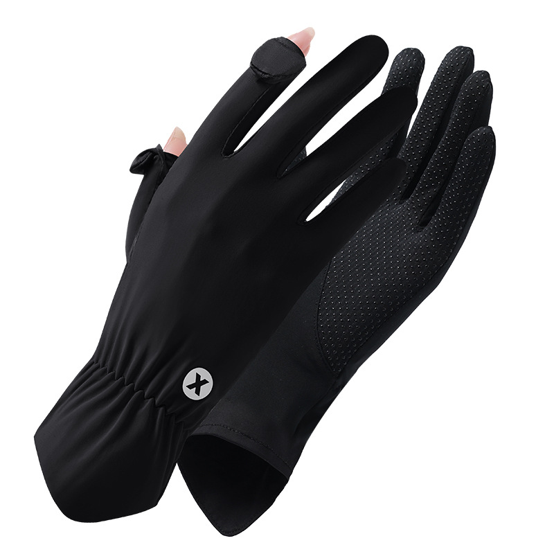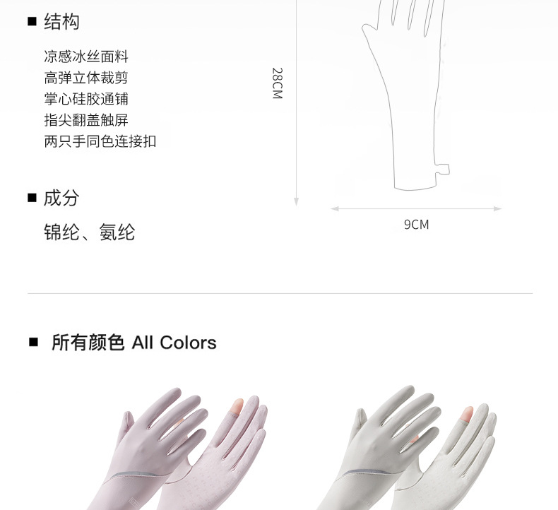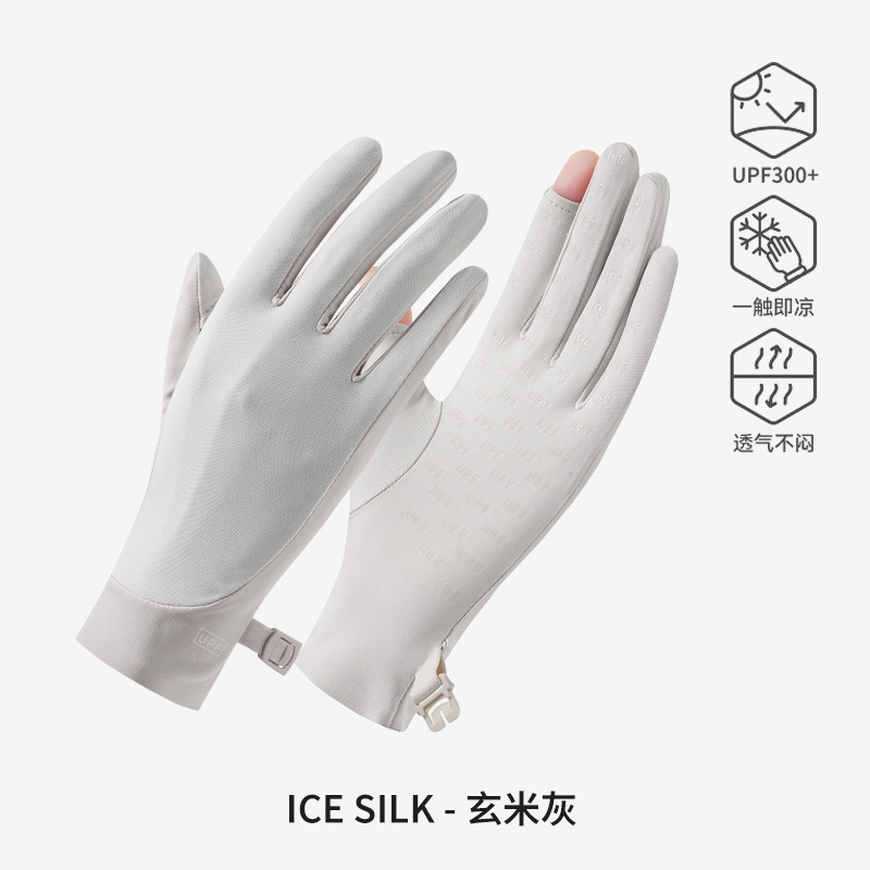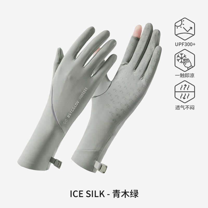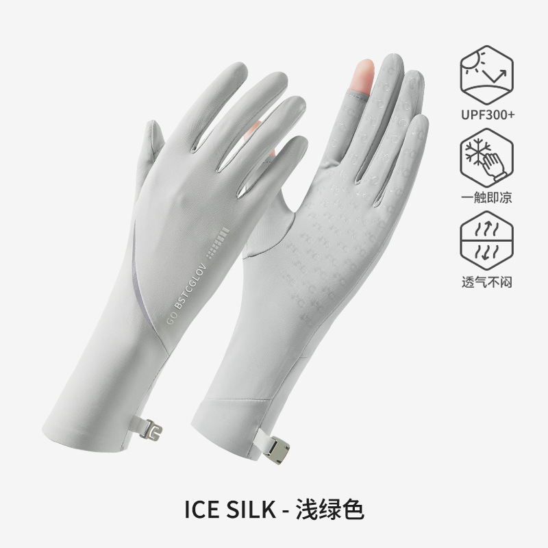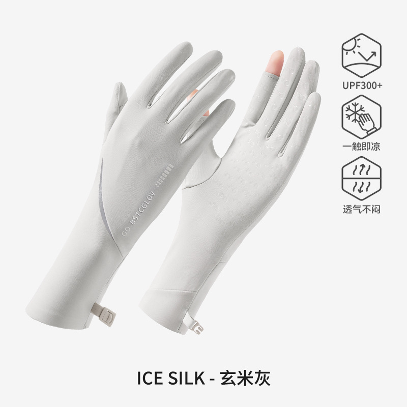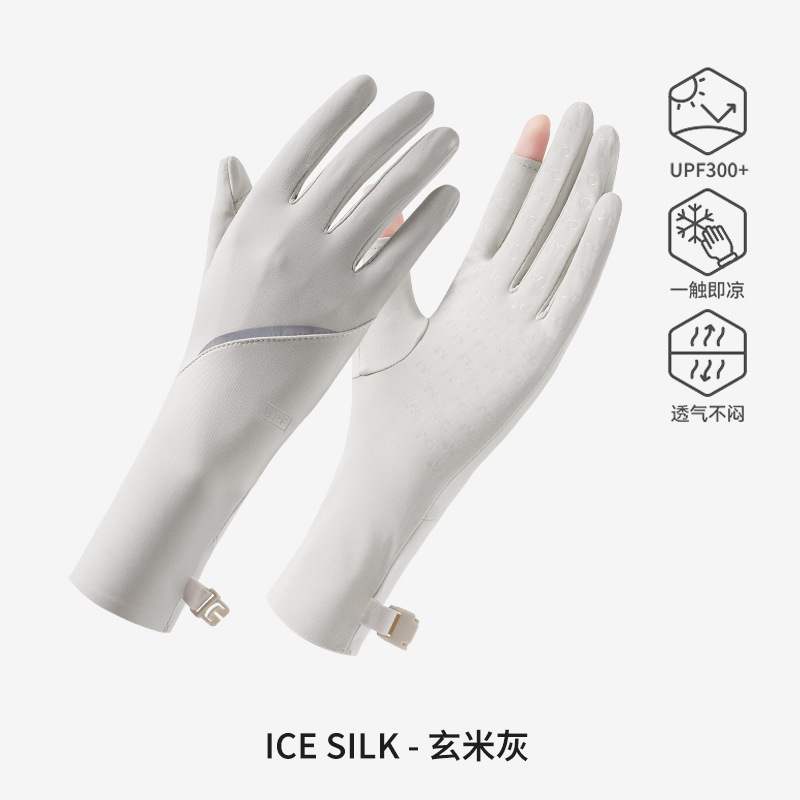 夏季加长防晒手套女士户外中长凉感露指UPF300+防紫外线骑行手套