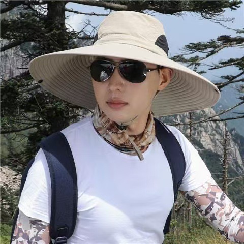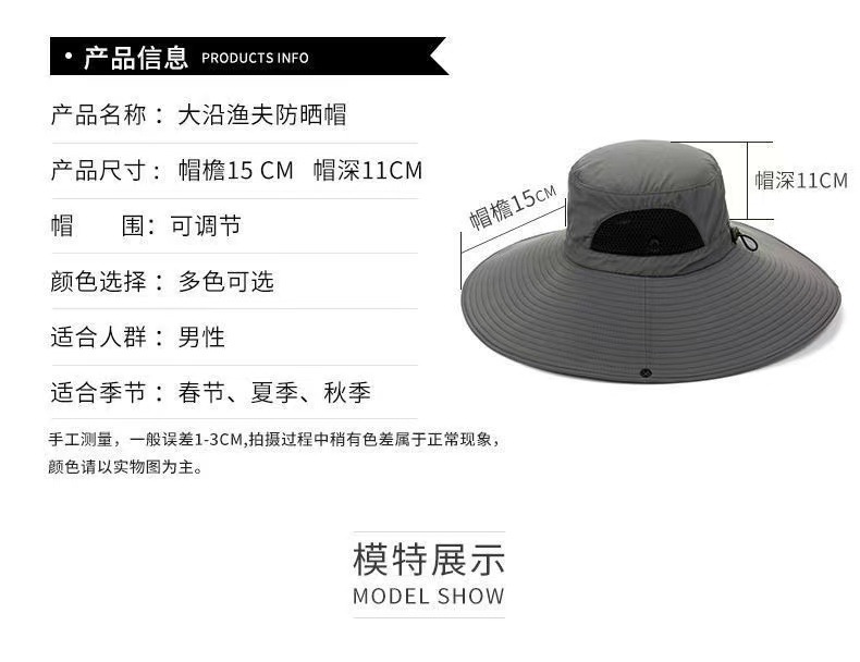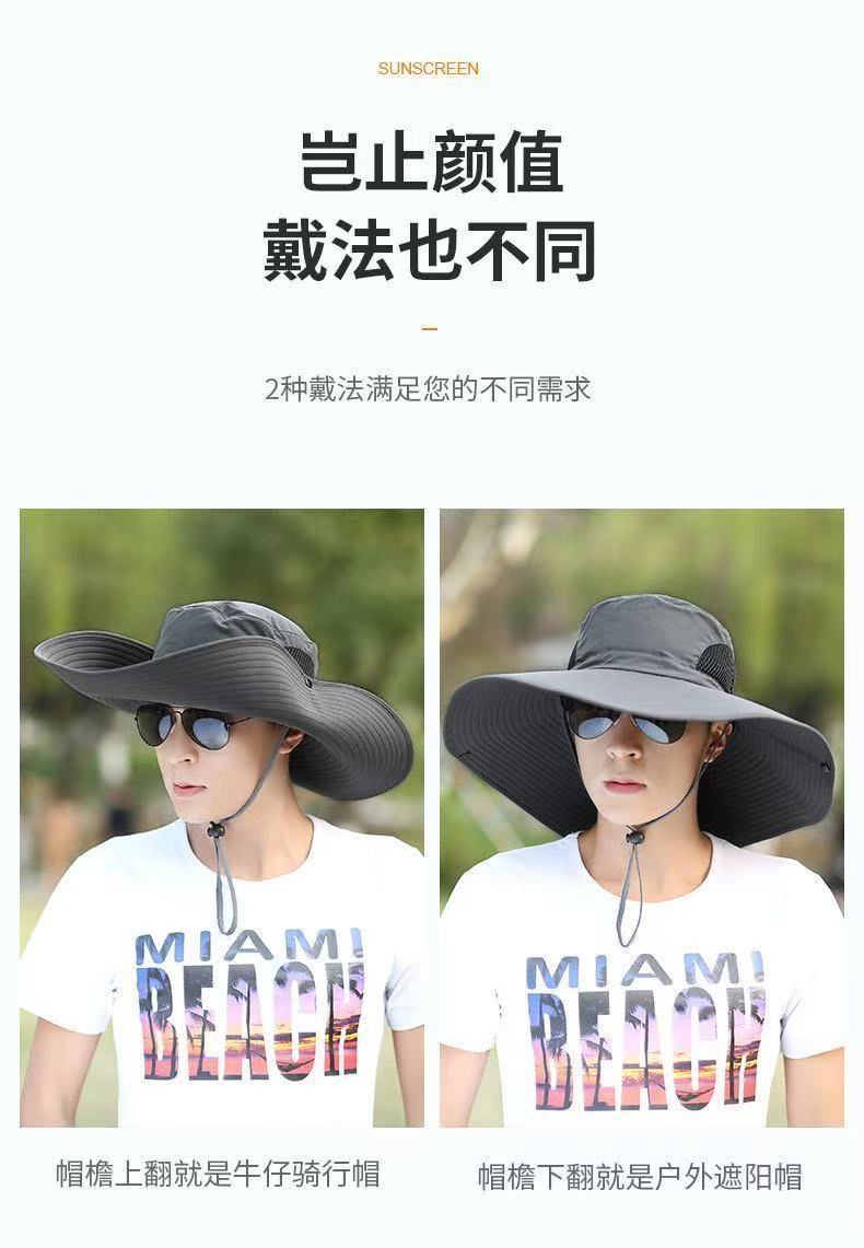 特大帽檐网眼透气遮阳帽夏季防晒渔夫帽男女同款户外钓鱼登上帽子