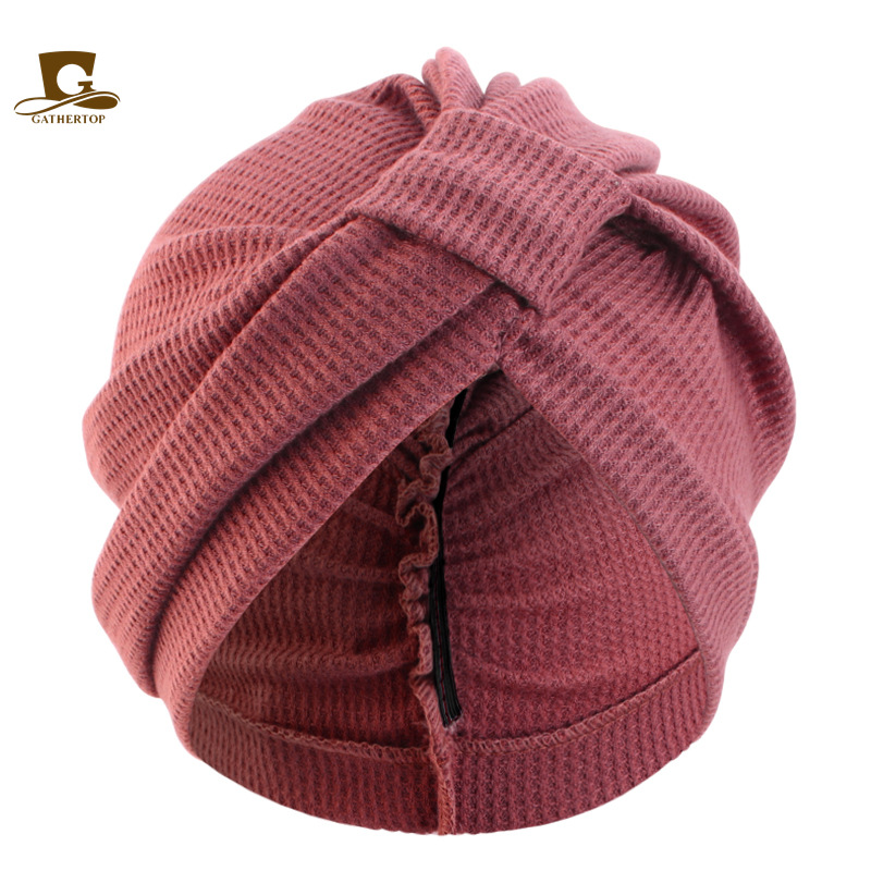 新款棉质加厚华夫格方块头巾帽印度帽民族包头巾 JDT-433G