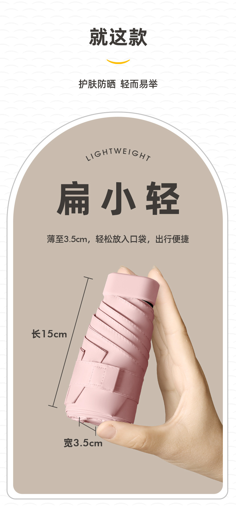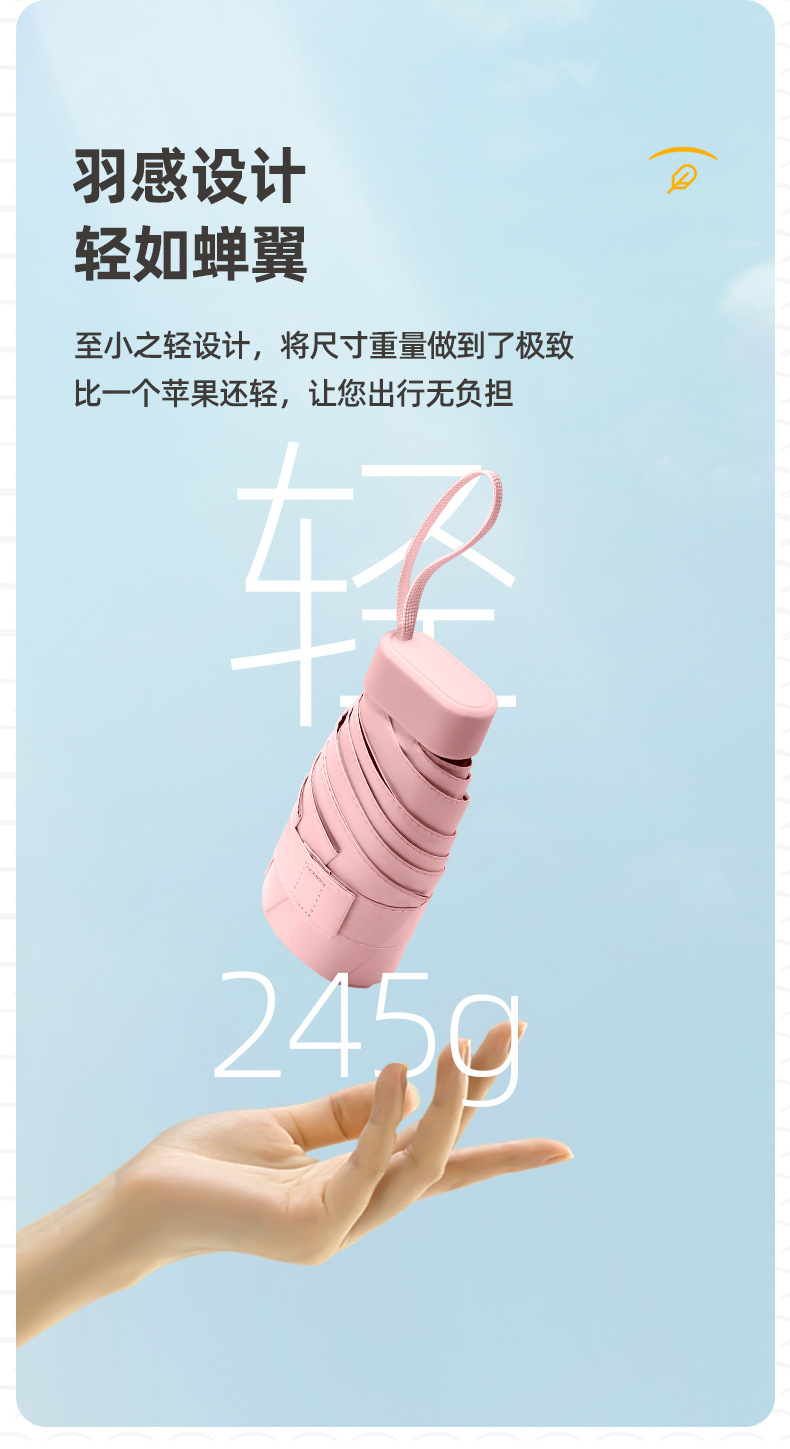 迷你防晒50+防紫外线胶囊晴雨两用雨伞折叠伞高级感女太阳五折伞