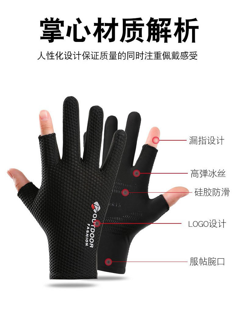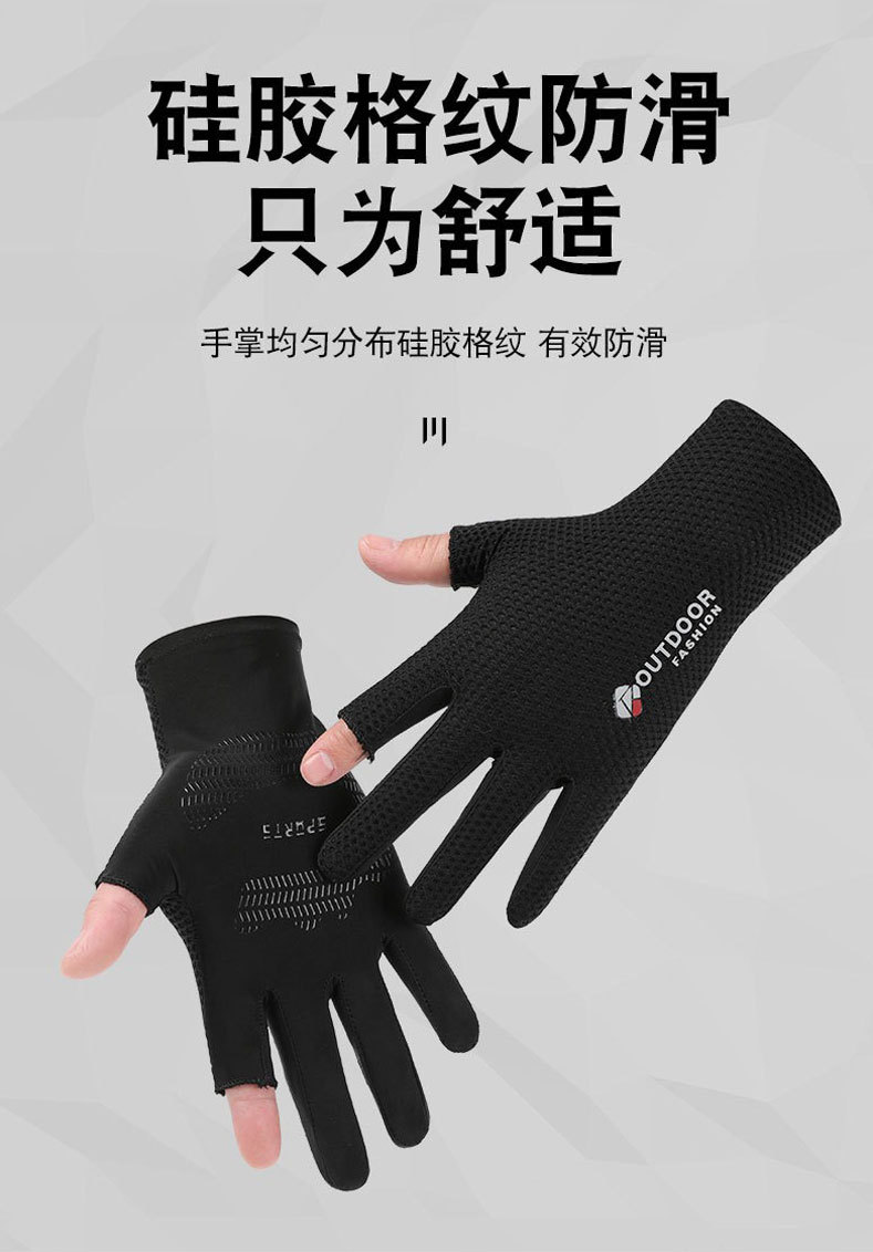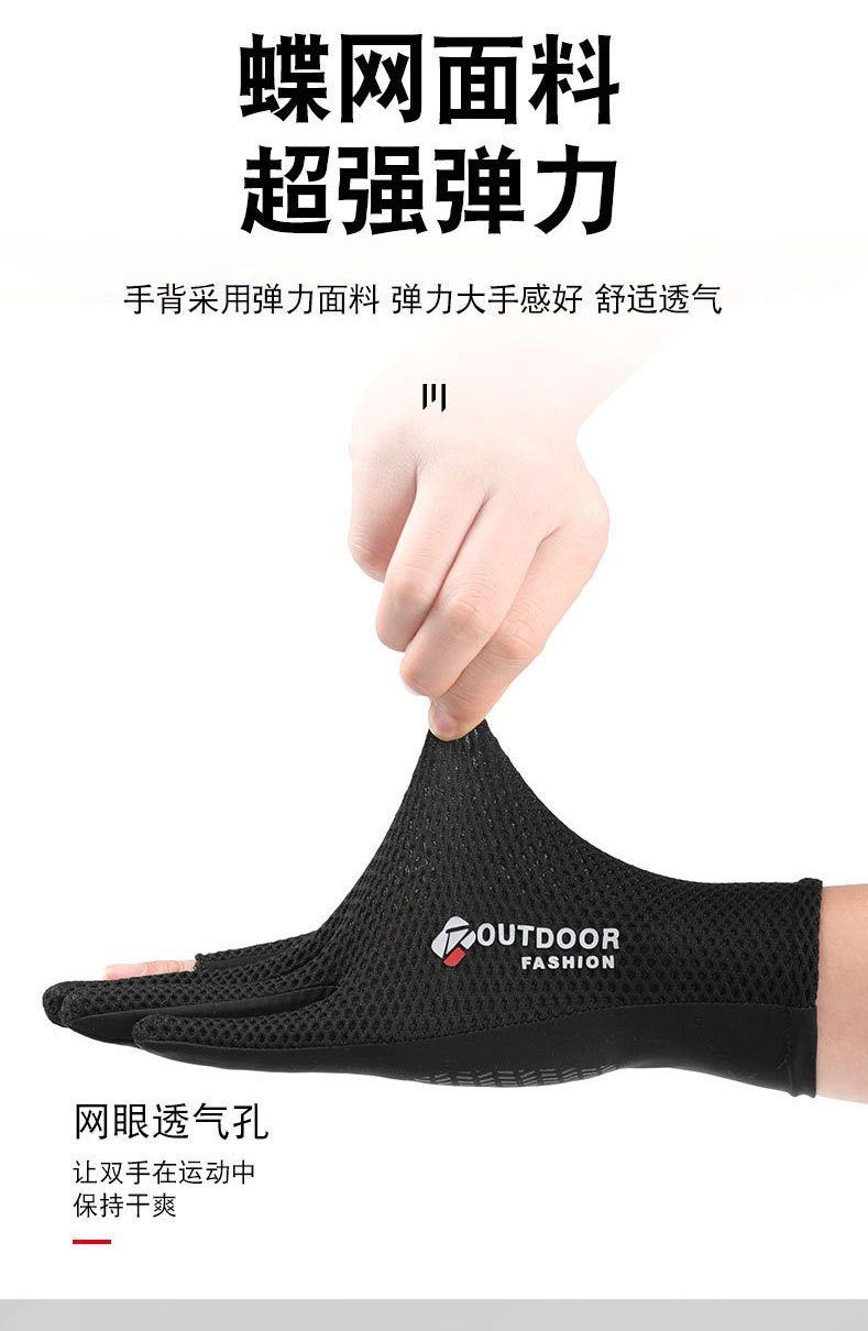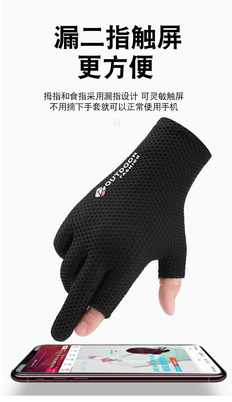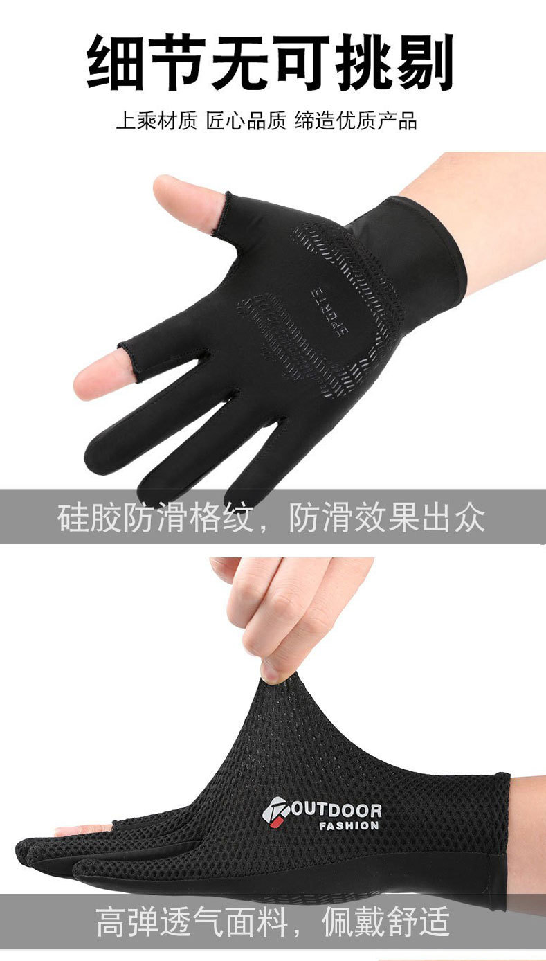 男士防晒防紫外线网眼透气手套骑行薄款冰丝二指钓鱼户外防滑速干