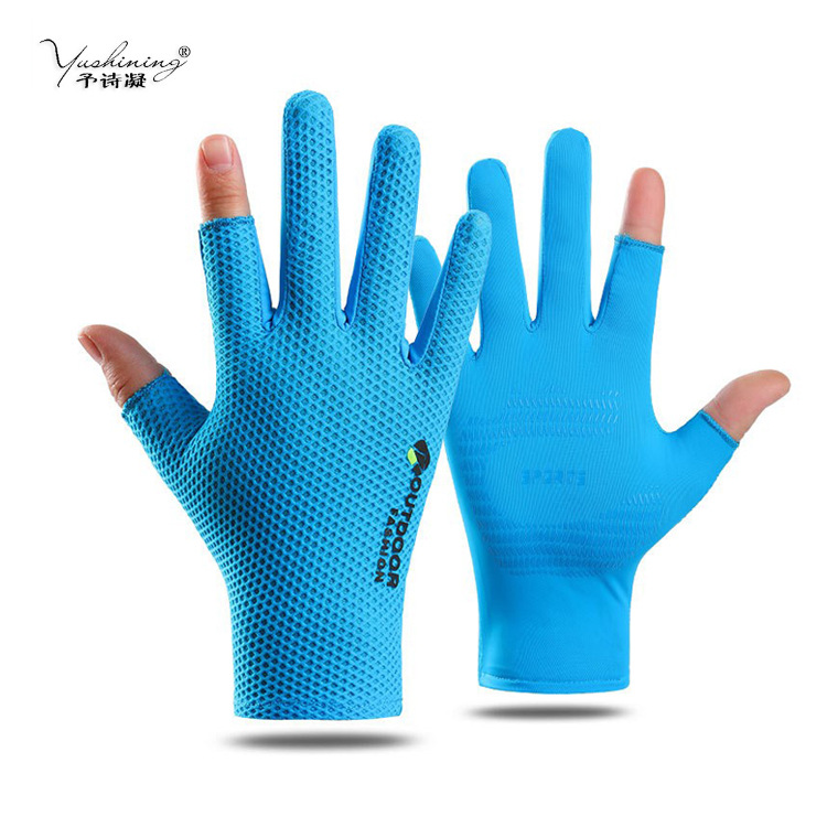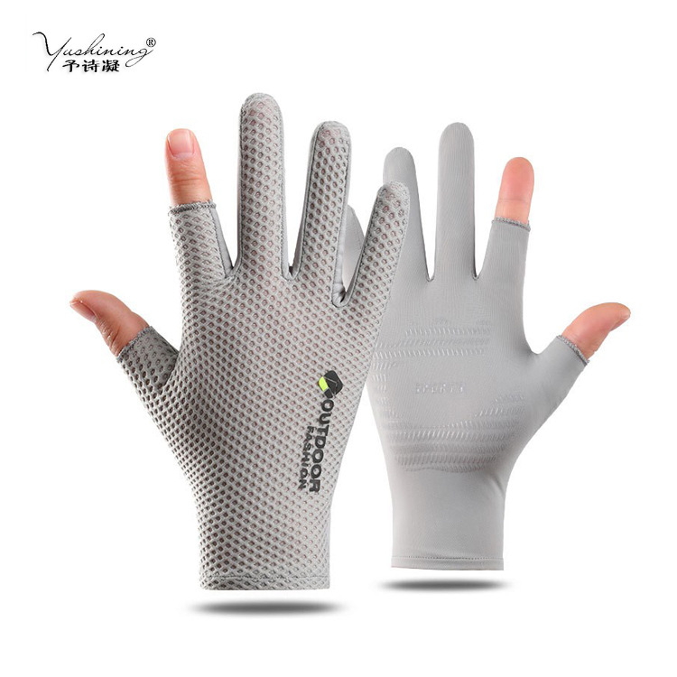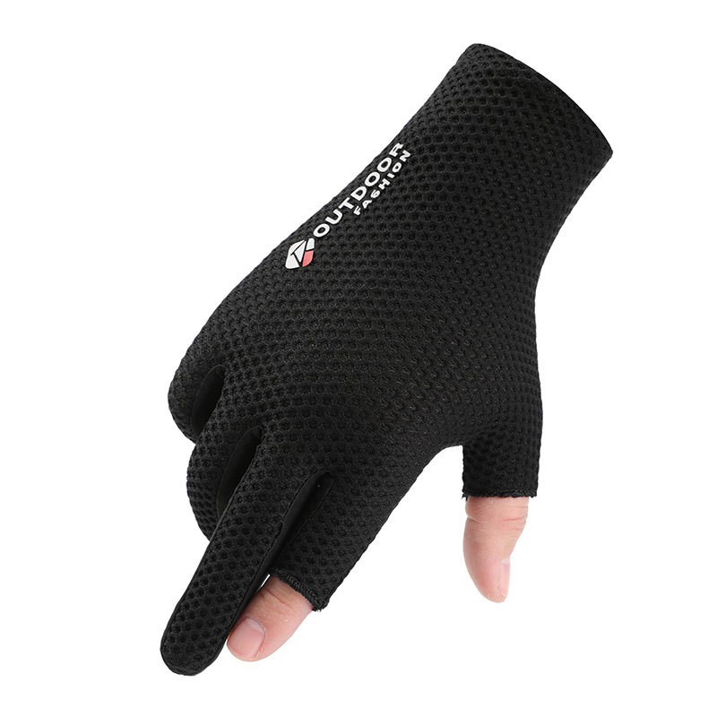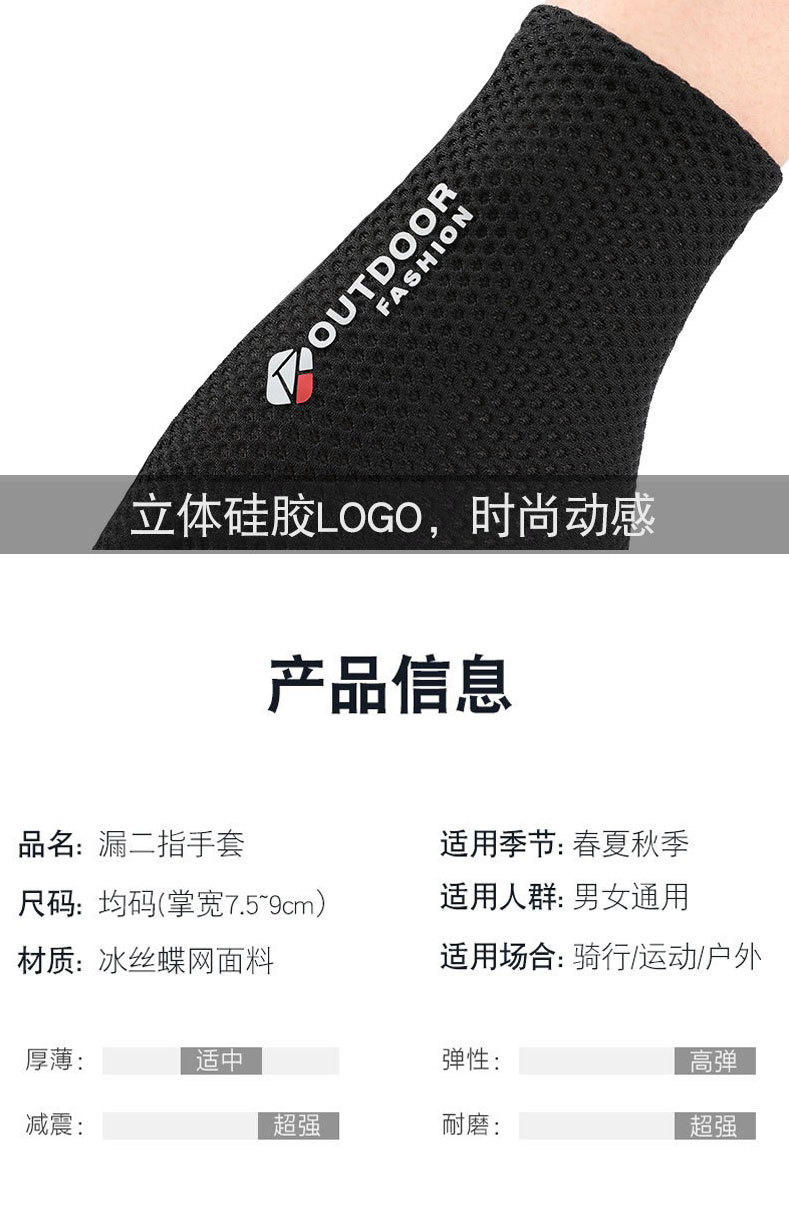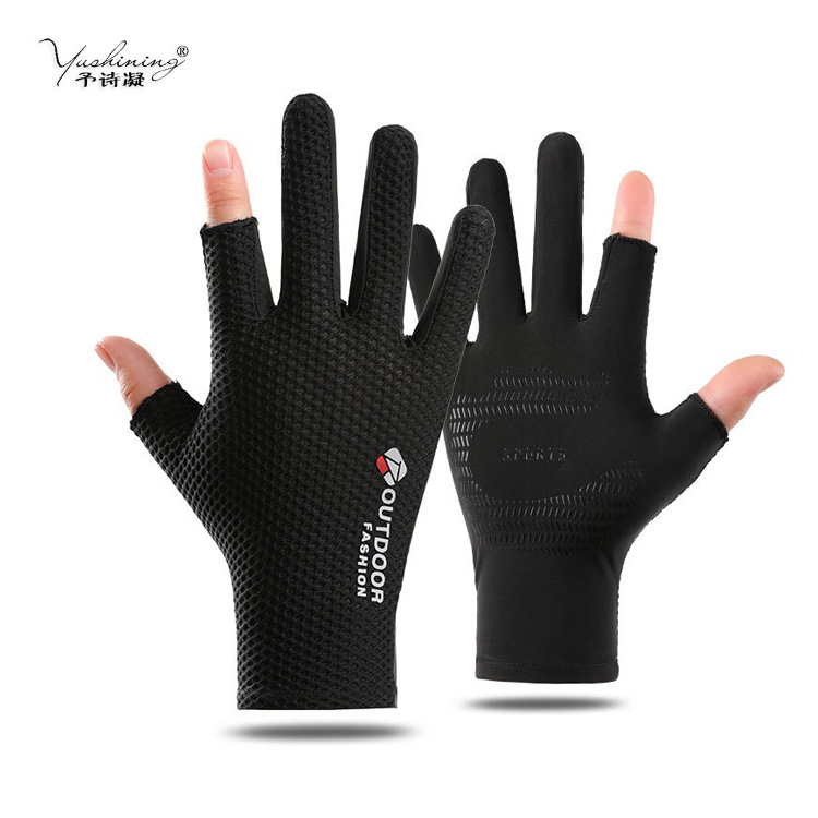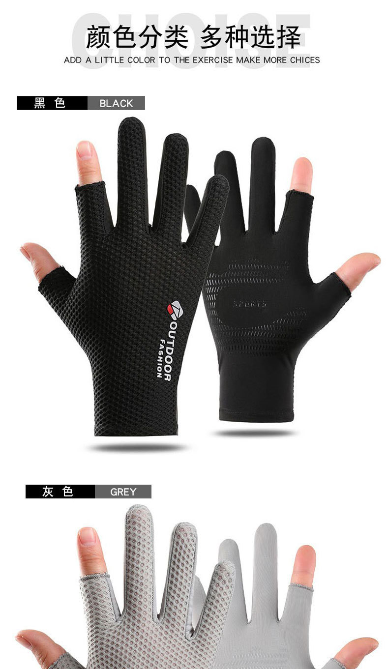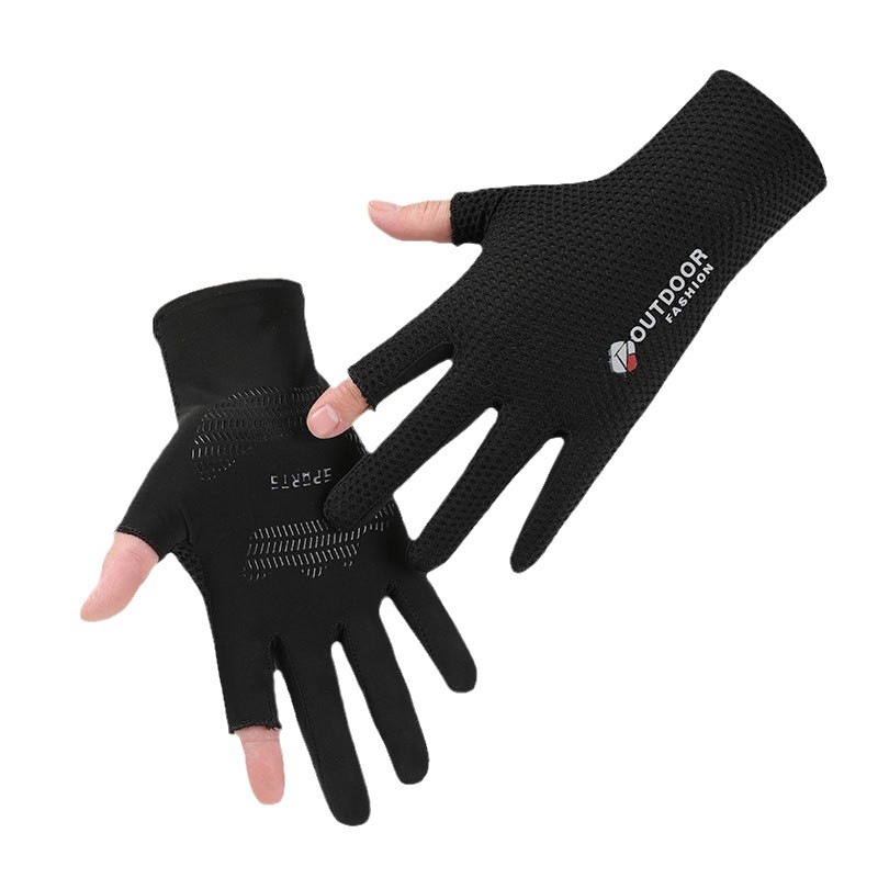 男士防晒防紫外线网眼透气手套骑行薄款冰丝二指钓鱼户外防滑速干