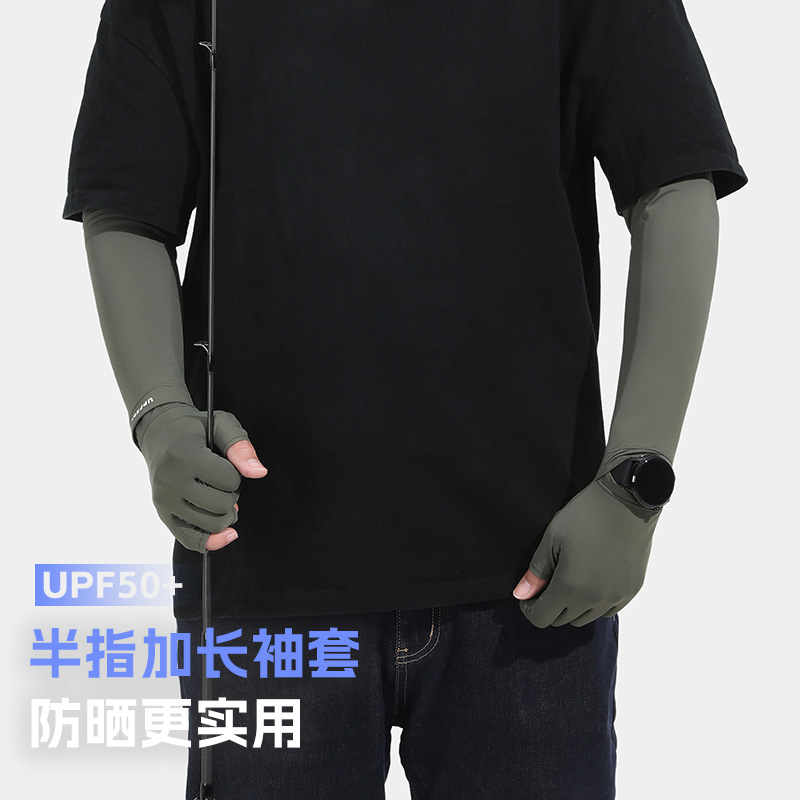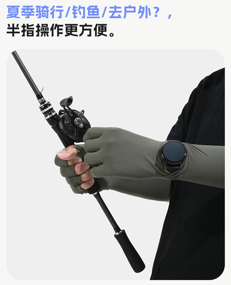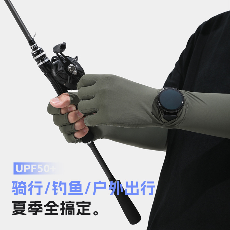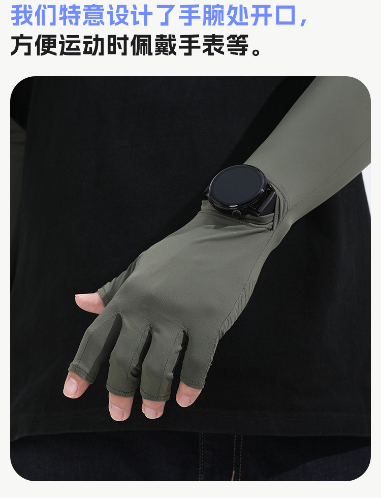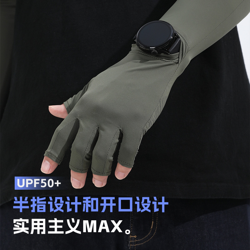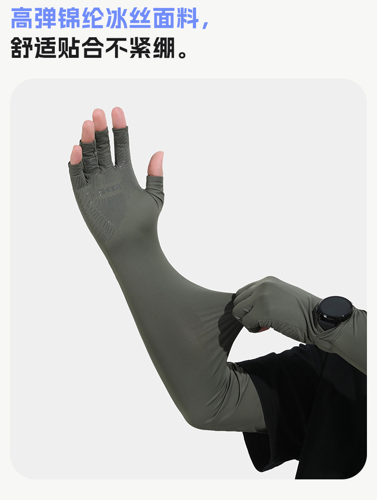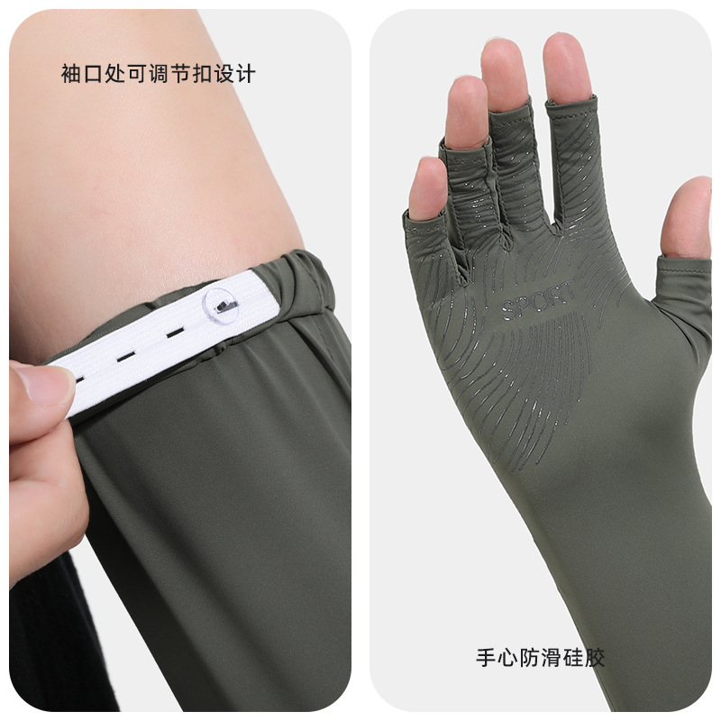 防晒手套夏季冰丝防紫外线凉感加长款半指长袖套男女情侣钓鱼漏指