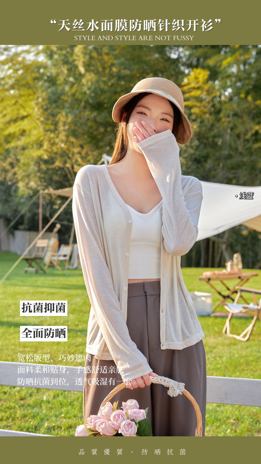 莱赛尔天丝防晒开衫薄款女冰丝针织外套2025春夏外搭罩衫灰色上衣