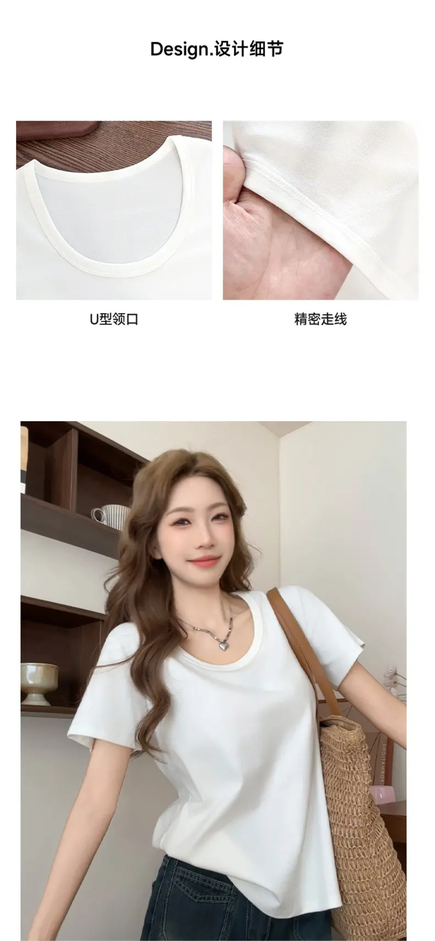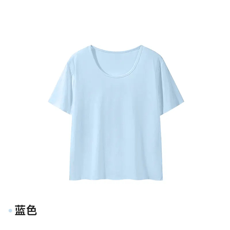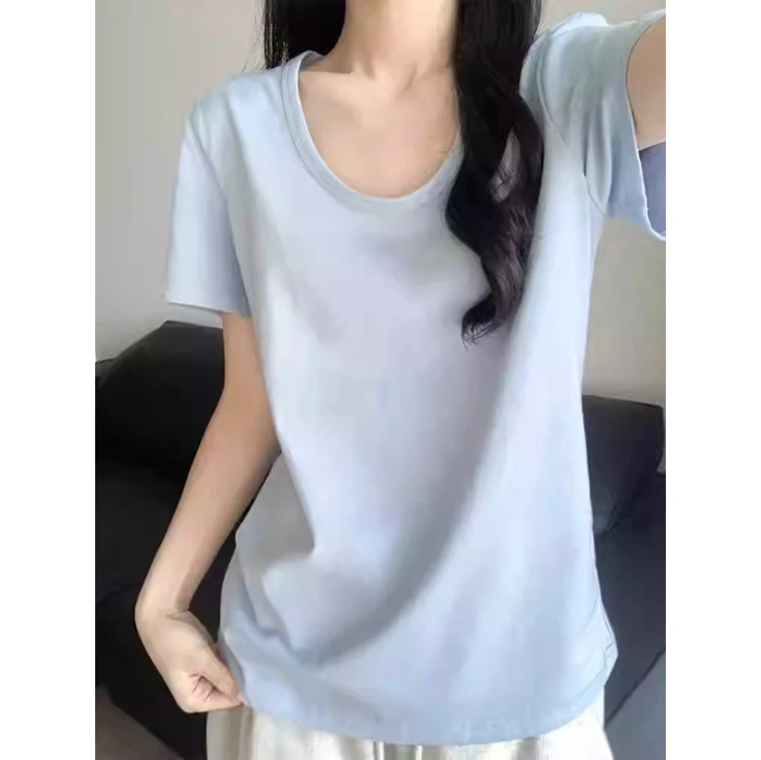 2025新款夏季粉色U领休闲百搭宽松短袖T恤女正肩慵懒半袖T恤上衣