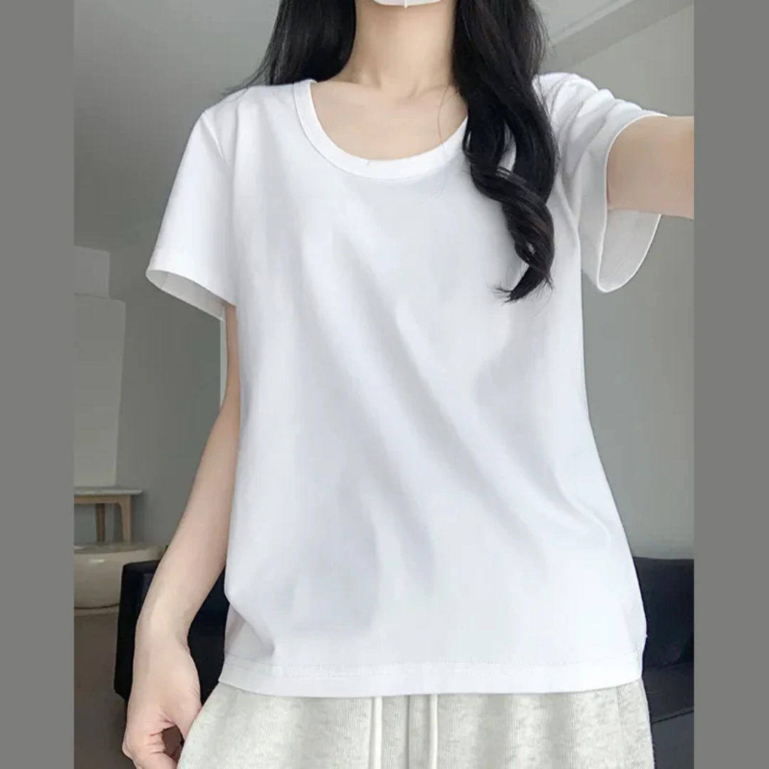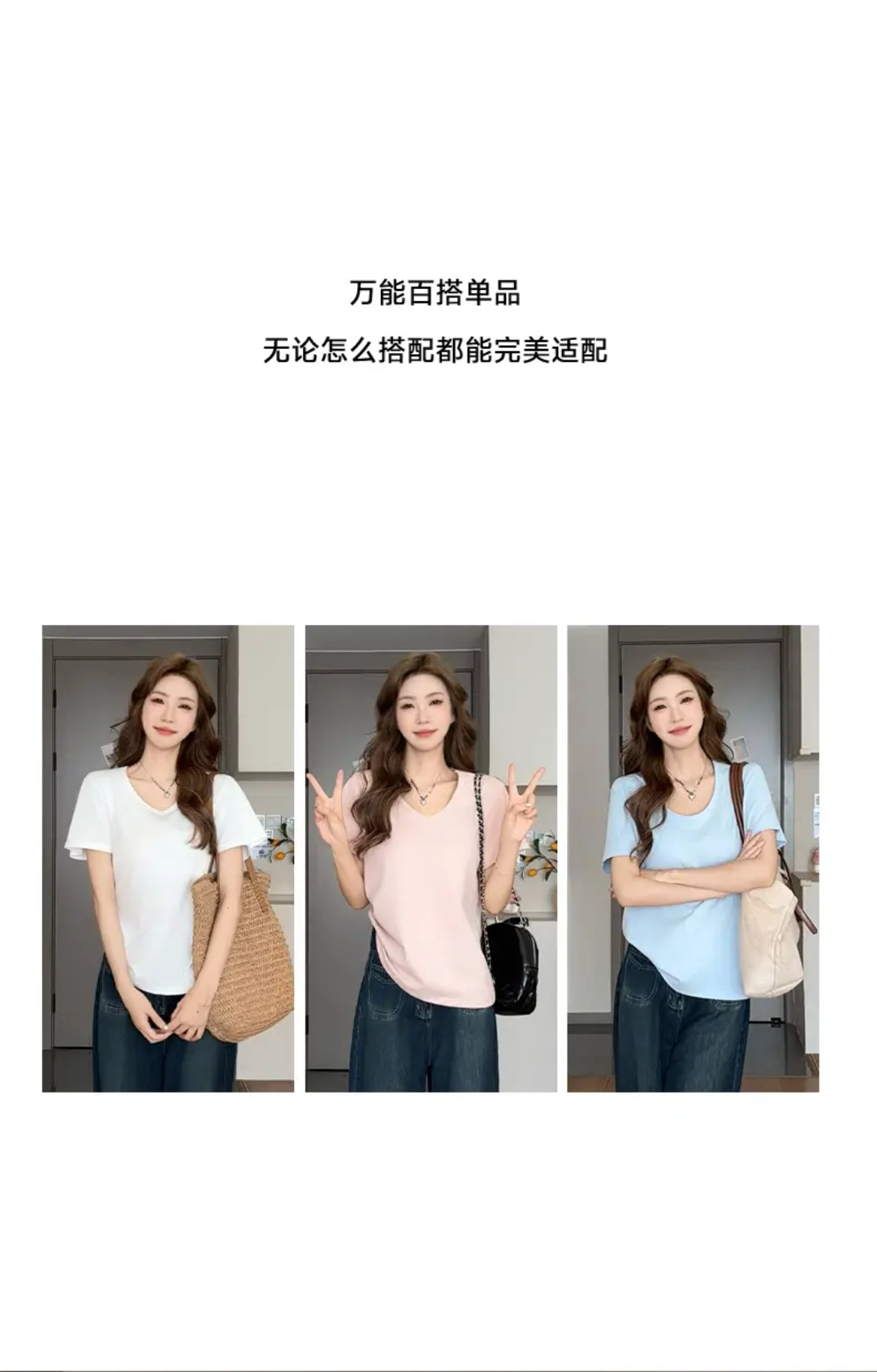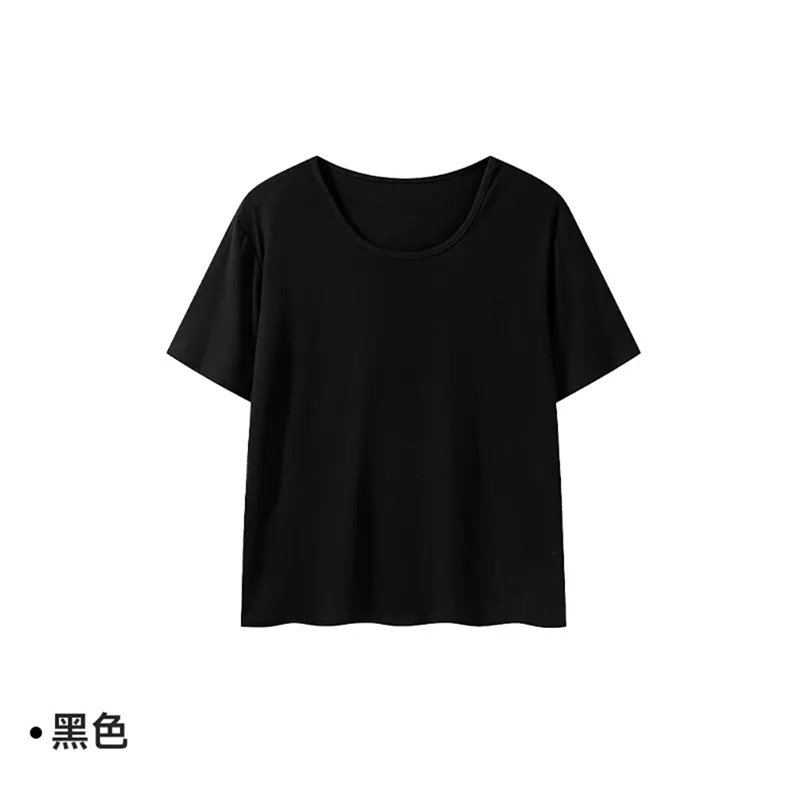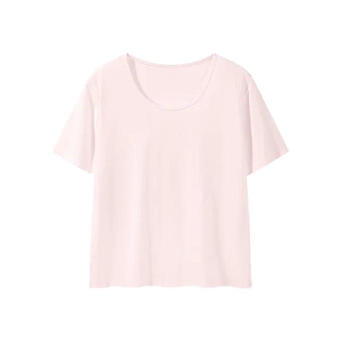 2025新款夏季粉色U领休闲百搭宽松短袖T恤女正肩慵懒半袖T恤上衣
