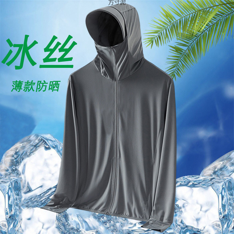 冰丝防晒衣男士夏季连帽风衣超薄款透气户外钓鱼防晒服外套夹克厂
