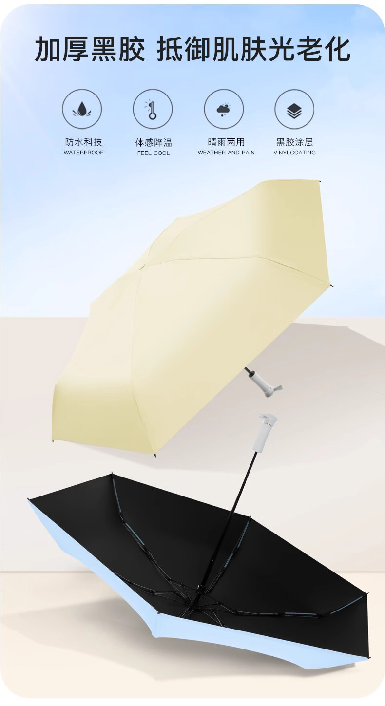 黑胶6骨太阳伞遮阳伞女防晒防紫外线两用迷你便携晴雨伞厂家批发1