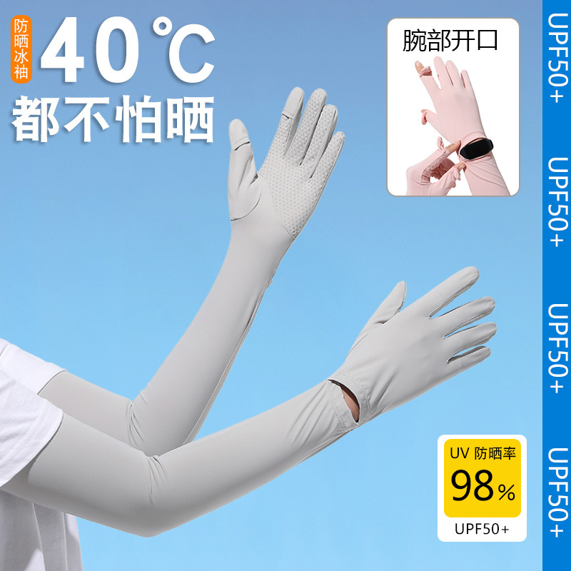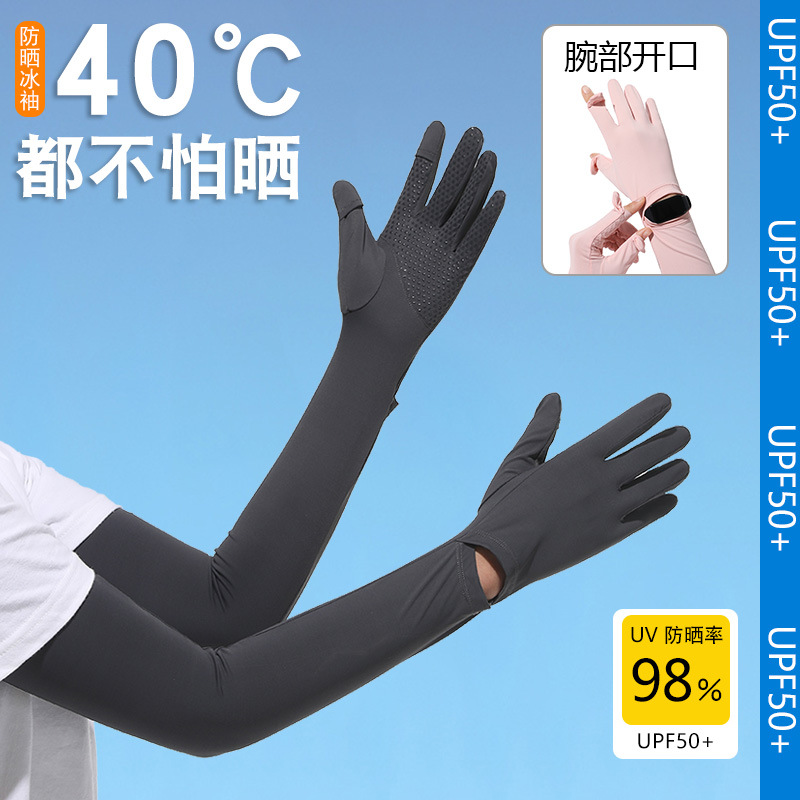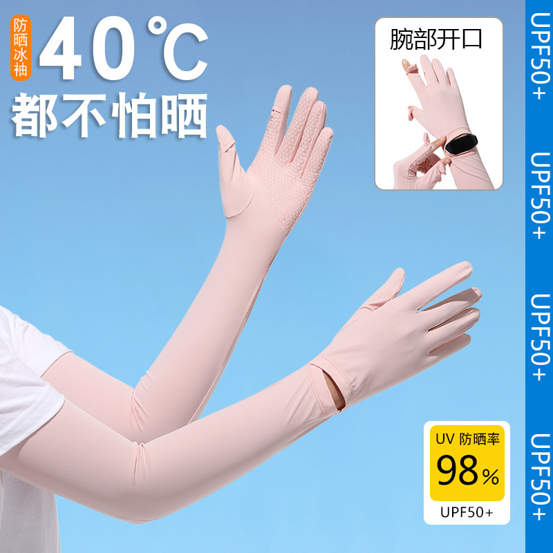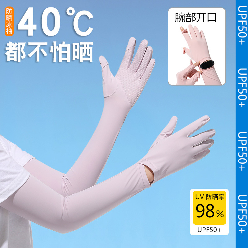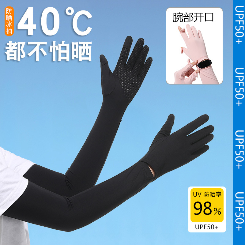 夏季防晒袖套防紫外线户外冰袖骑行锦纶冰丝女长防晒手套厂家批发