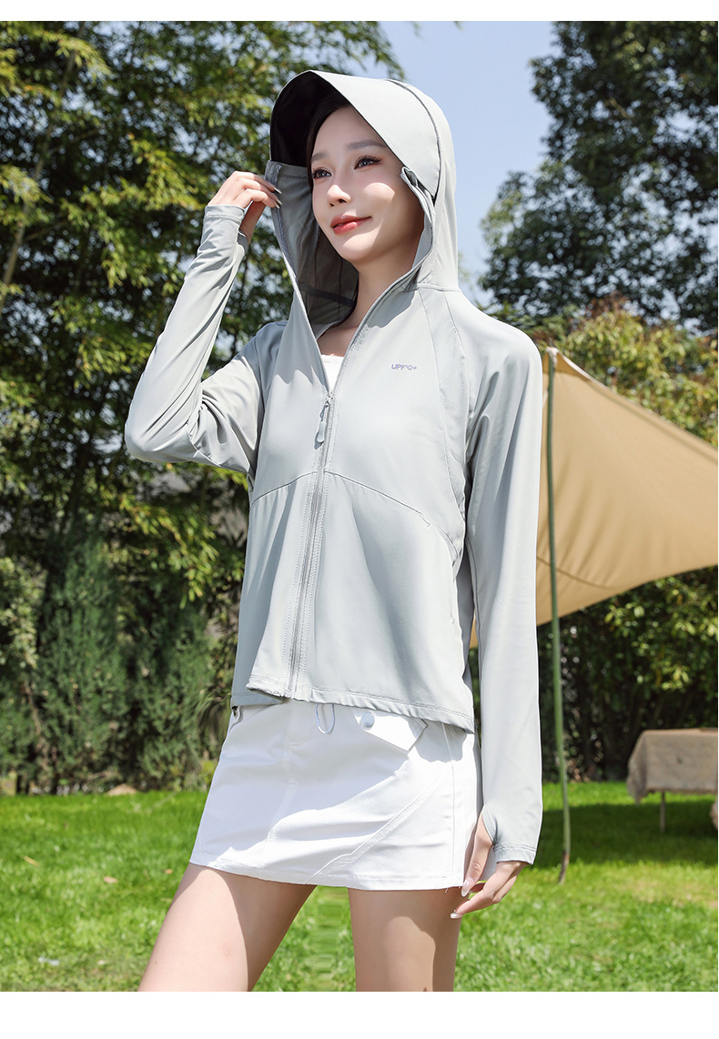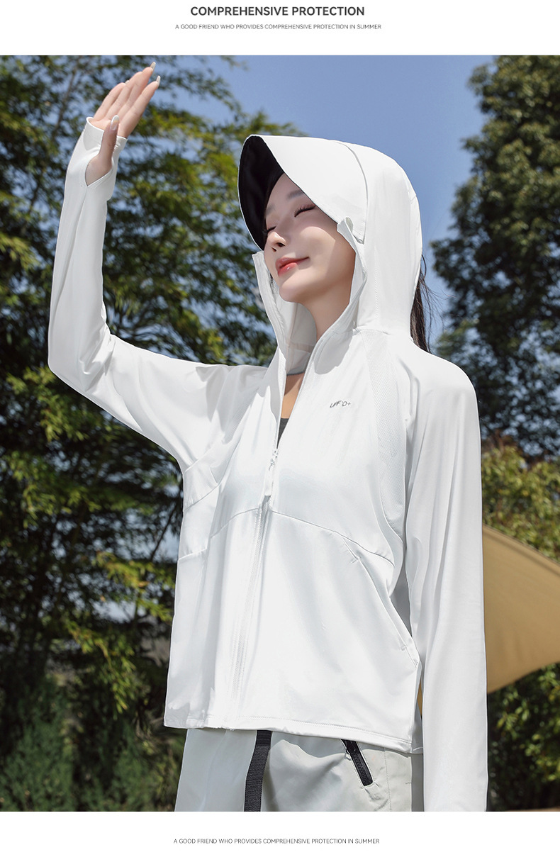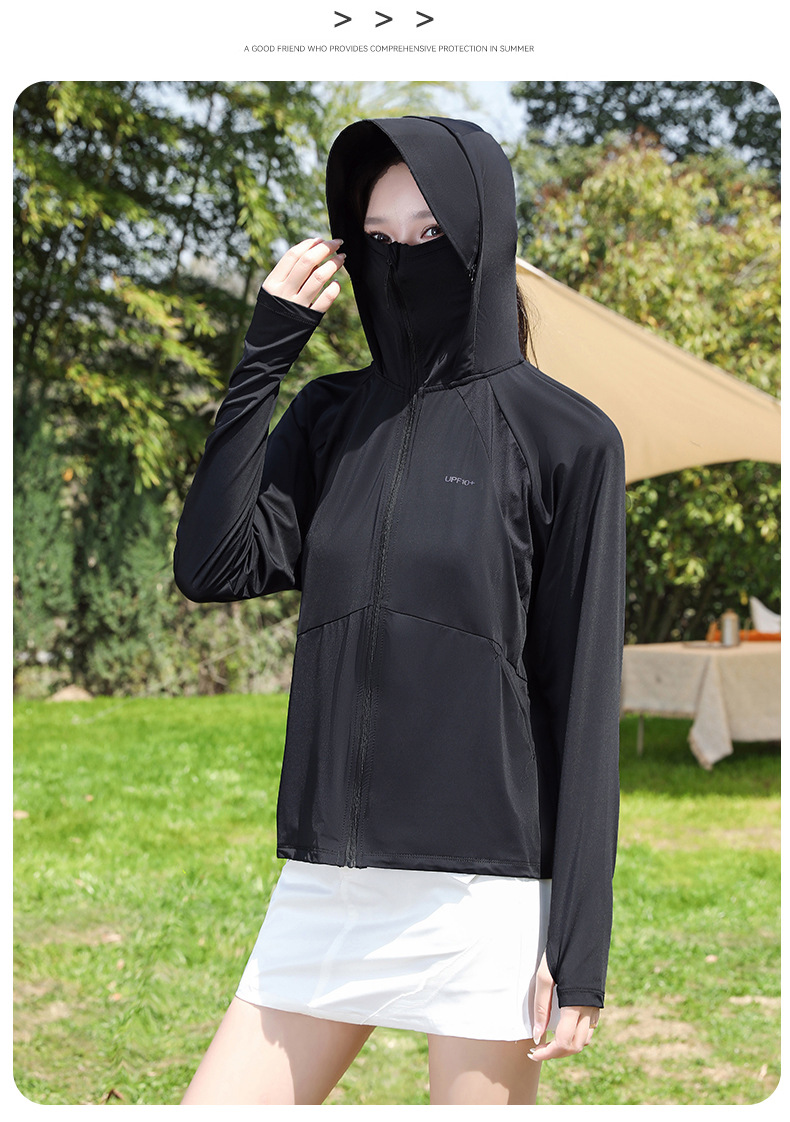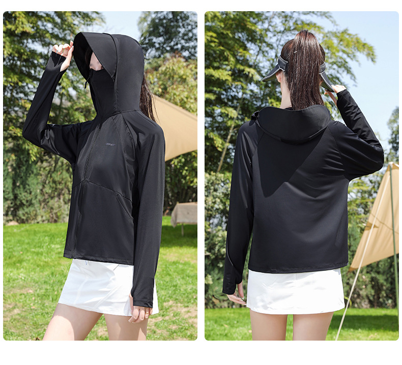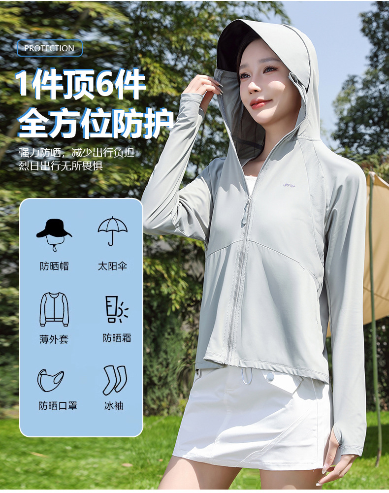 防晒衣女透气冰黑胶大帽檐户外防紫外线皮肤衣女UPF50+冰感皮肤衣