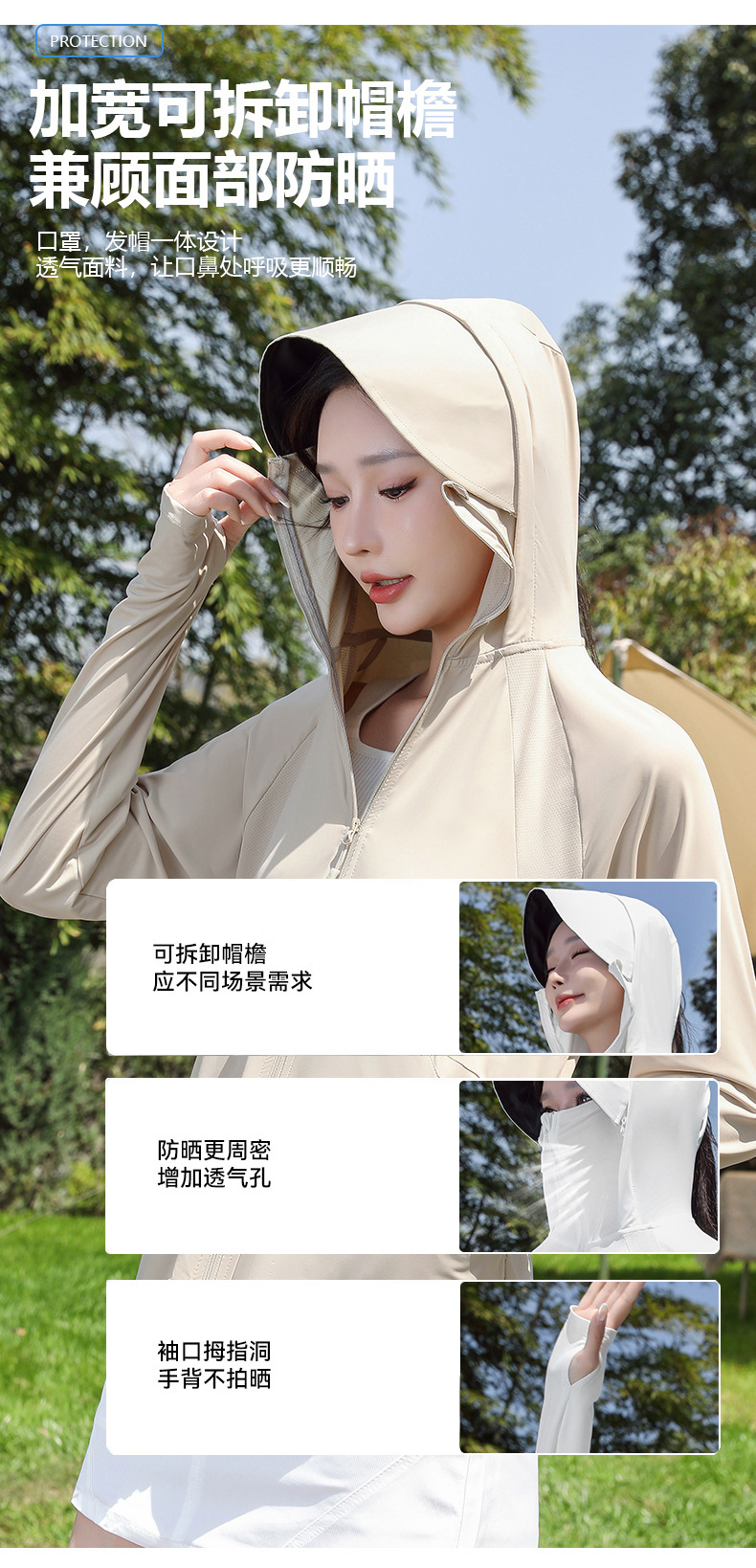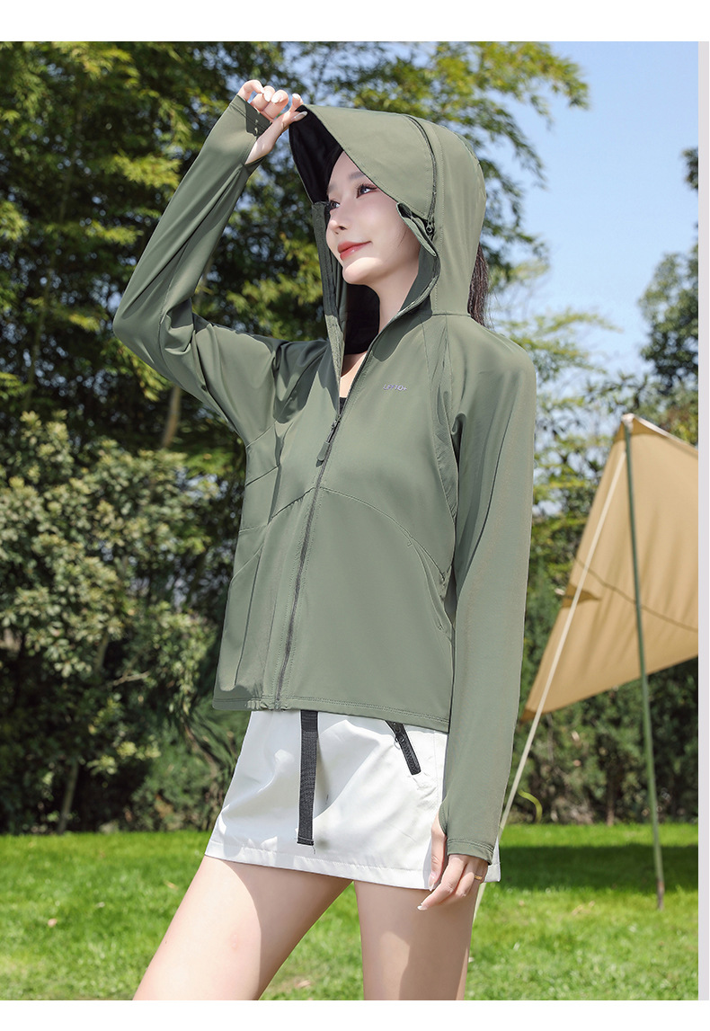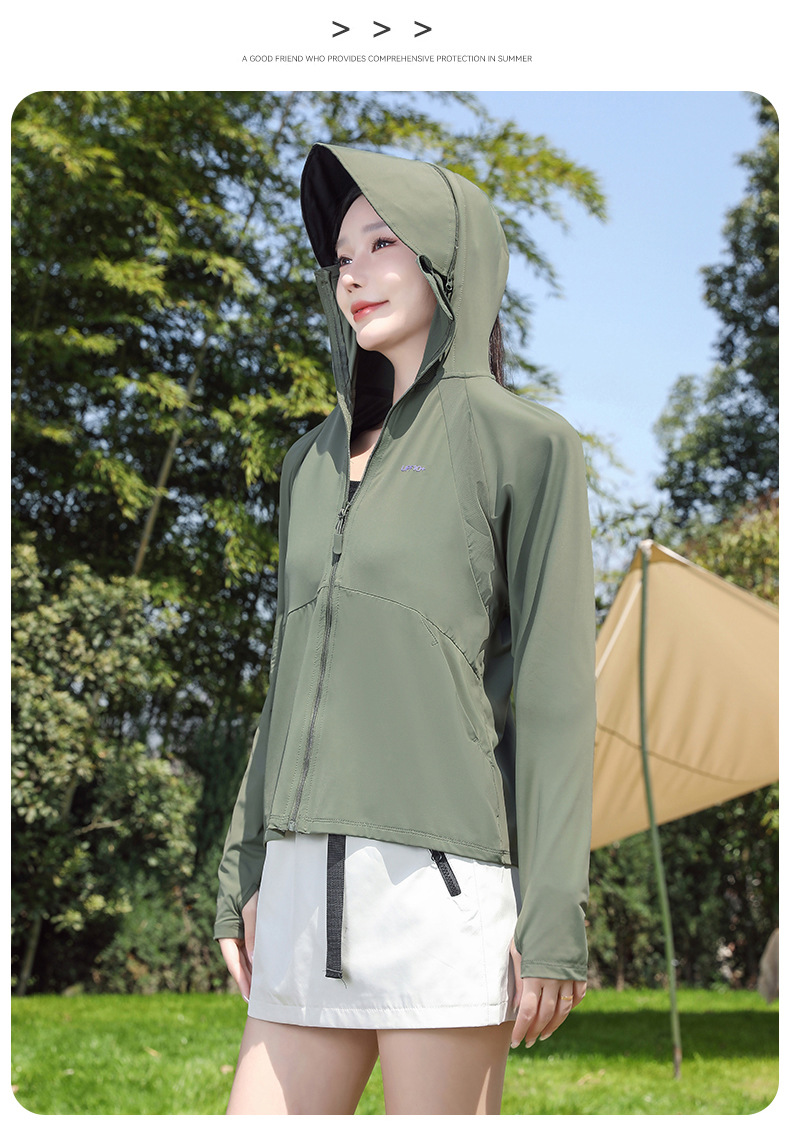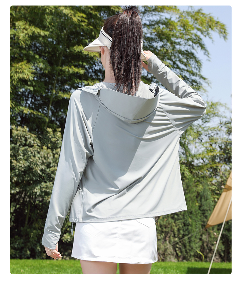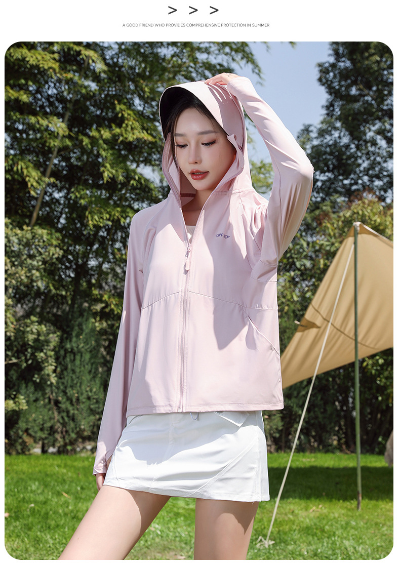 防晒衣女透气冰黑胶大帽檐户外防紫外线皮肤衣女UPF50+冰感皮肤衣