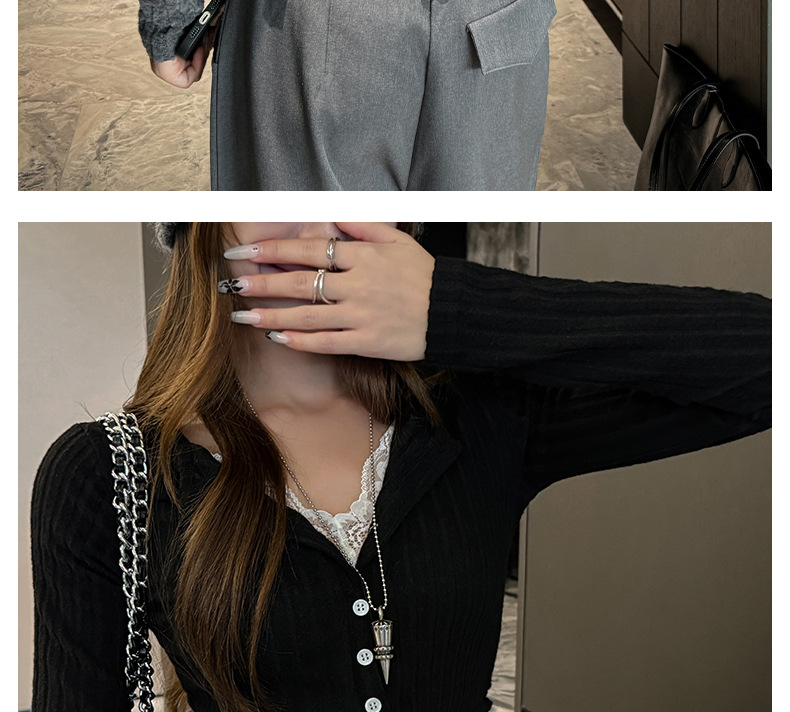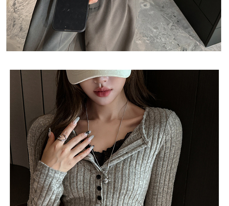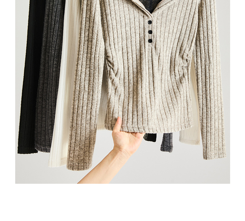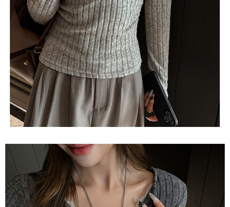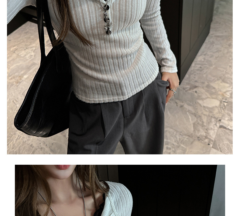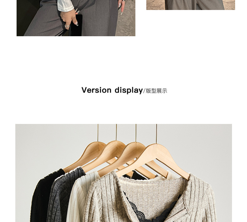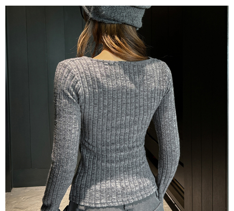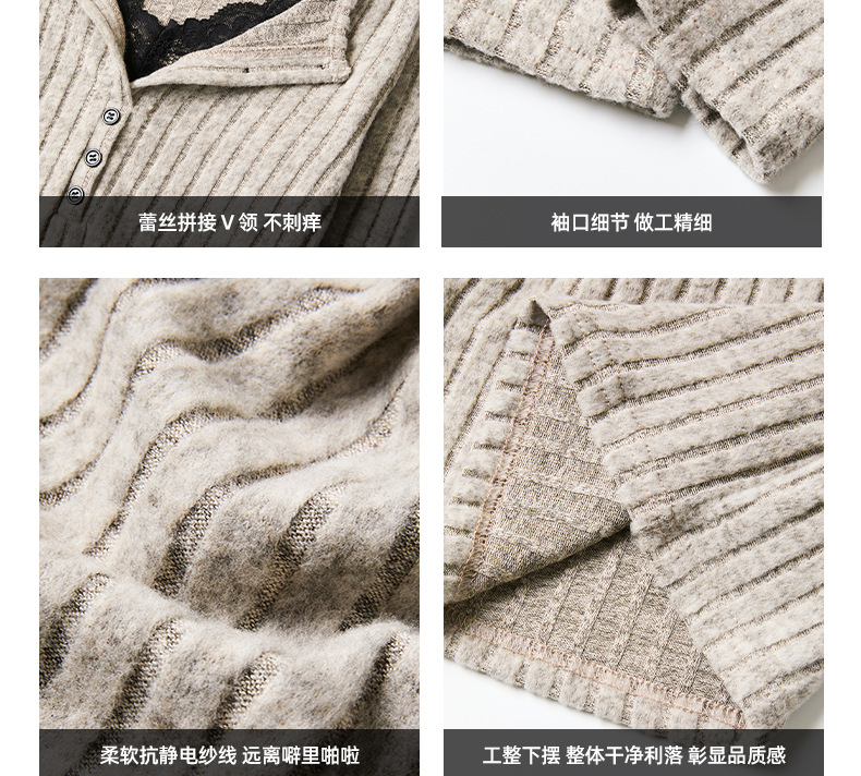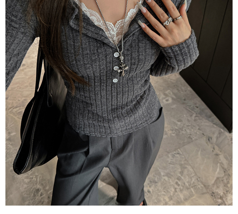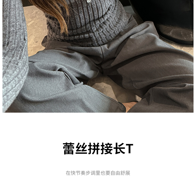 坑条V领蕾丝拼接设计感长袖正肩t恤女气质修身高级感内搭打底上衣