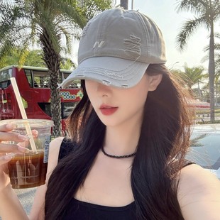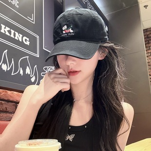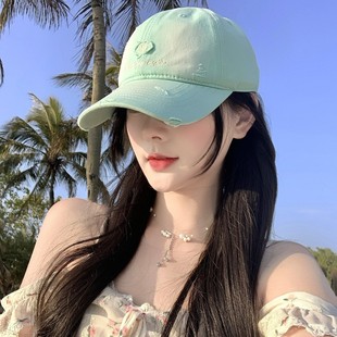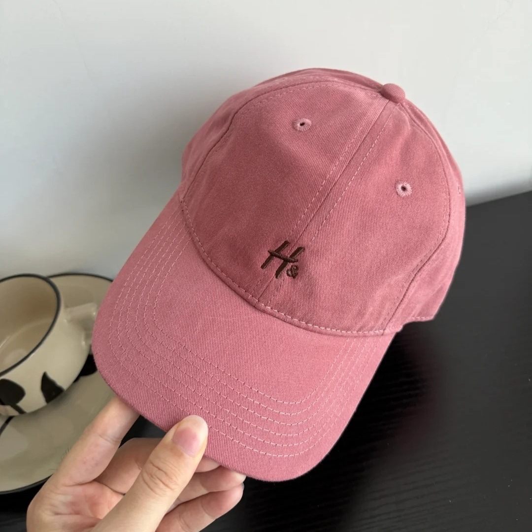 高品质树莓粉韩版显白H字母棒球帽女宽帽檐显脸小鸭舌帽百搭帽子