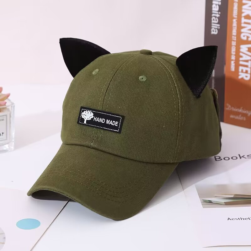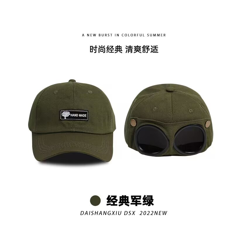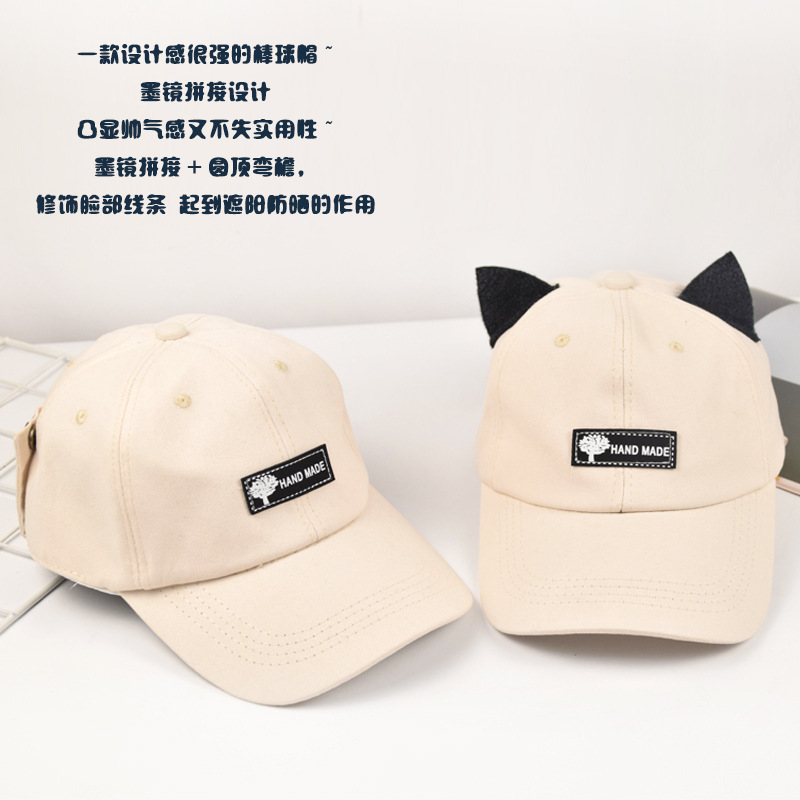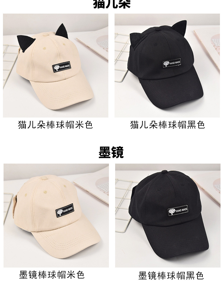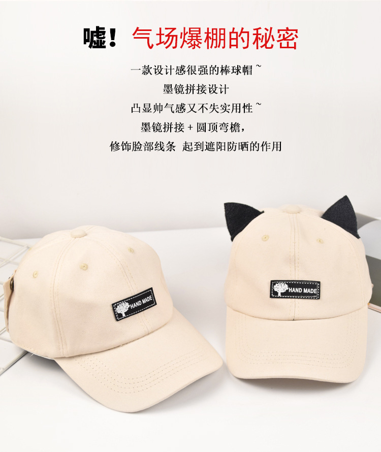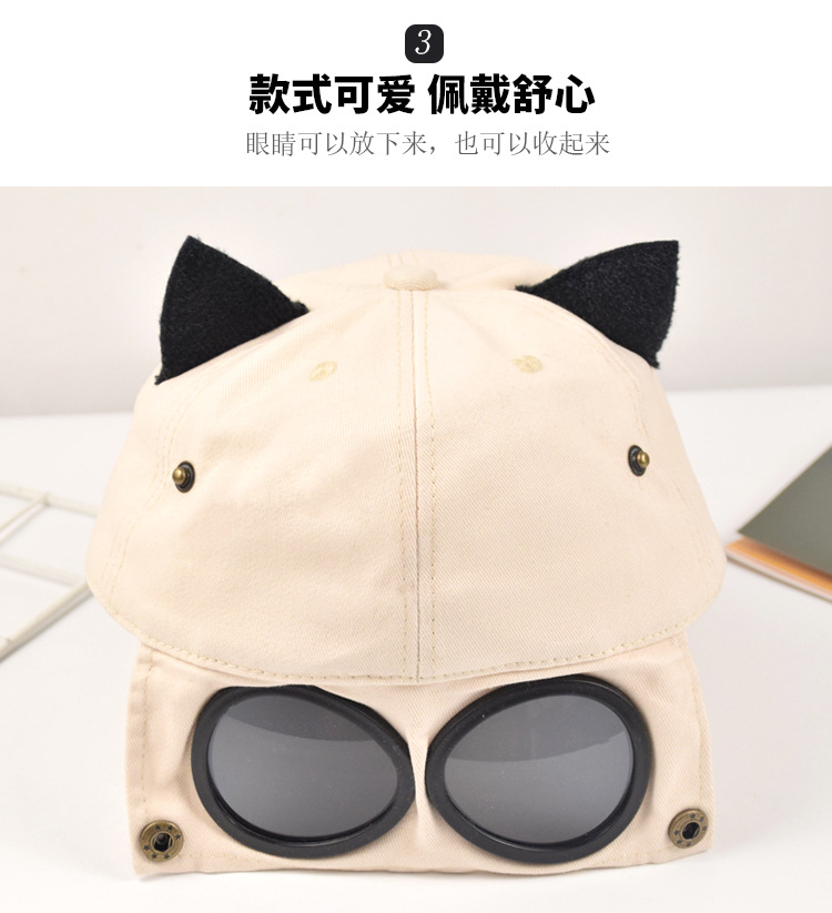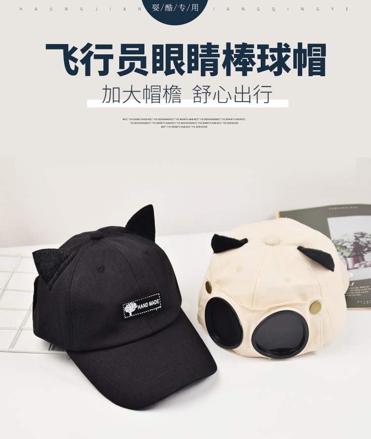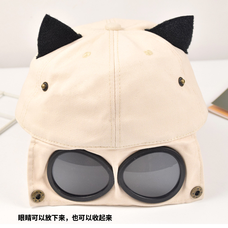 抖音同款猫耳朵骑行鸭舌帽飞行员遮阳防晒自带墨镜棒球帽网红风