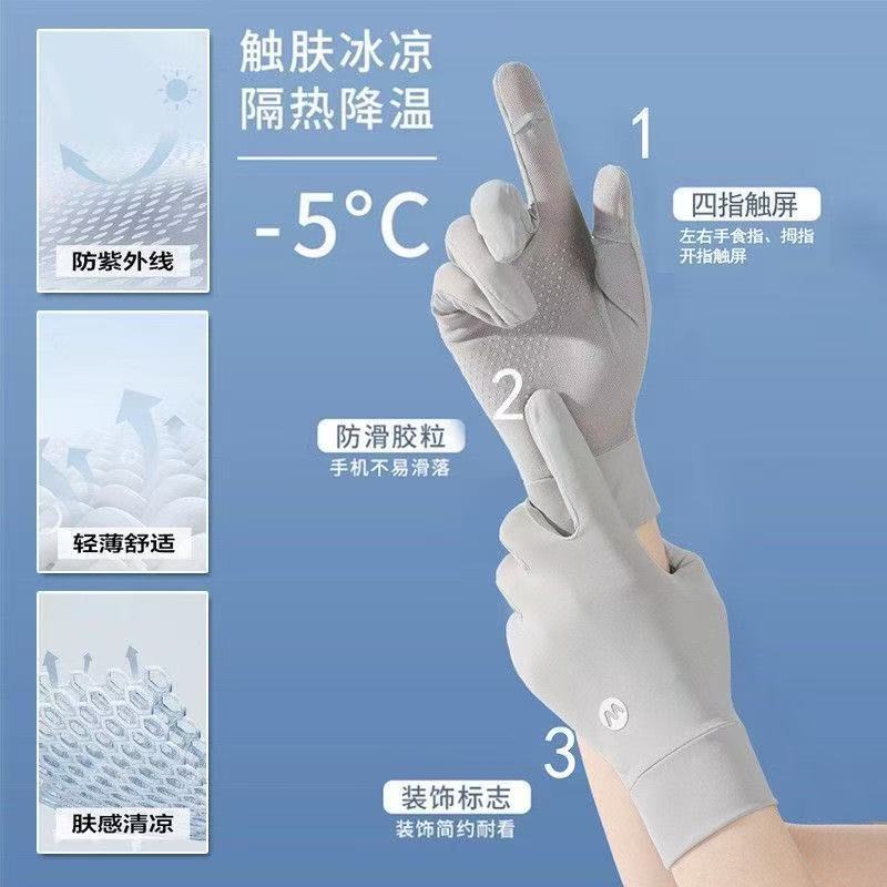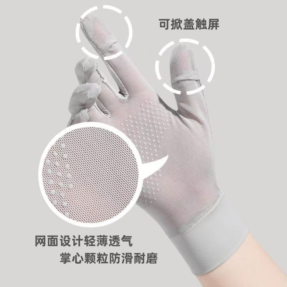 防晒手套女夏季冰丝锦纶防紫外线透气薄款户外骑车开车防滑