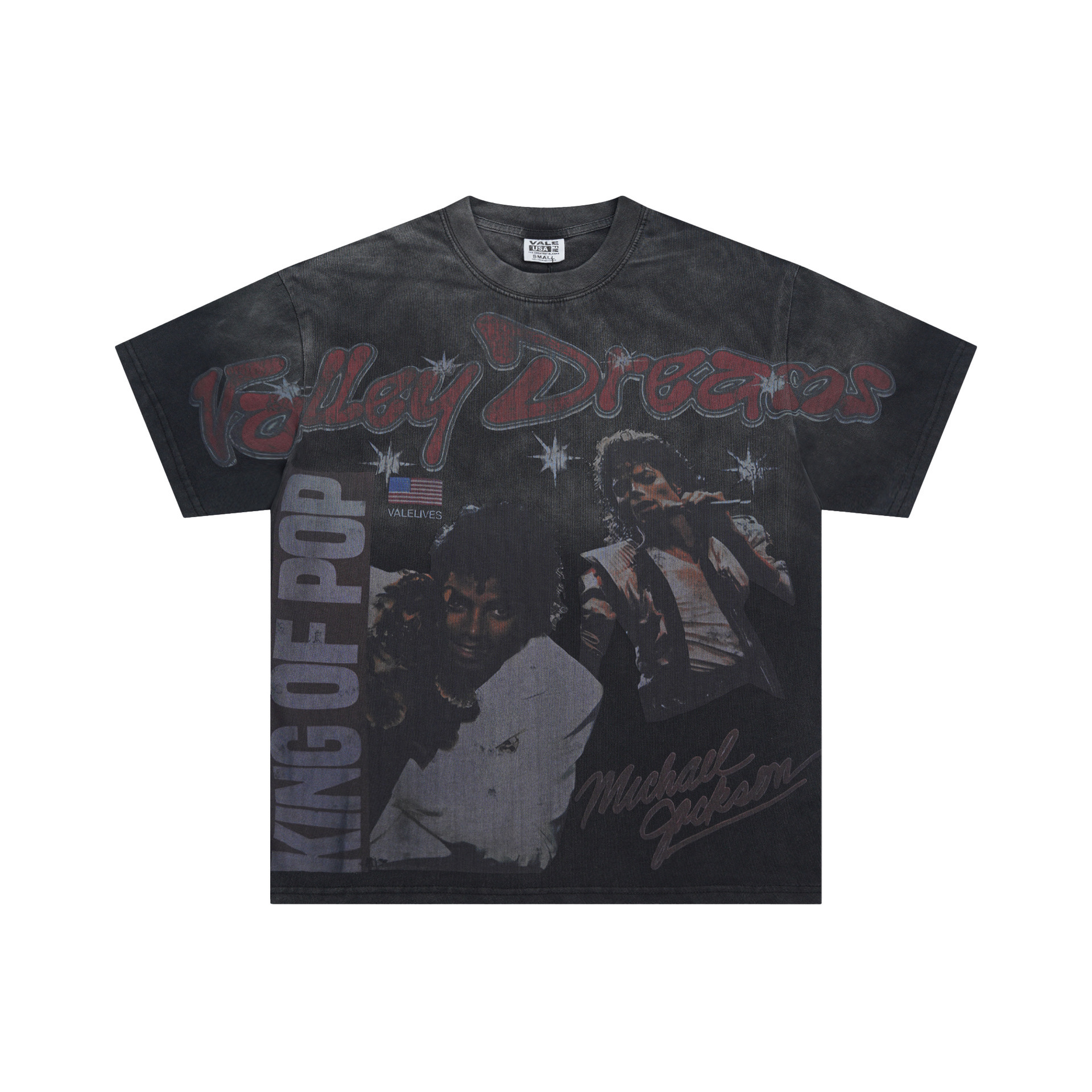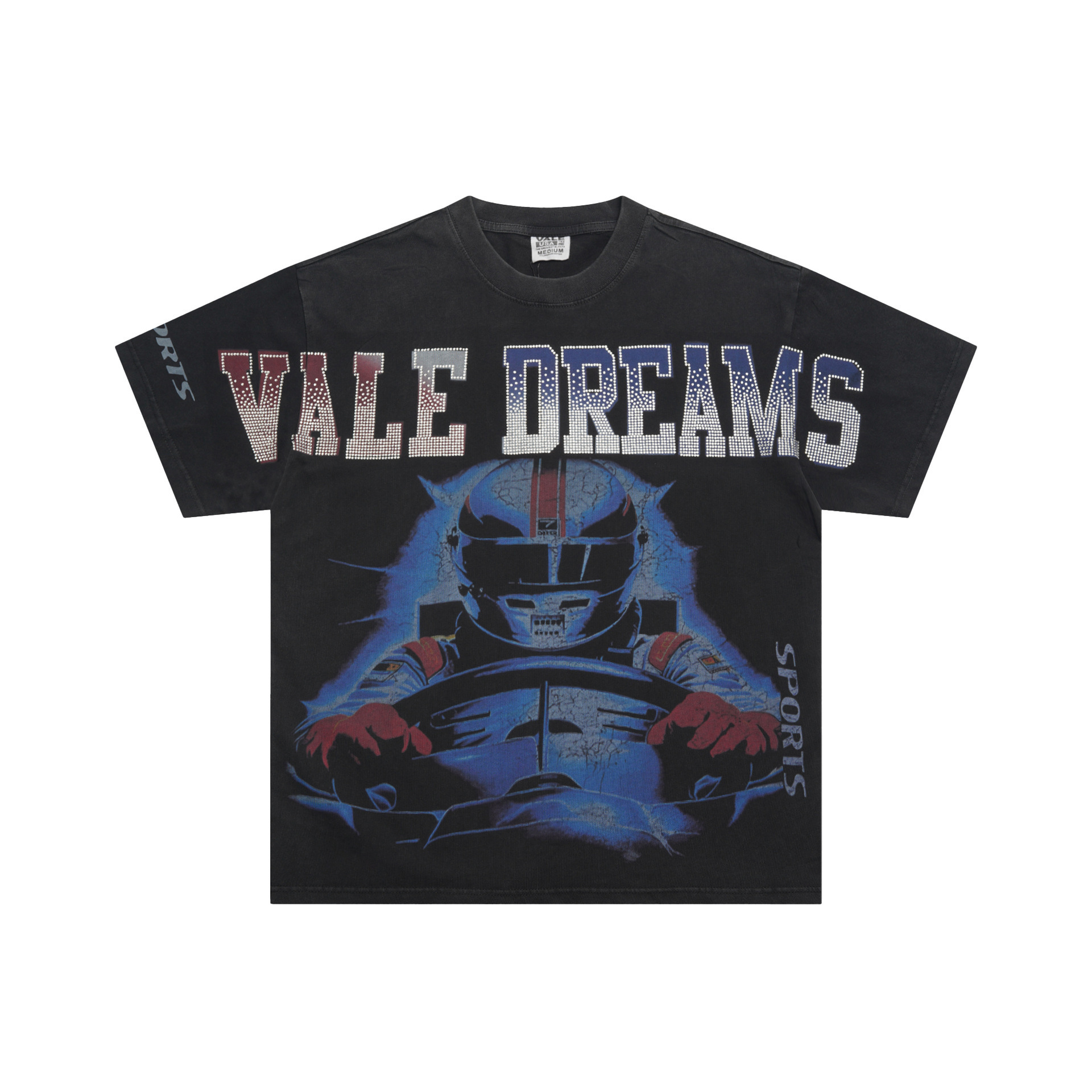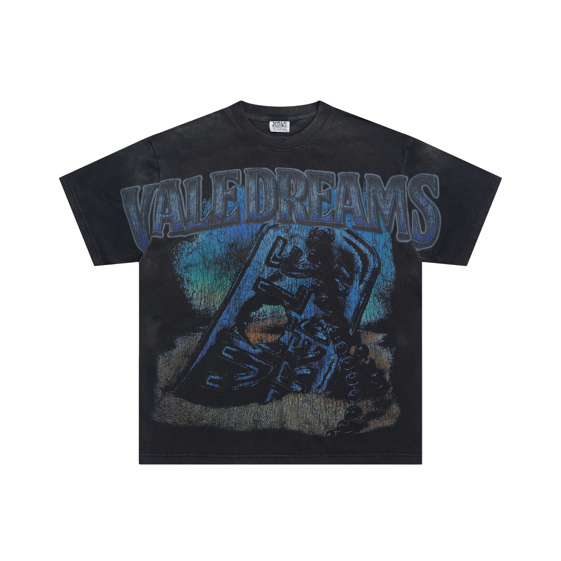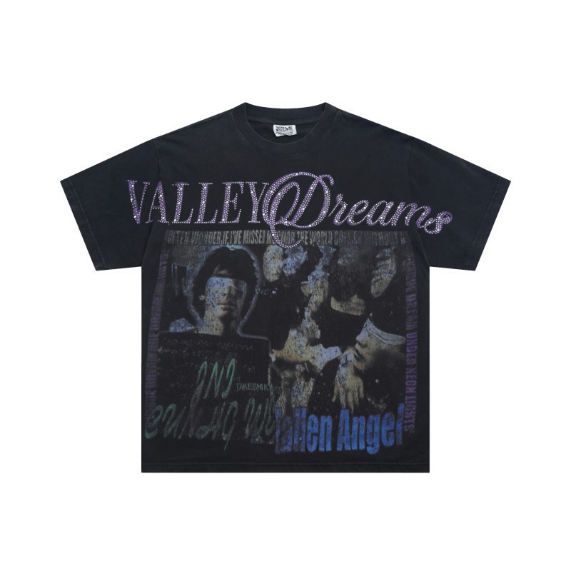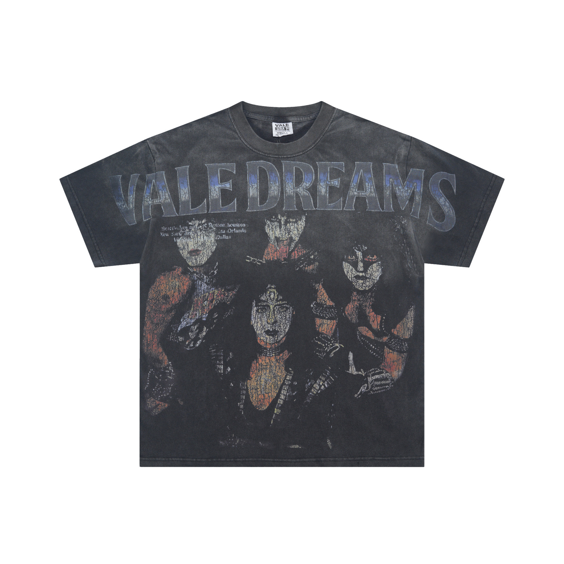 跨境欧美潮牌Va&le字母图案印花水洗复古短袖t恤男女高街美式半袖