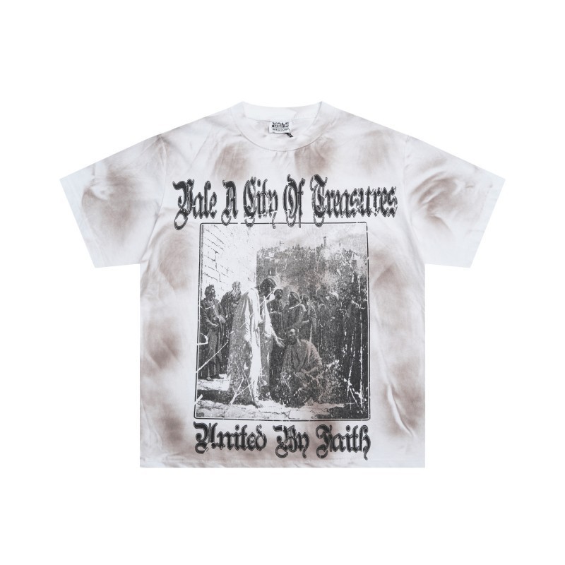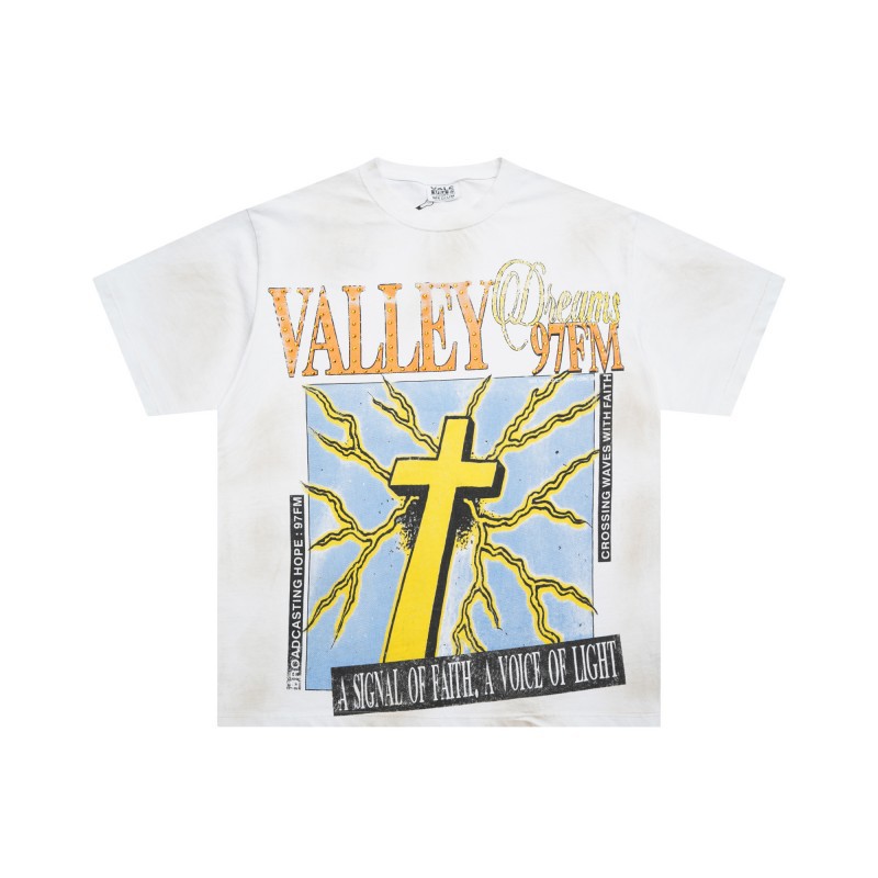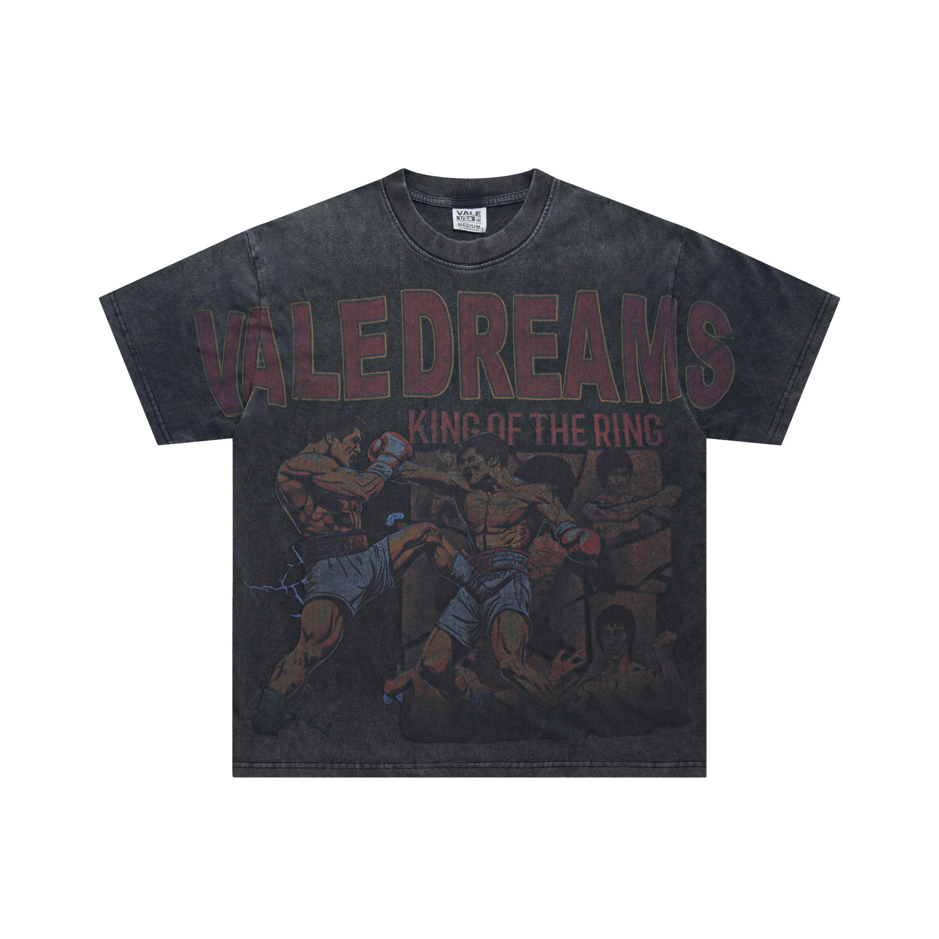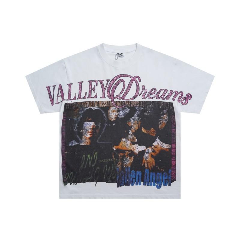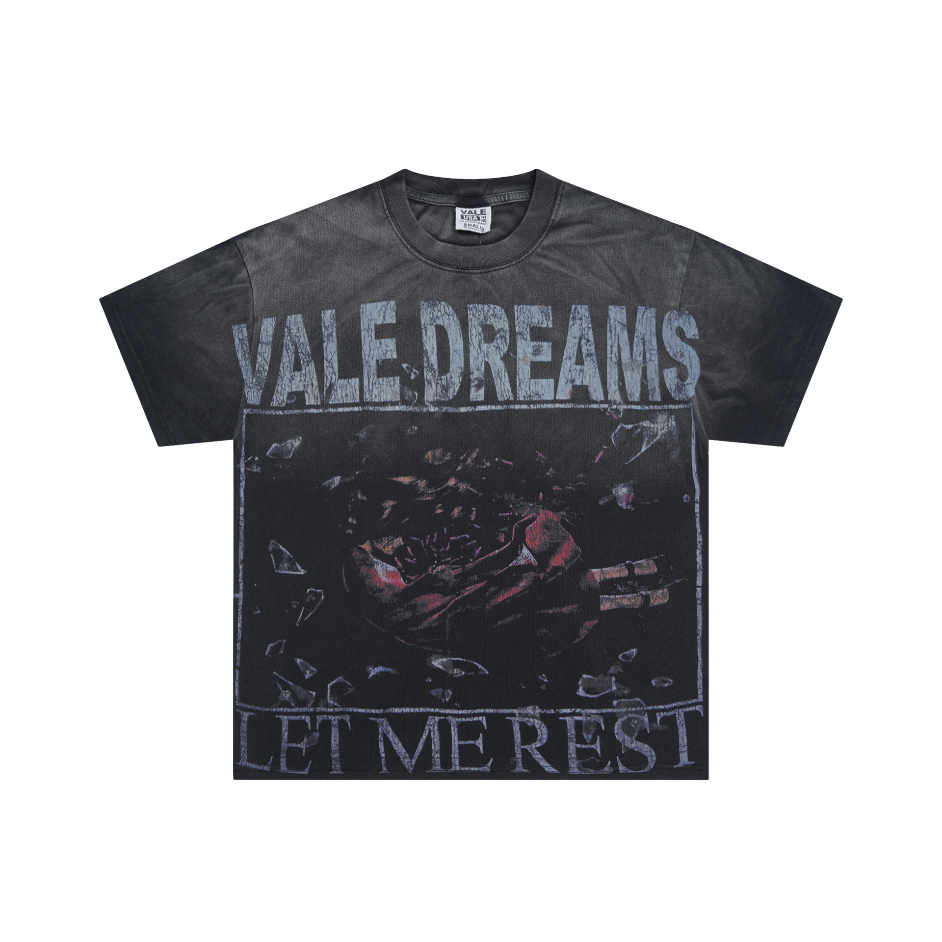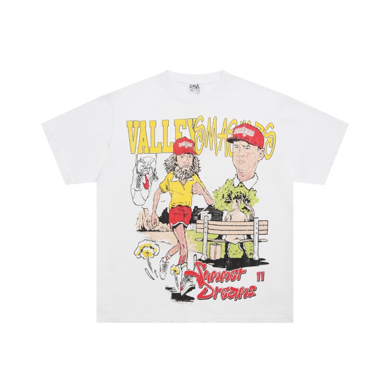 跨境欧美潮牌Va&le字母图案印花水洗复古短袖t恤男女高街美式半袖