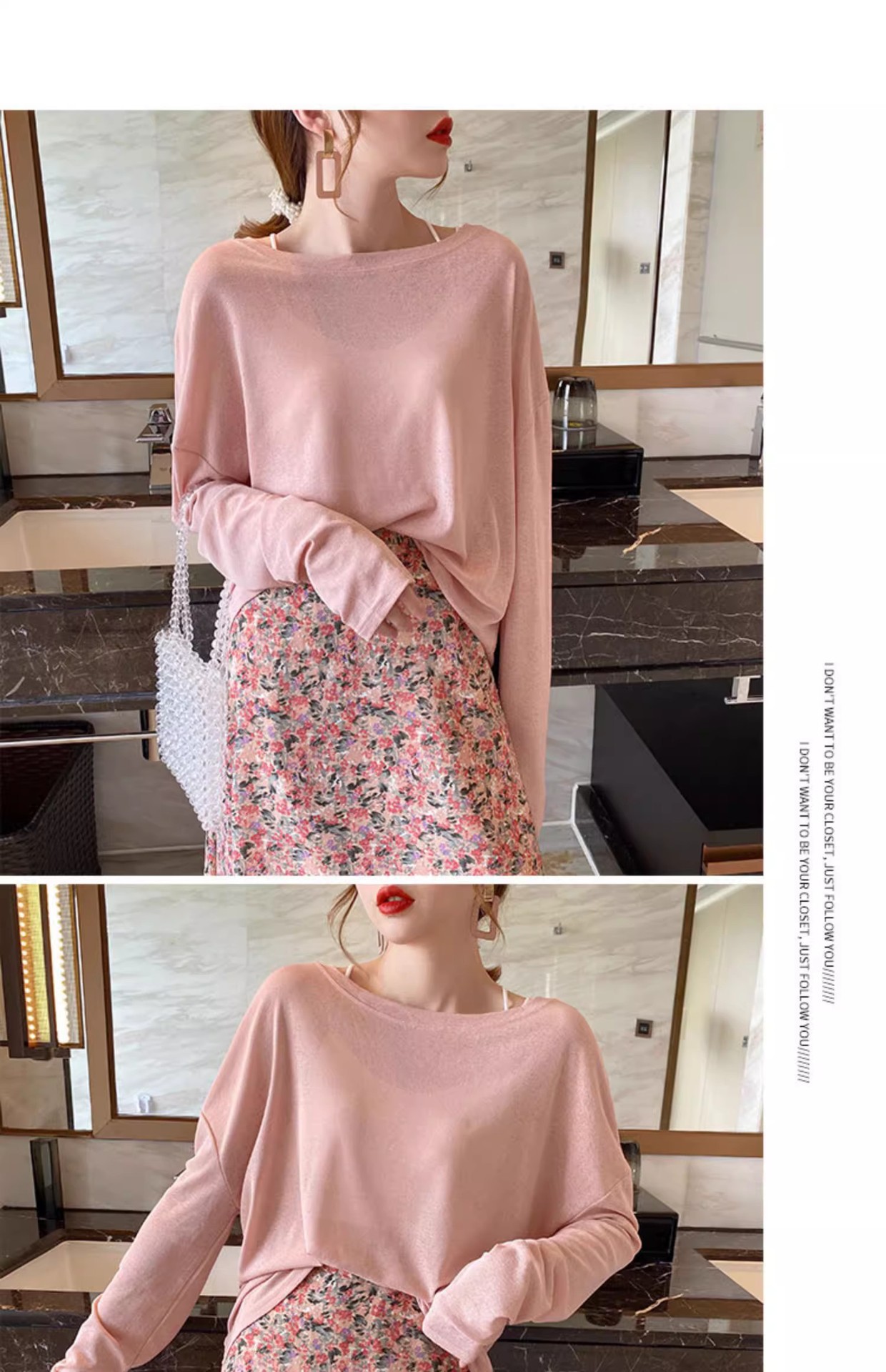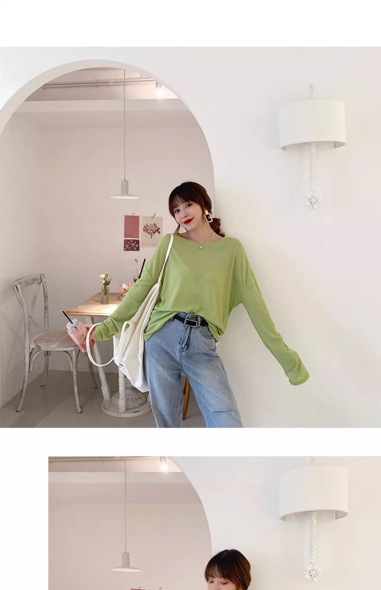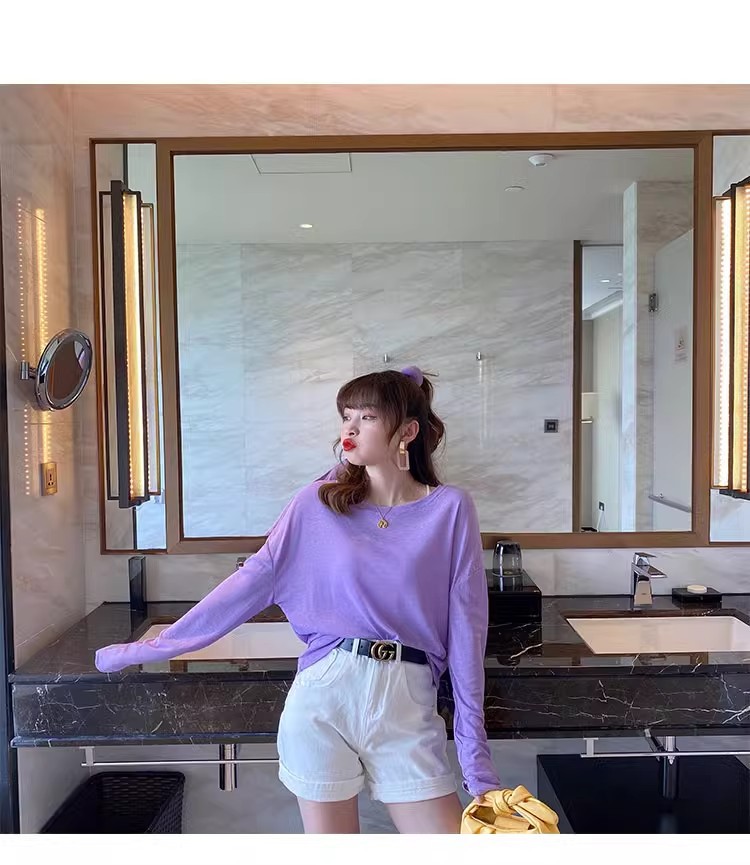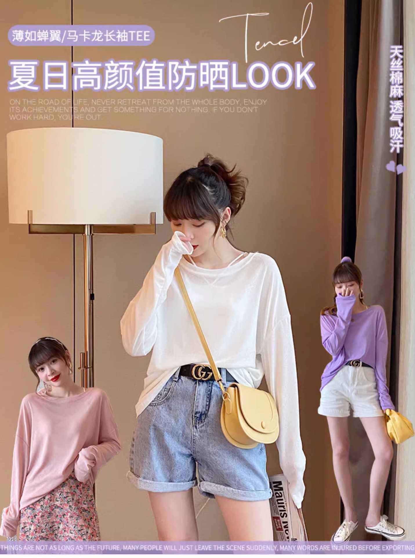 糖果色防晒长袖t恤女2025年夏款宽松慵懒风大版空调薄款罩衫上衣