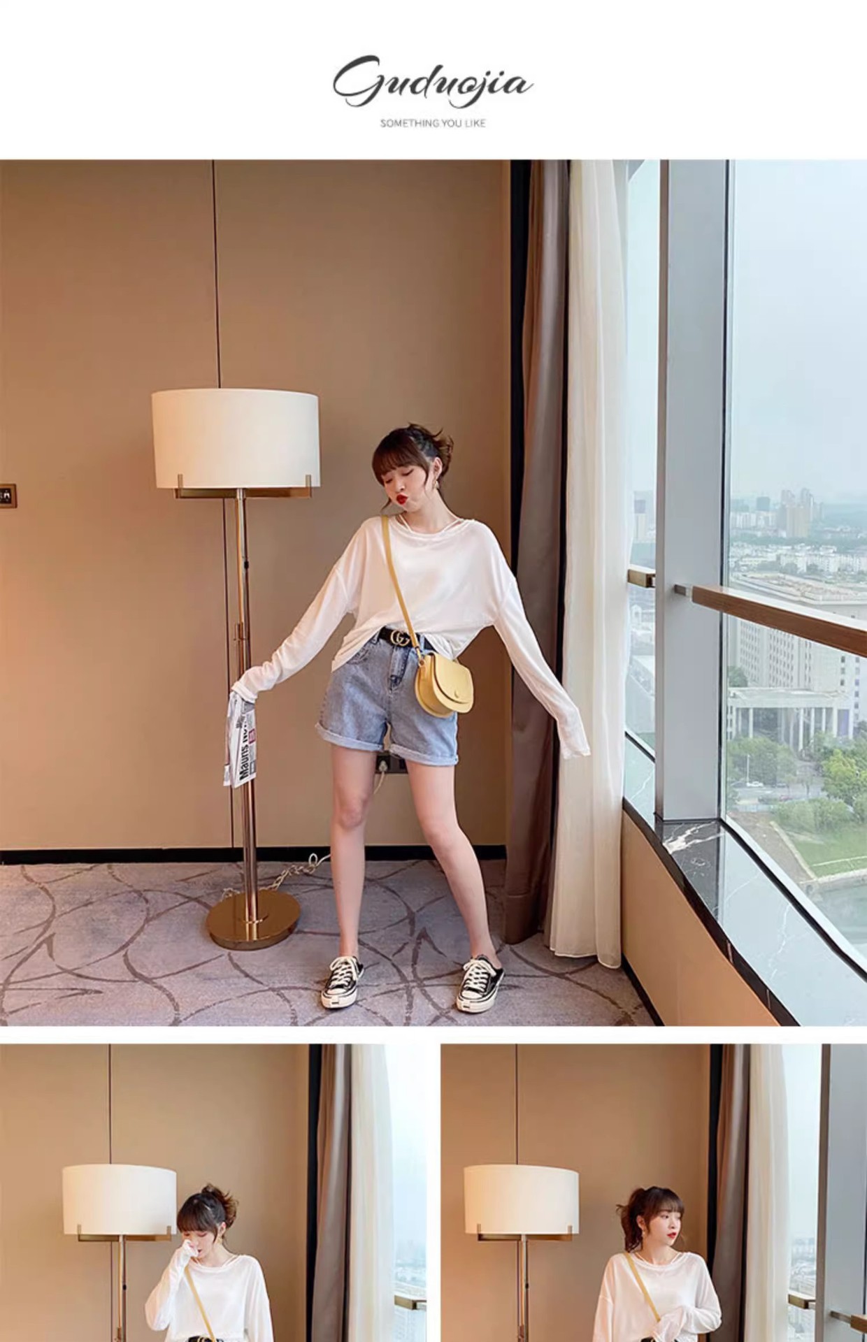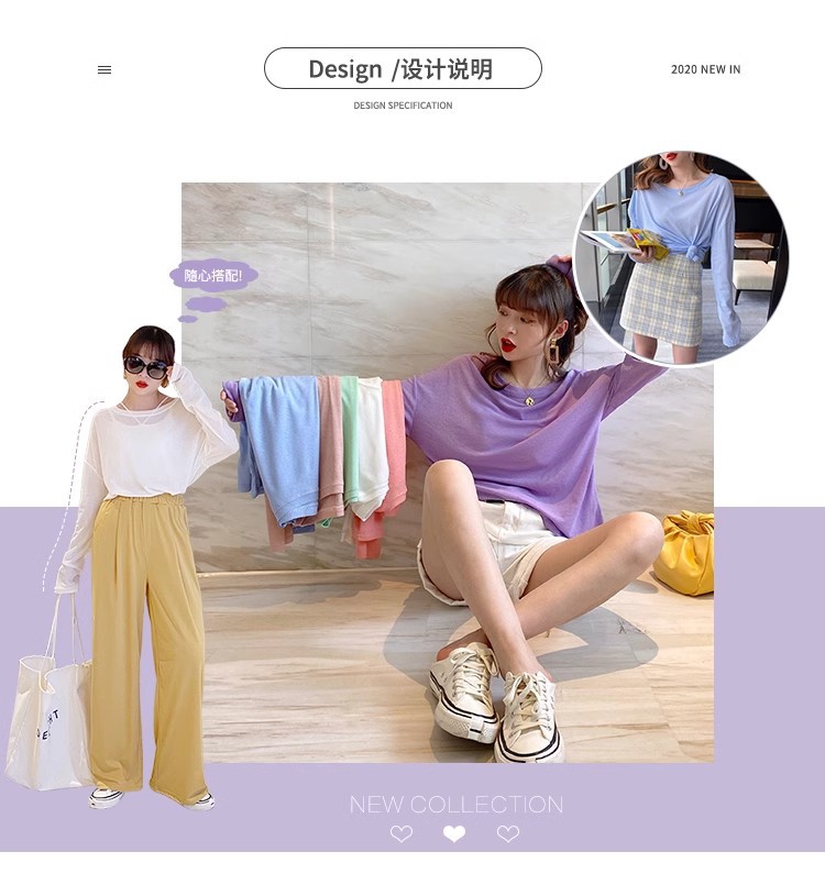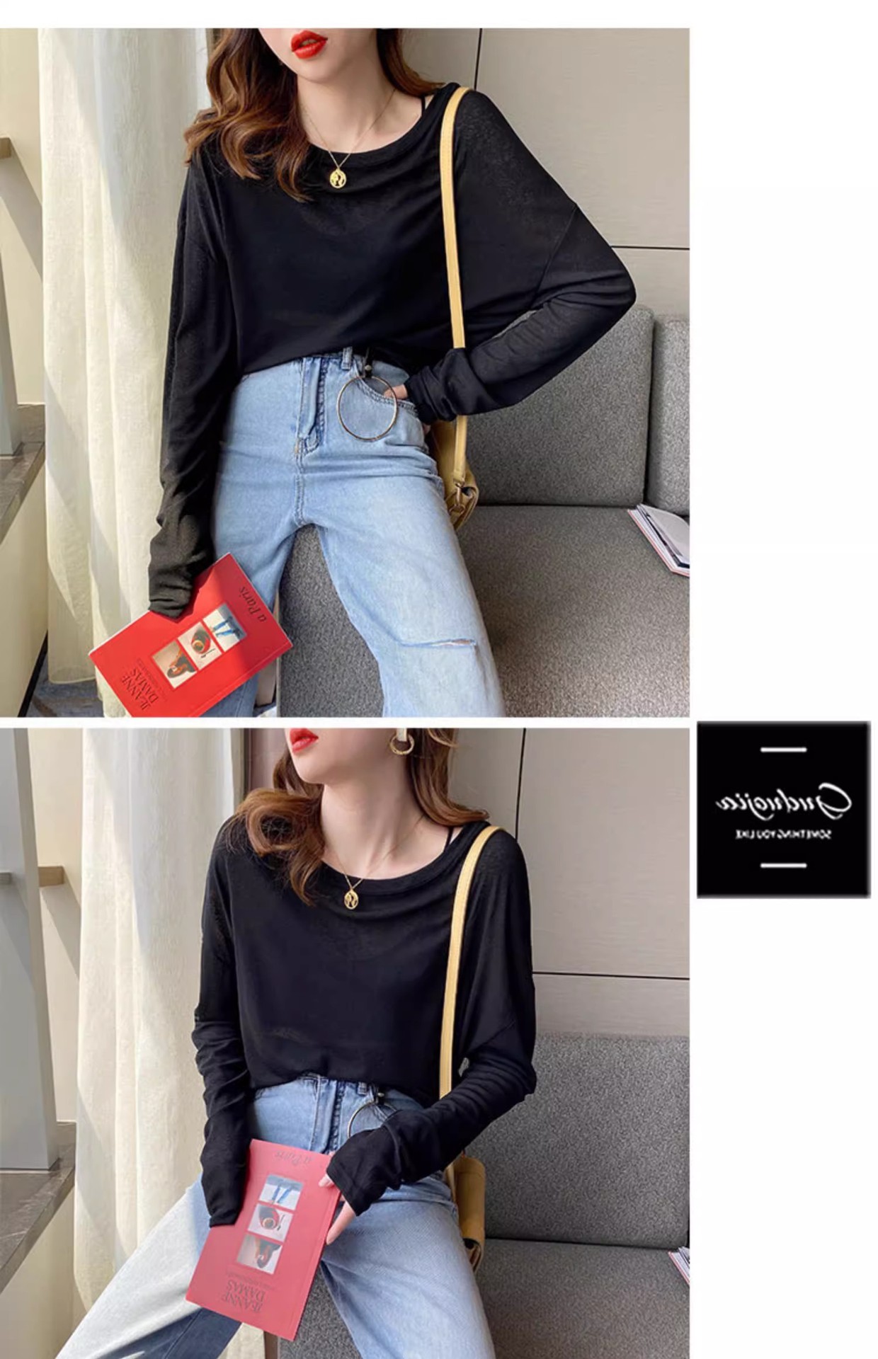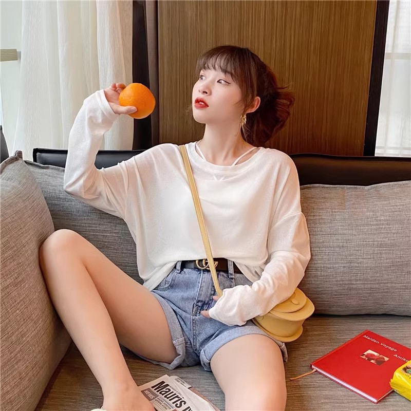 糖果色防晒长袖t恤女2025年夏款宽松慵懒风大版空调薄款罩衫上衣