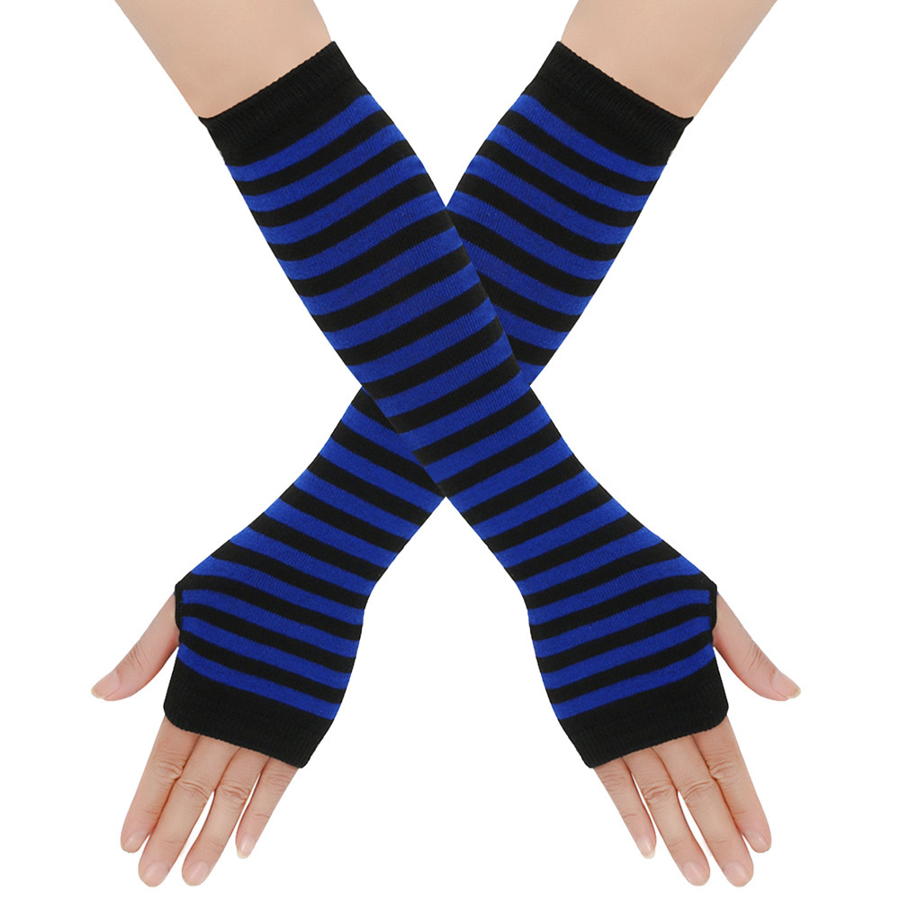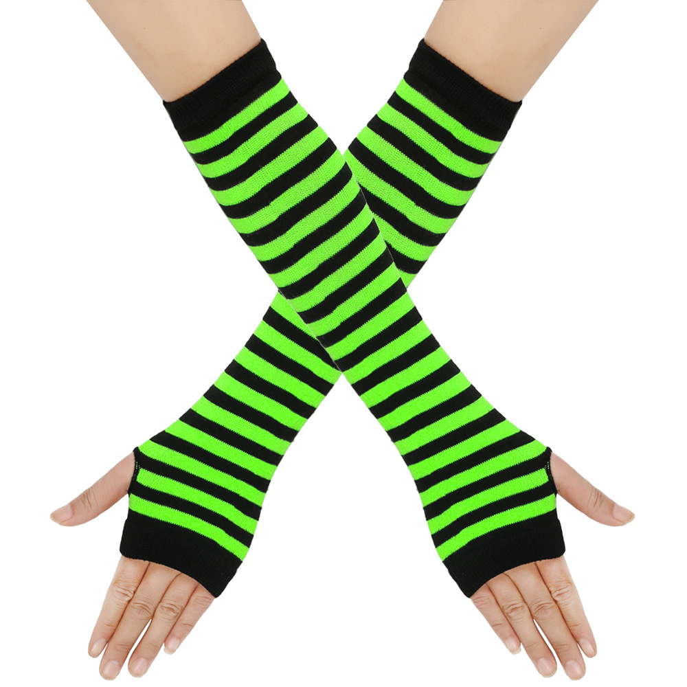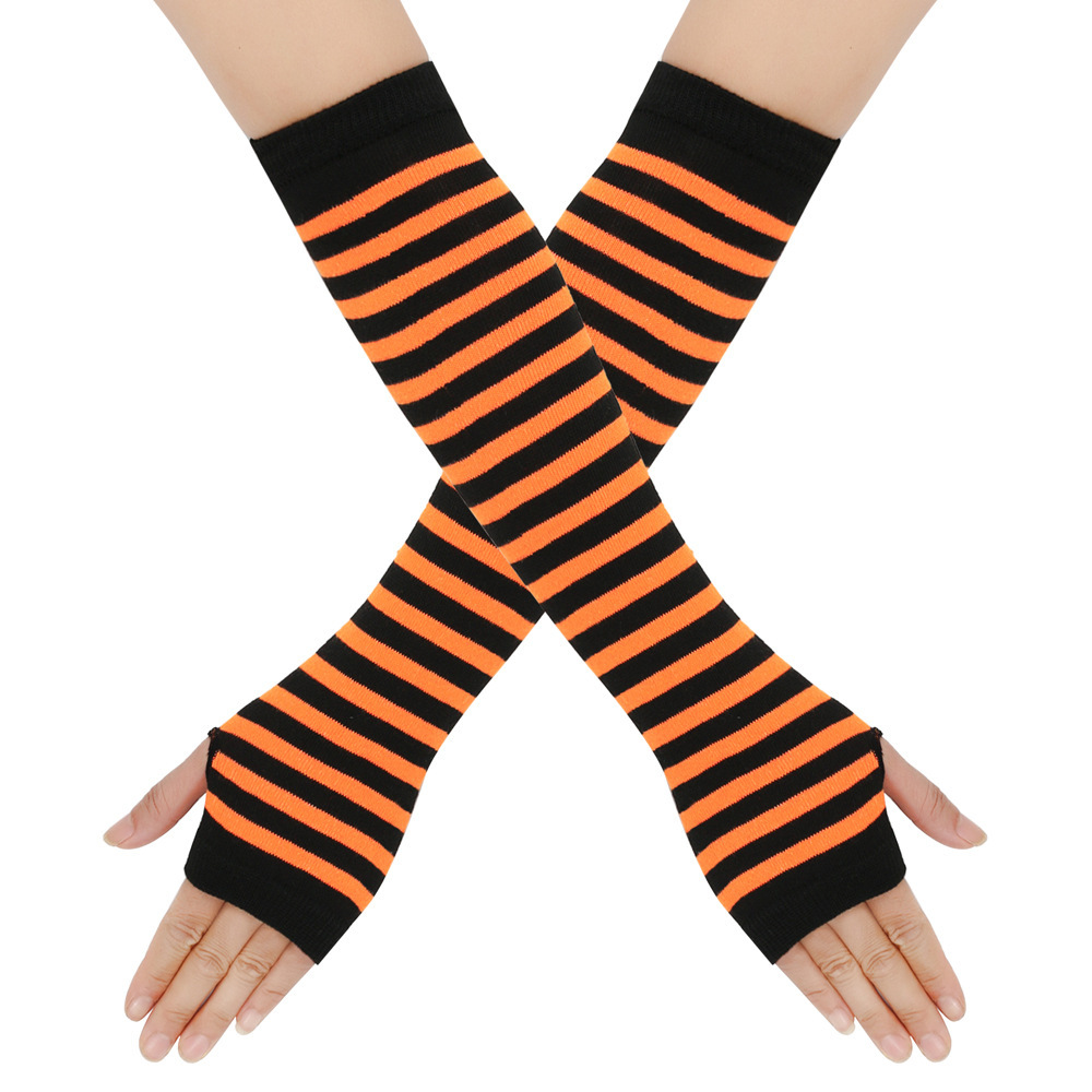日系原宿cospla动漫条纹露指长腕套手套Y2k千禧辣妹露指条纹袖套