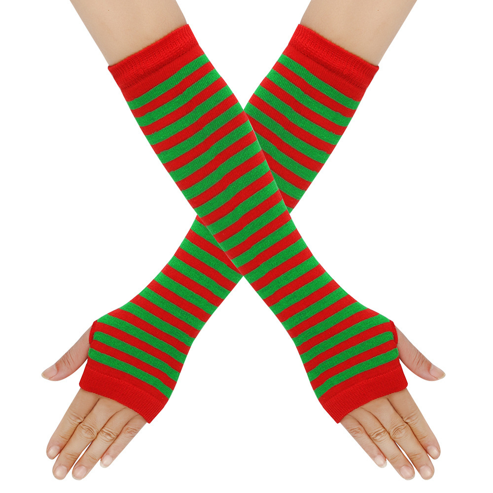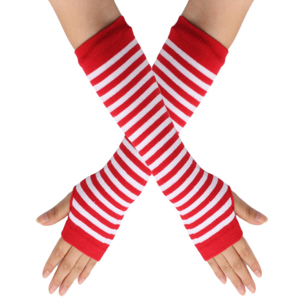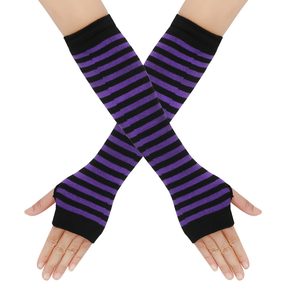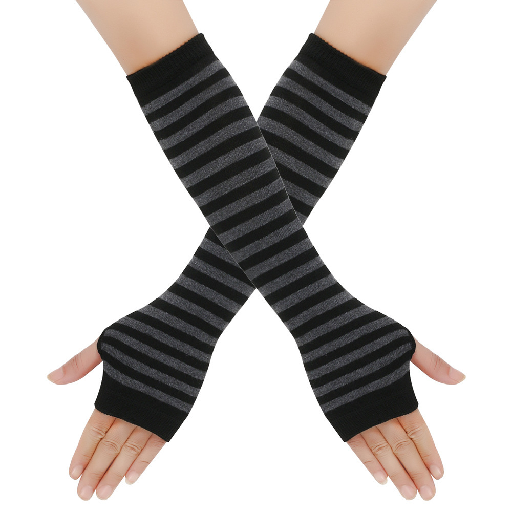 日系原宿cospla动漫条纹露指长腕套手套Y2k千禧辣妹露指条纹袖套