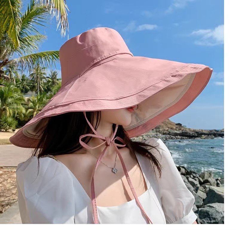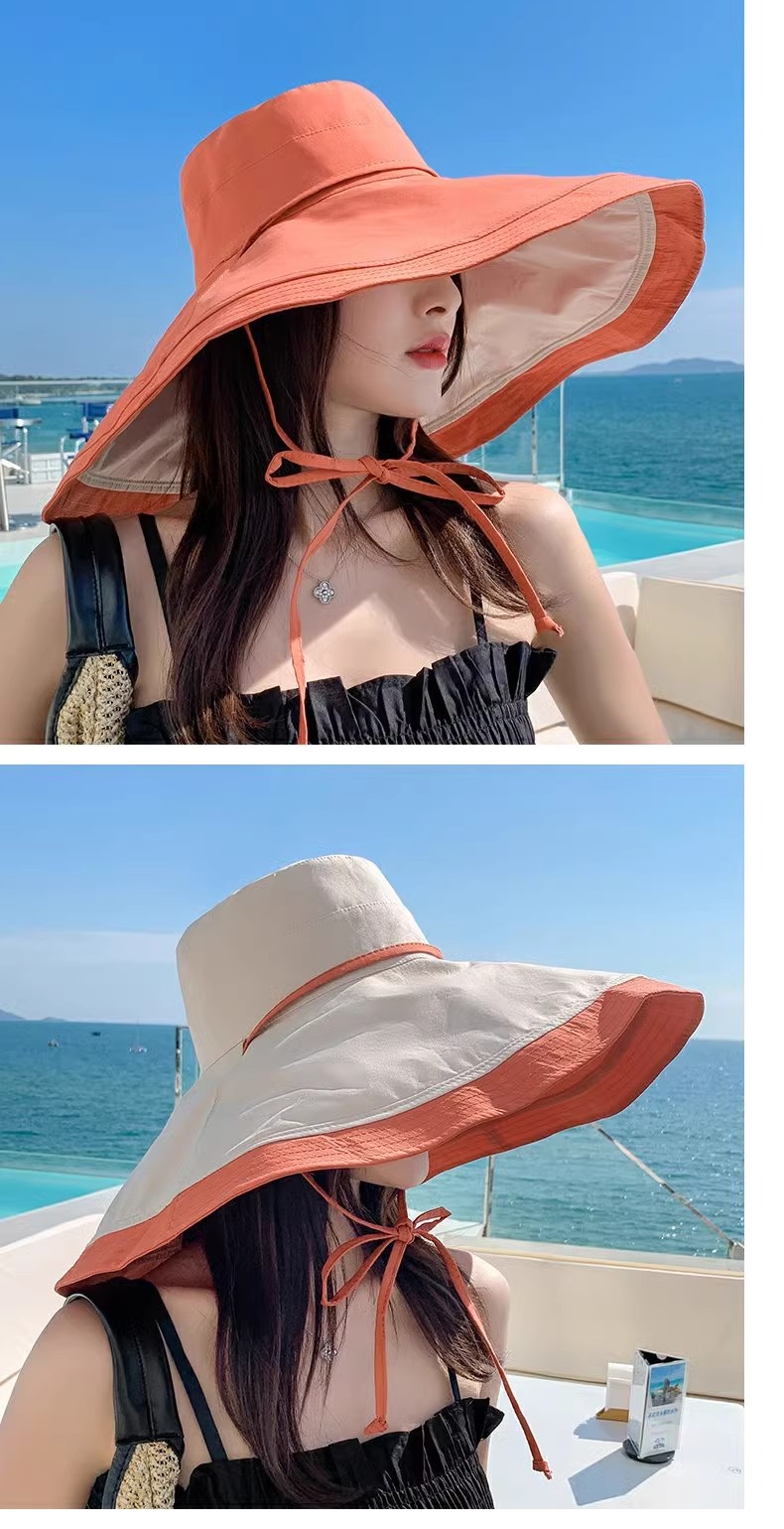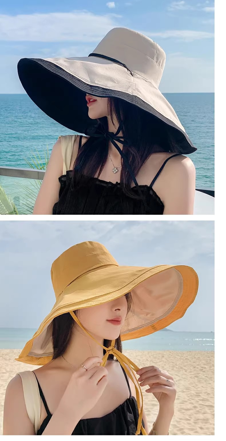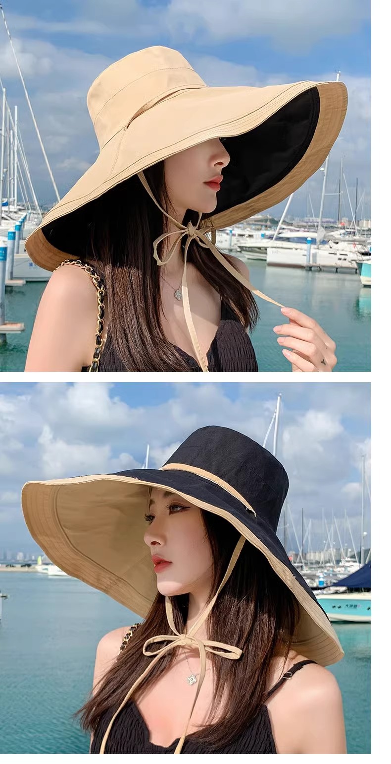 巨大遮阳帽渔夫帽大沿女夏遮脸双面加大帽檐防晒帽子防紫外线太阳