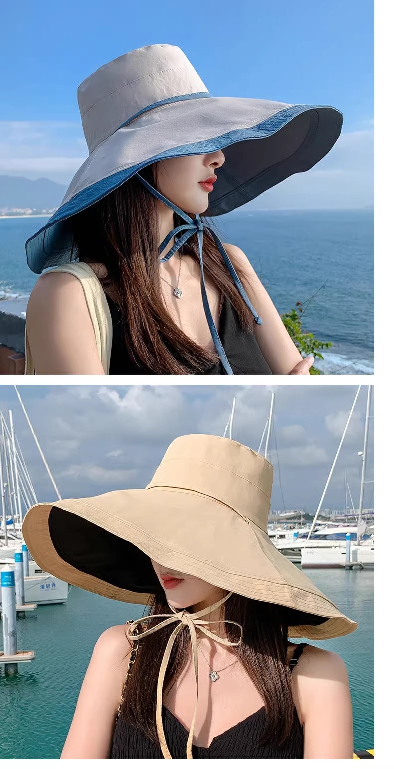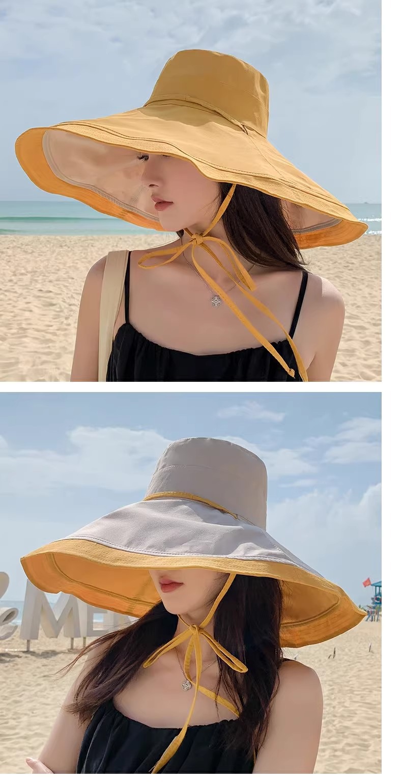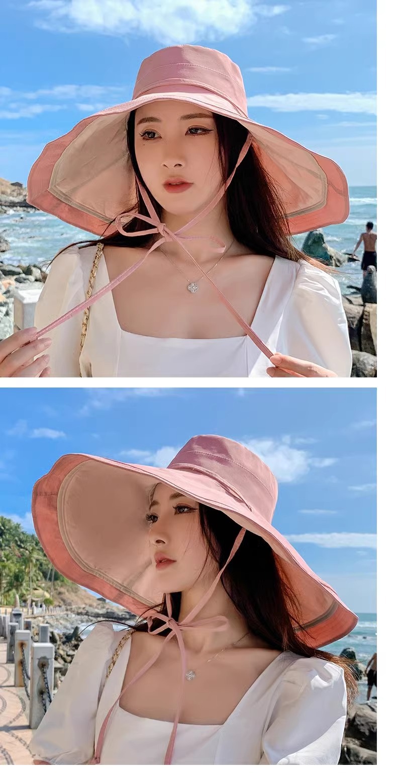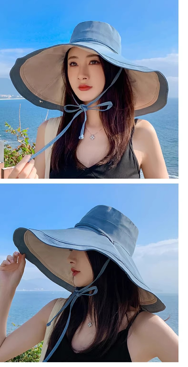 巨大遮阳帽渔夫帽大沿女夏遮脸双面加大帽檐防晒帽子防紫外线太阳